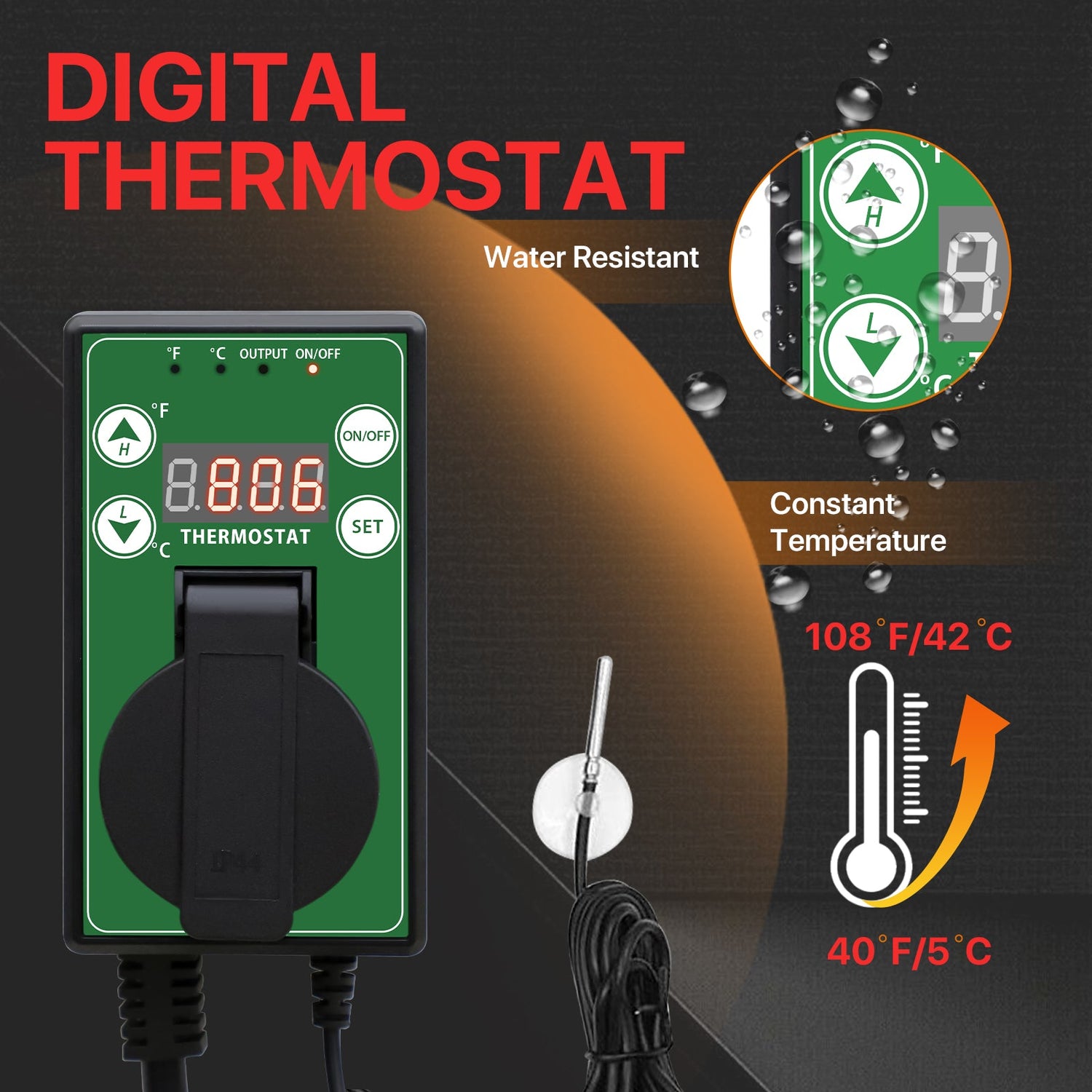 THERMOSTAT INCLUDED: The electric heater is equipped with a digital thermostat controller which measures the ambient temperature. Ensure optimal plant growth with the EAGLE PEAK heater.