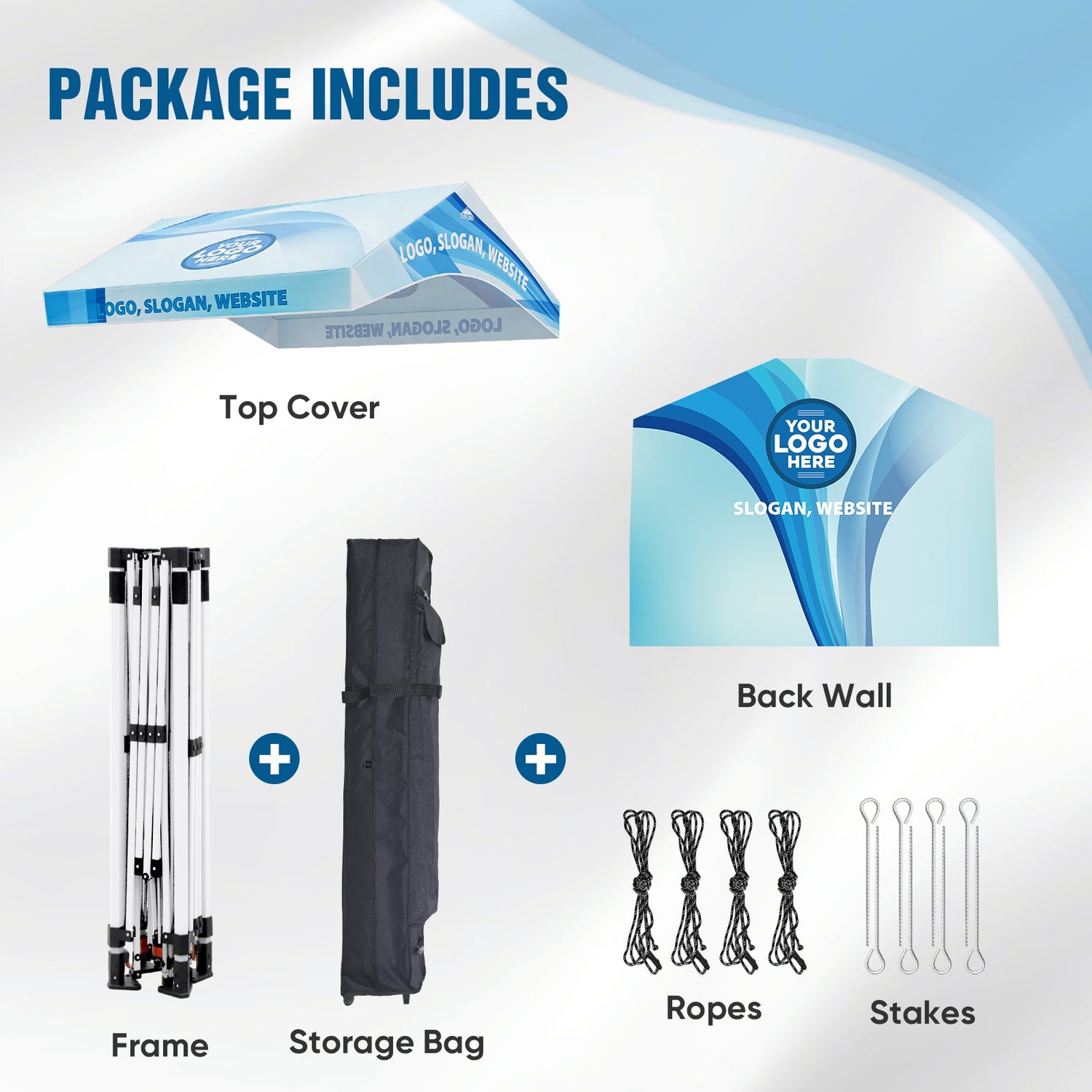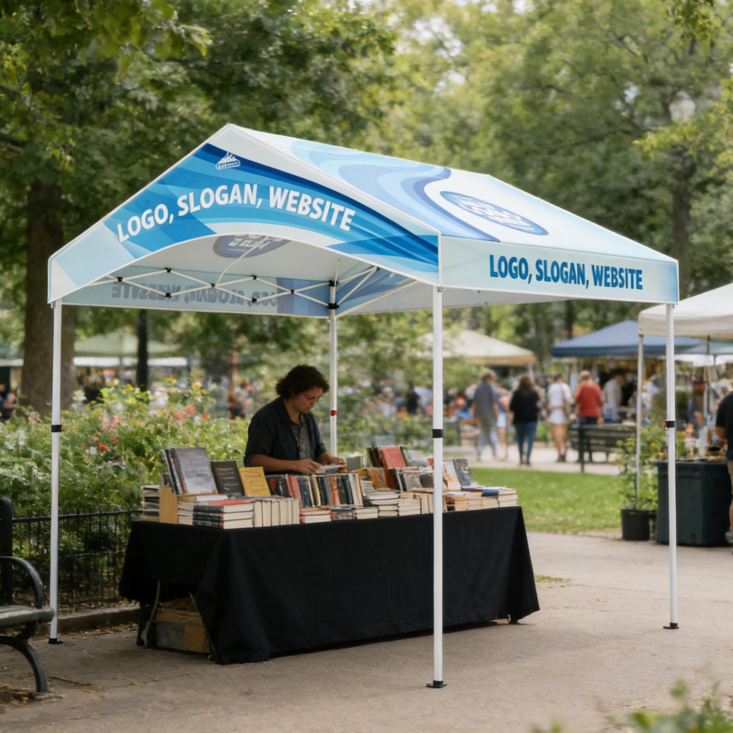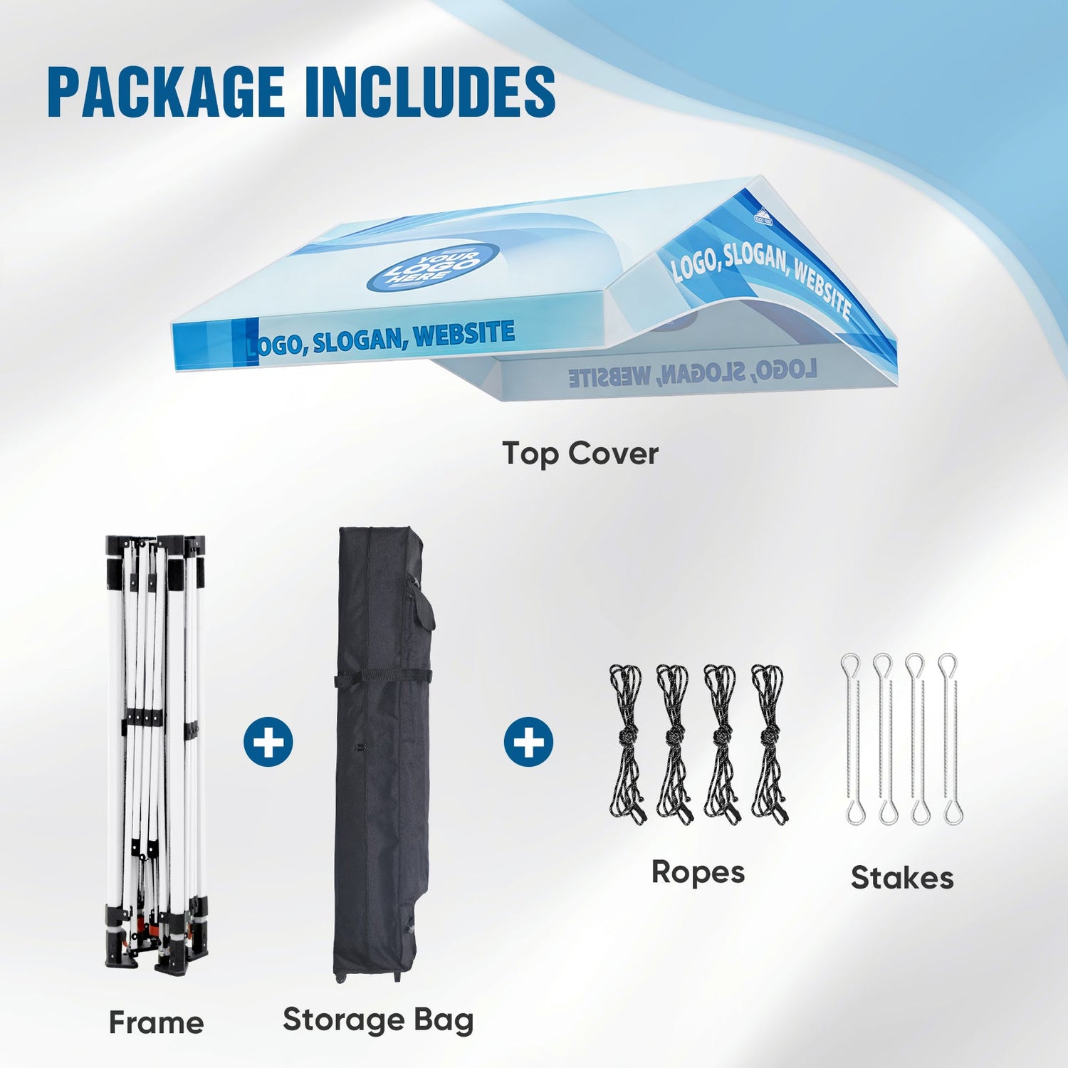 FULL COVERAGE PRINTING: Personalize your vendor customized canopy with vibrant, sharp graphics using high-quality dye-sublimation printing. Enjoy 100% coverage with single-color, multi-color, or full-color designs. Make your brand stand out at farmers' markets, sports events, festivals, and more