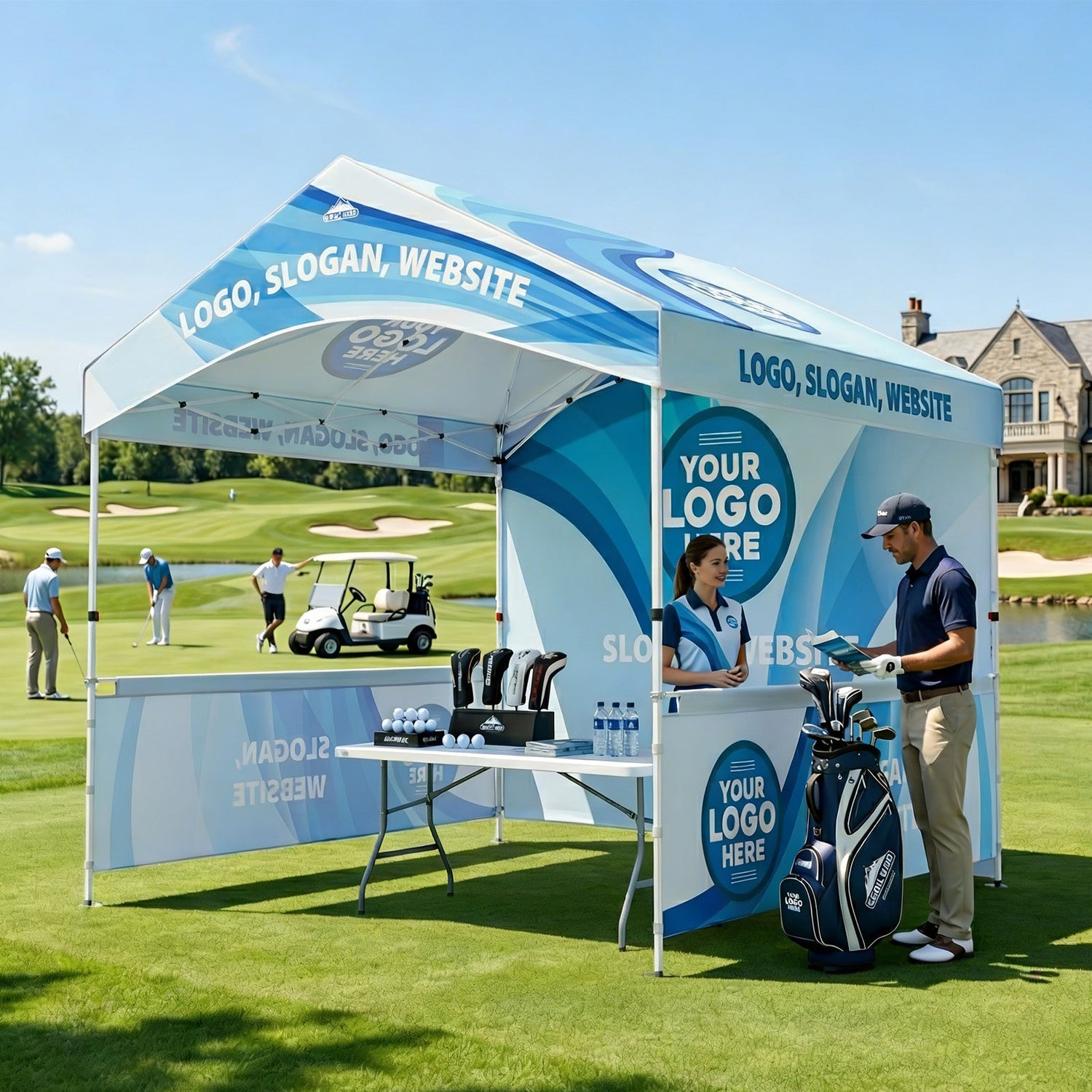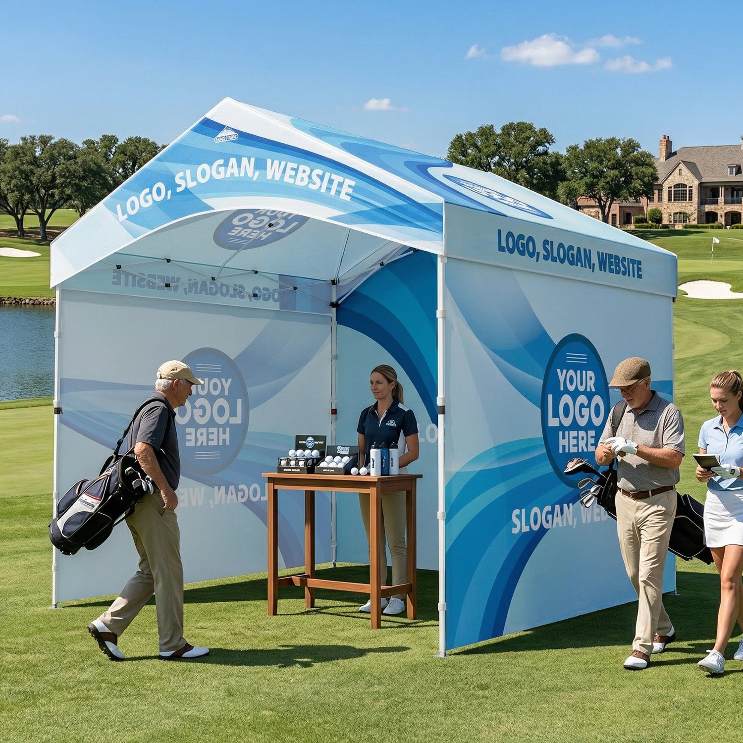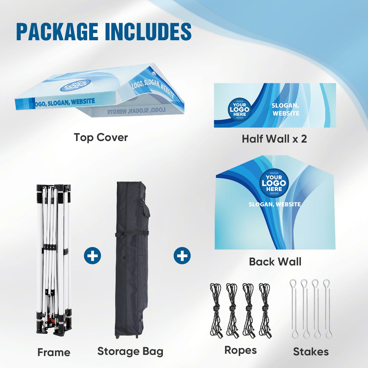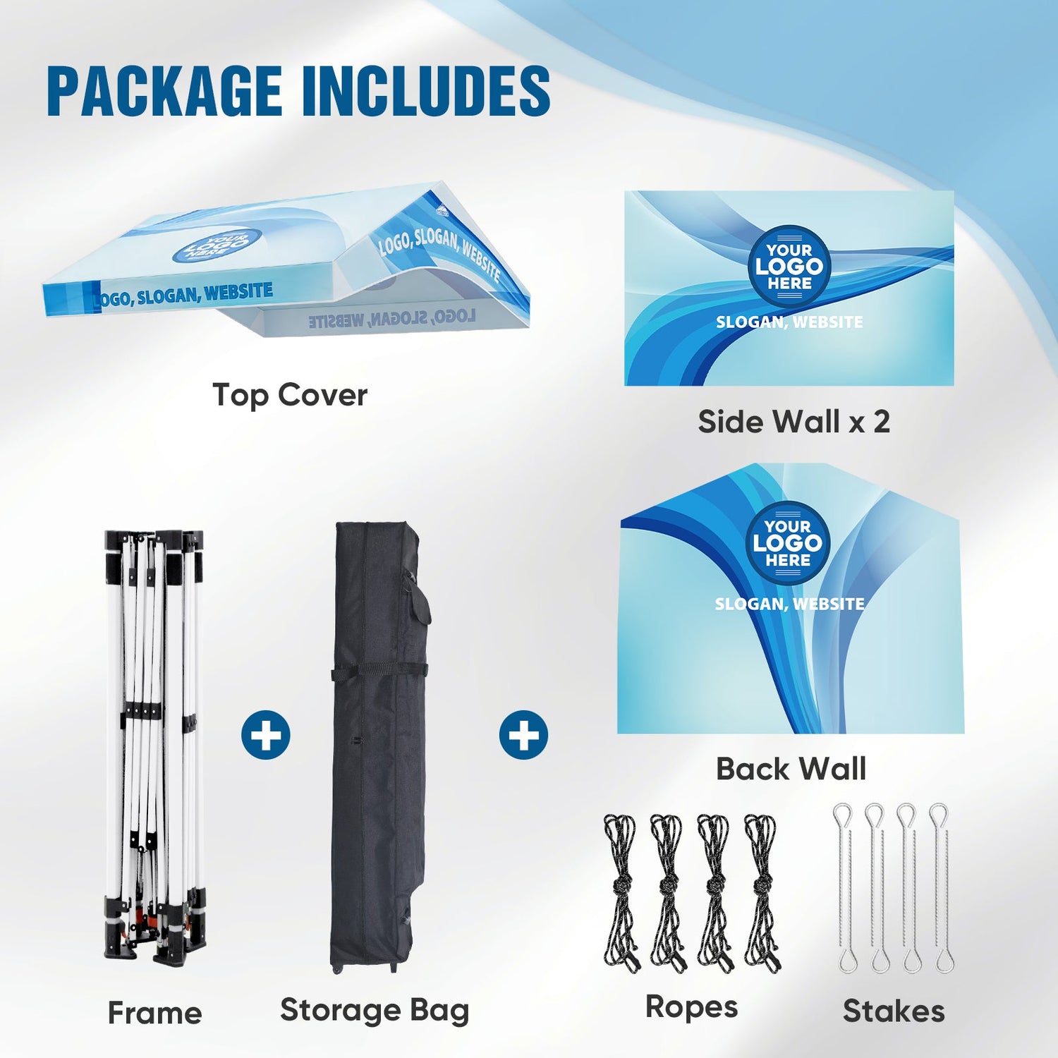 FULL COVERAGE PRINTING: Personalize your vendor customized canopy with vibrant, sharp graphics using high-quality dye-sublimation printing. Enjoy 100% coverage with single-color, multi-color, or full-color designs. Make your brand stand out at farmers' markets, sports events, festivals, and more