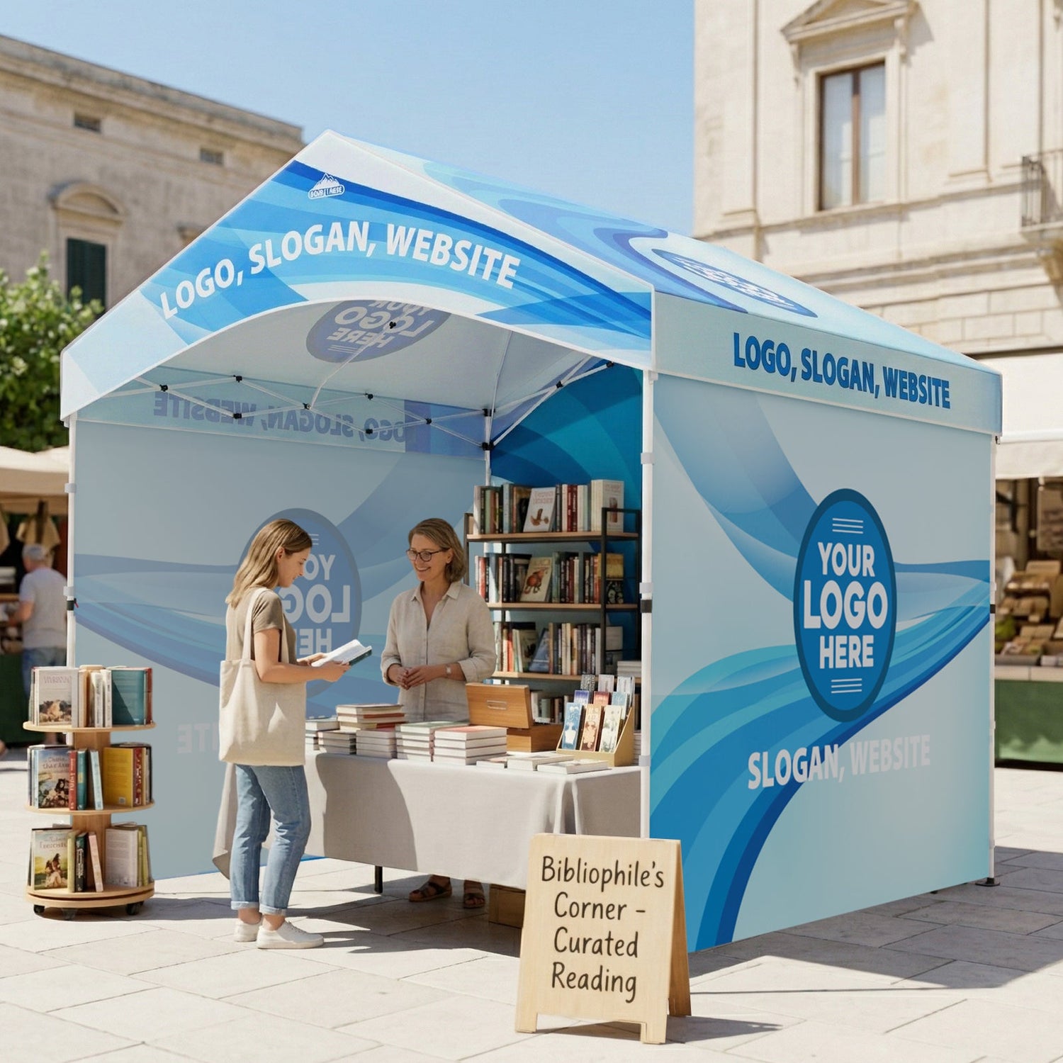 EAGLE PEAK Alps Aluminum Frame Gable Roof Custom Canopy Tent 12x12 with Business Logo, Easy One Person Setup, Branded Tent for Events Markets Tradeshow