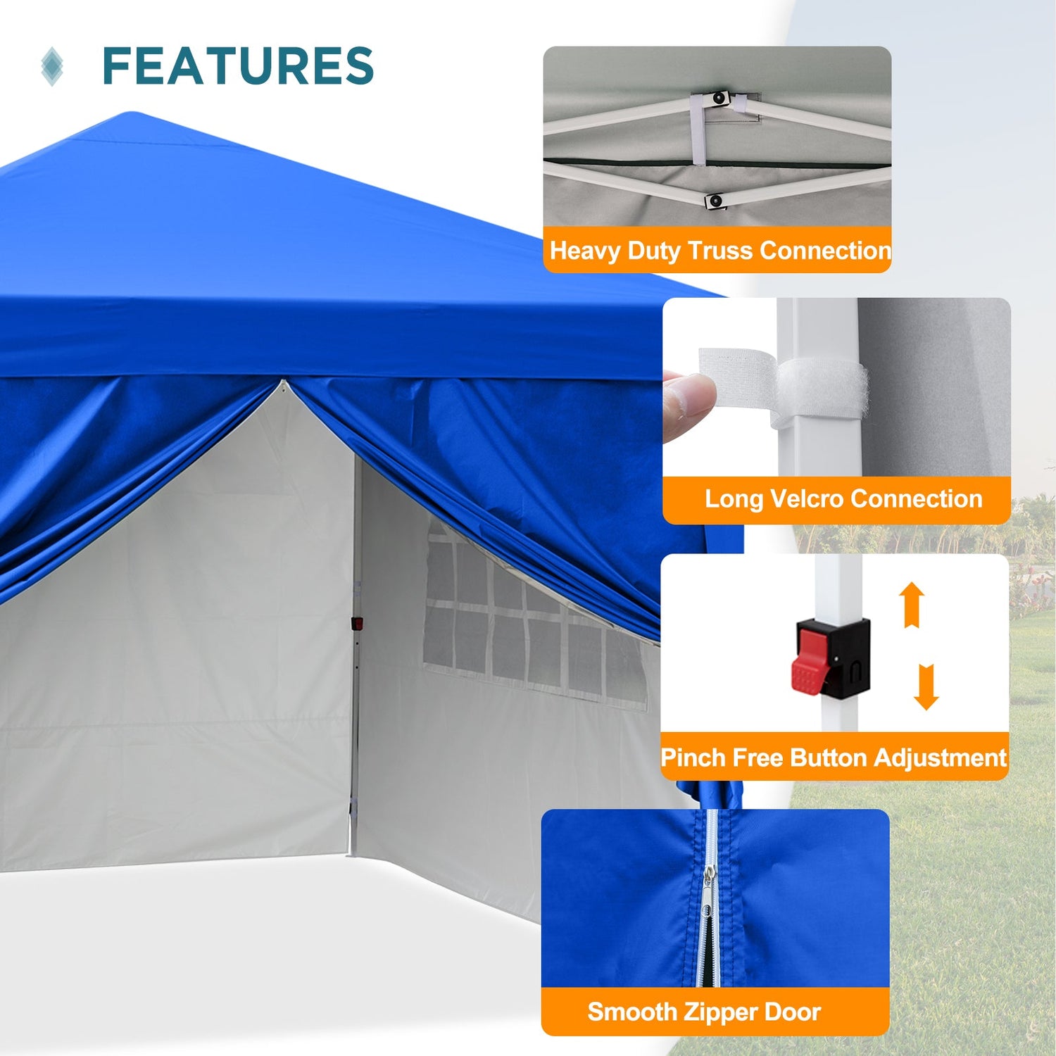 EAGLE PEAK 10x10 Pop Up Canopy Tent with 4 Side Walls, Easy Set up Shelter with 100 Square Feet of Shade, Blue / Red / Gray / White / Black - Blue is backordered and will ship as soon as it is back in stock.