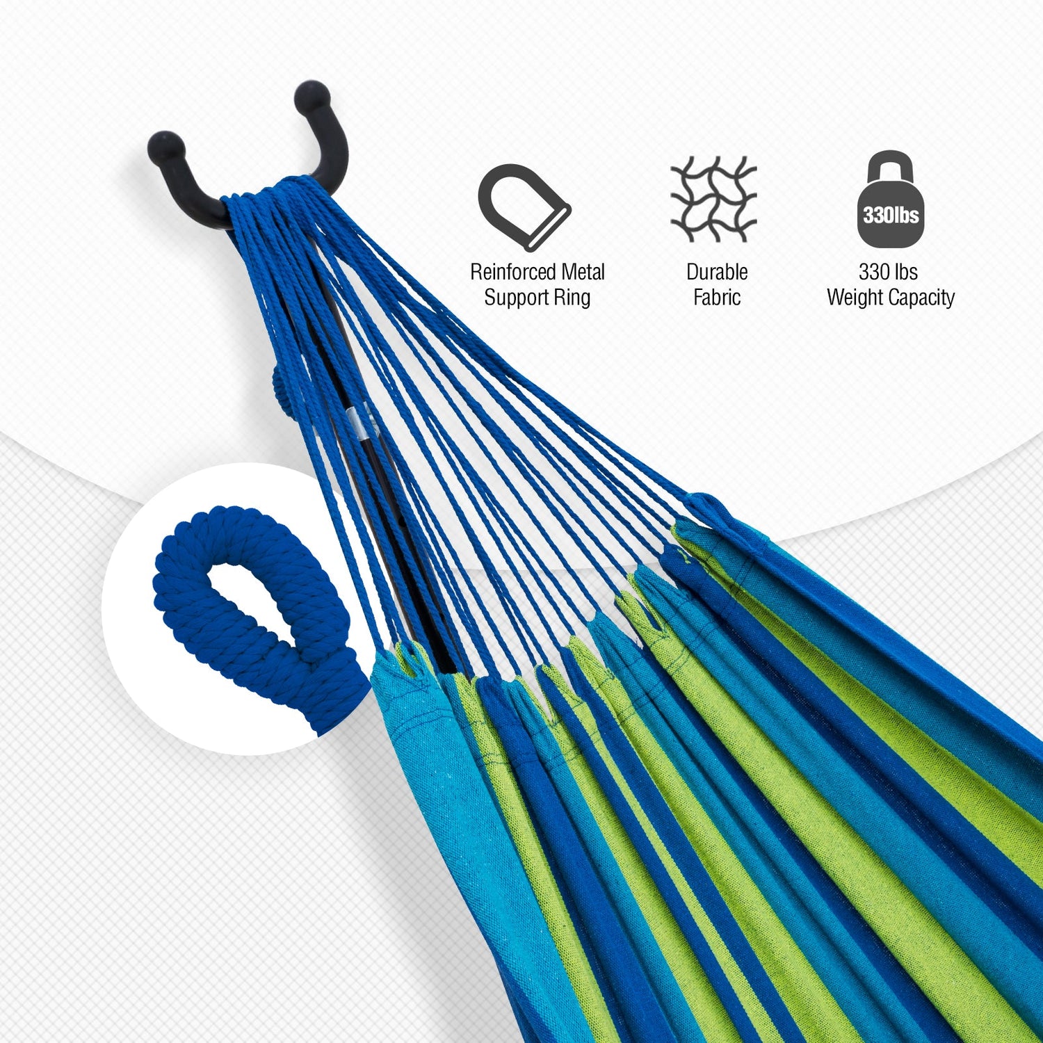 EAGLE PEAK Easy Setup Double Hammock with Stand, 9 FT Space Saving Steel Stand Includes Portable Carrying Bag