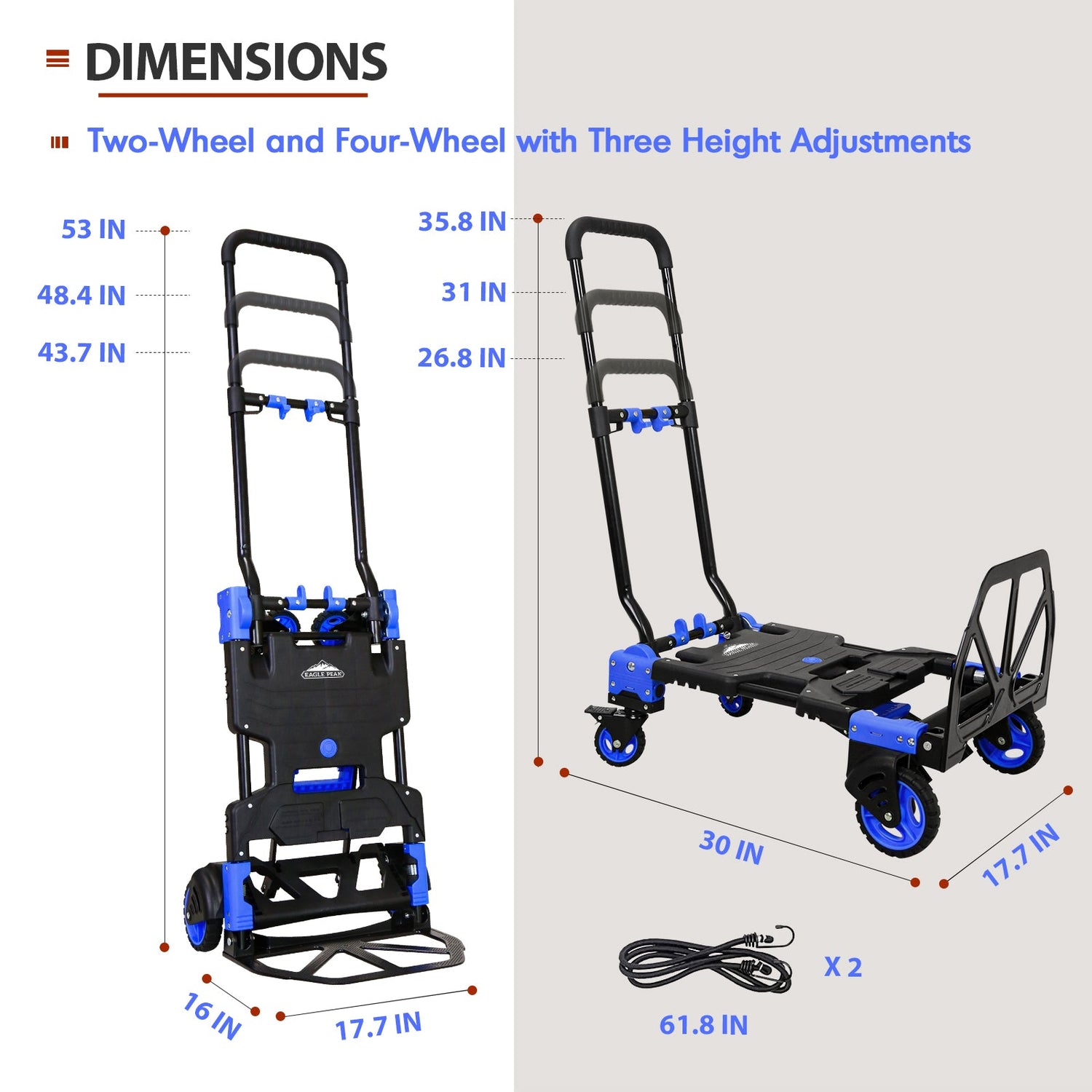 EAGLE PEAK Folding Dolly Cart 330 lb Capacity with Bungee Cords, Multi-Position for Luggage/Travel/Move/Transportation