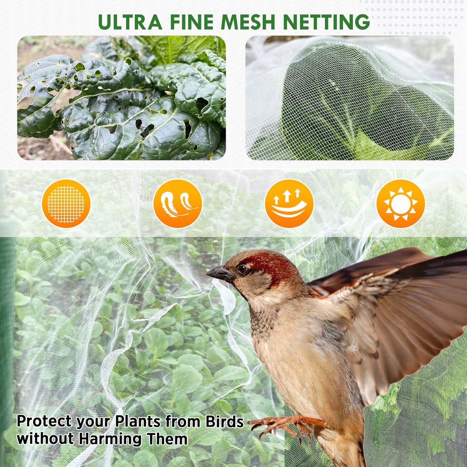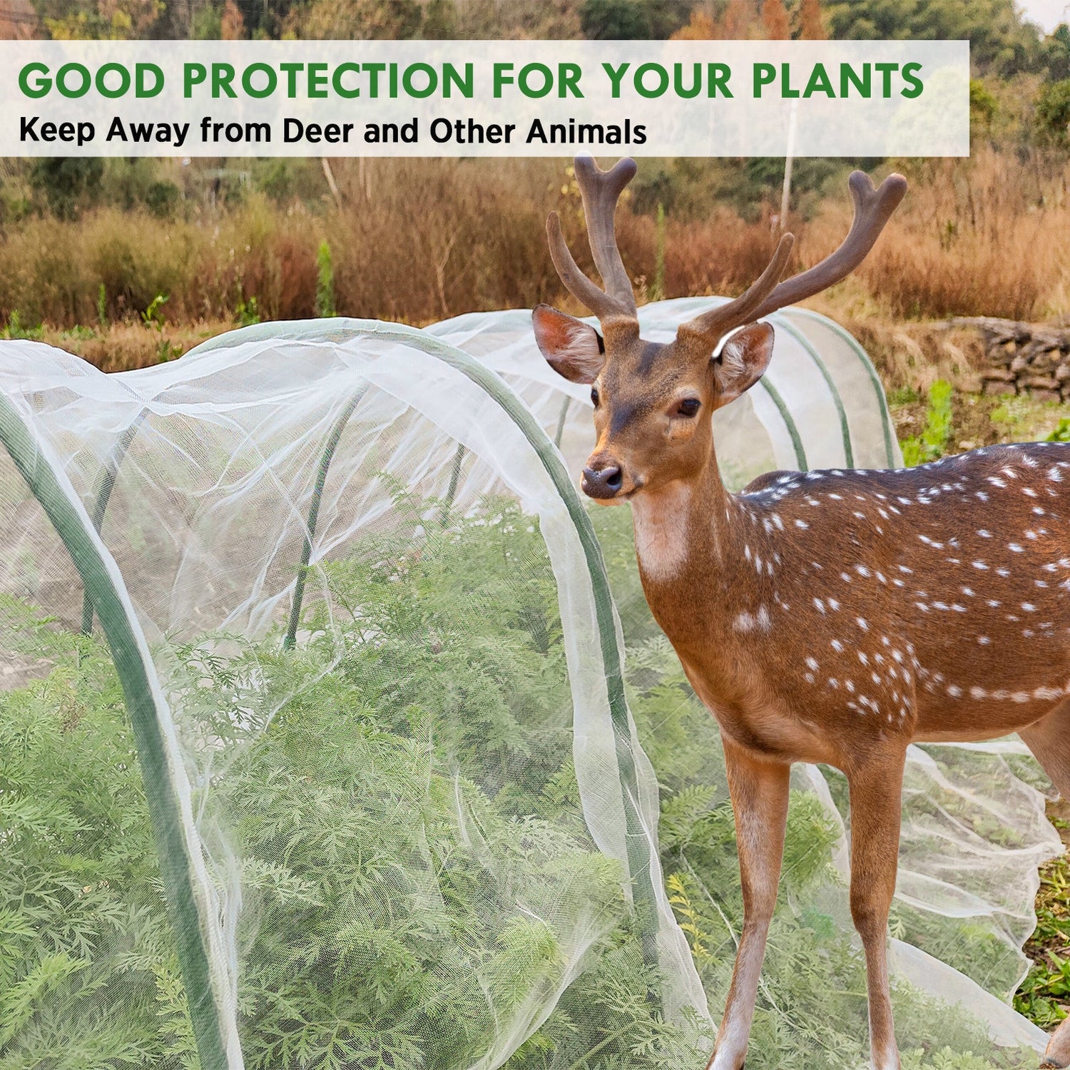 Fine Mesh Netting Protection: The mesh netting can be put over your plants directly or placed on the hoops to keep your fruits, crops, vegetables, and flowers protected from birds and animals. The netting can be cut into different sizes to meet your needs.