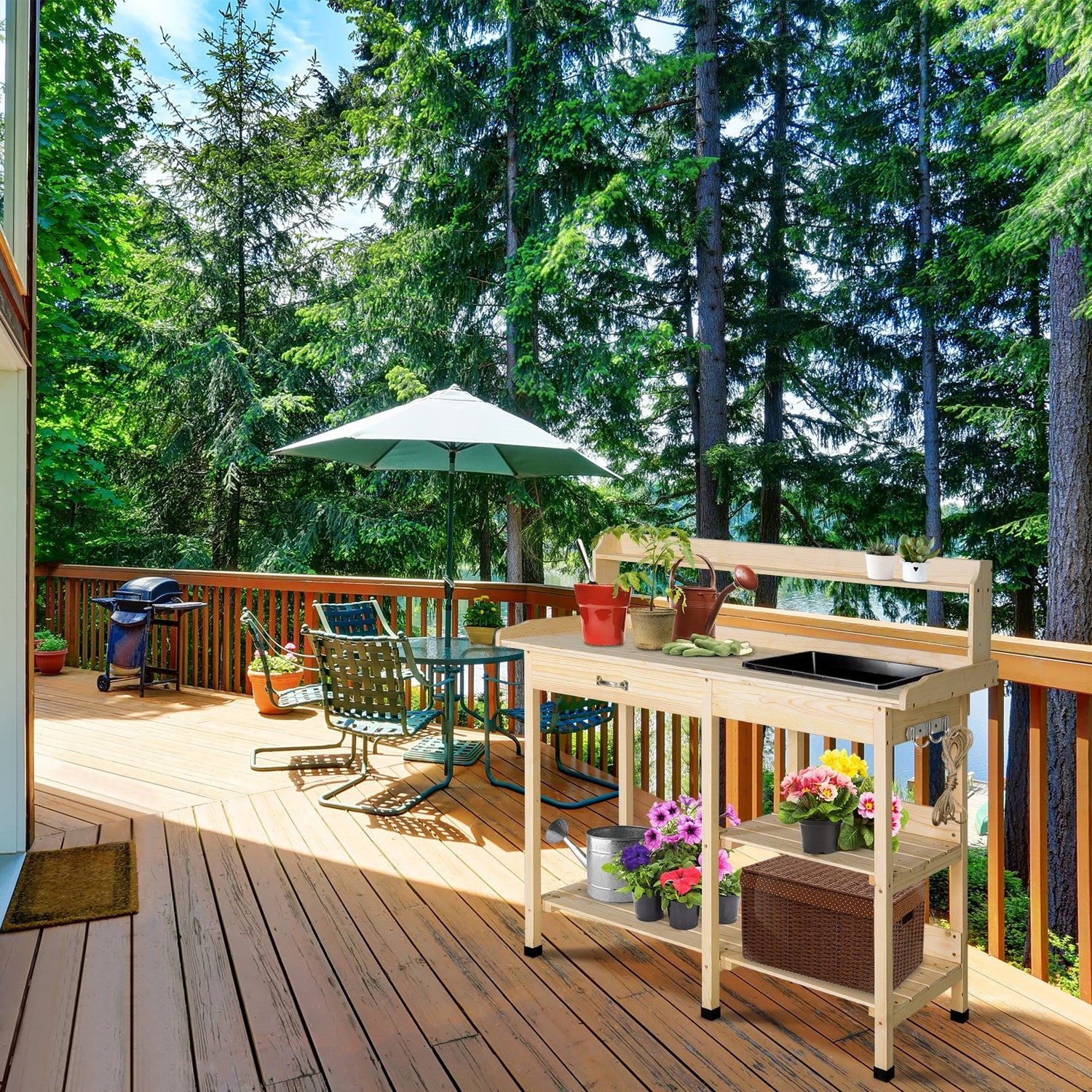 EAGLE PEAK Outdoor Garden Potting Bench Wooden Work Station Table with Removable Dry Sink, Storage Shelf, Handy Hook