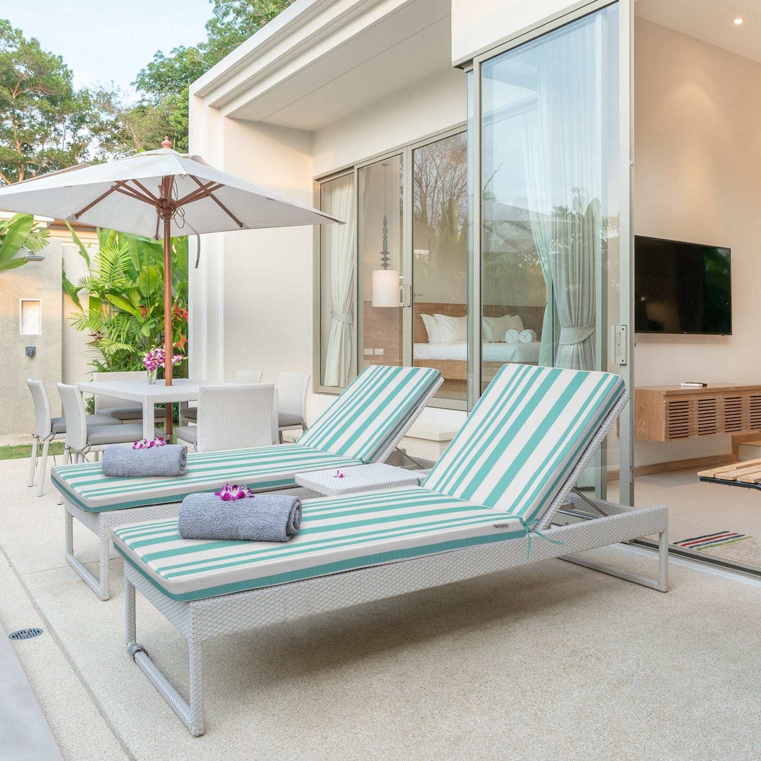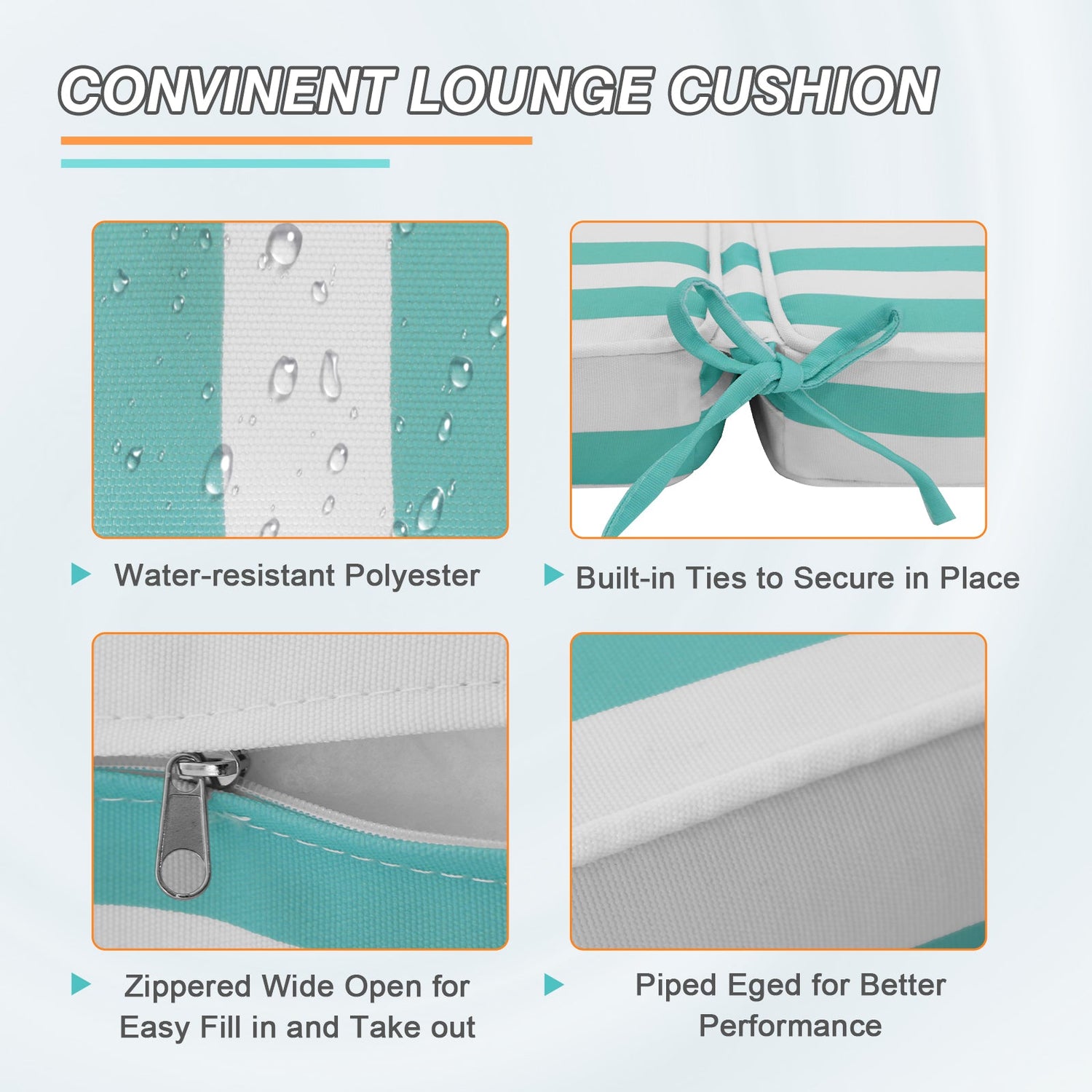 - Quality Lounge Cushion: The chaise lounge cushion is made of soft and breathable polyester fabric which is water-repellent. Cleaning and care is simple and easy. Spot clean with mild detergent and cool water and then air dry.