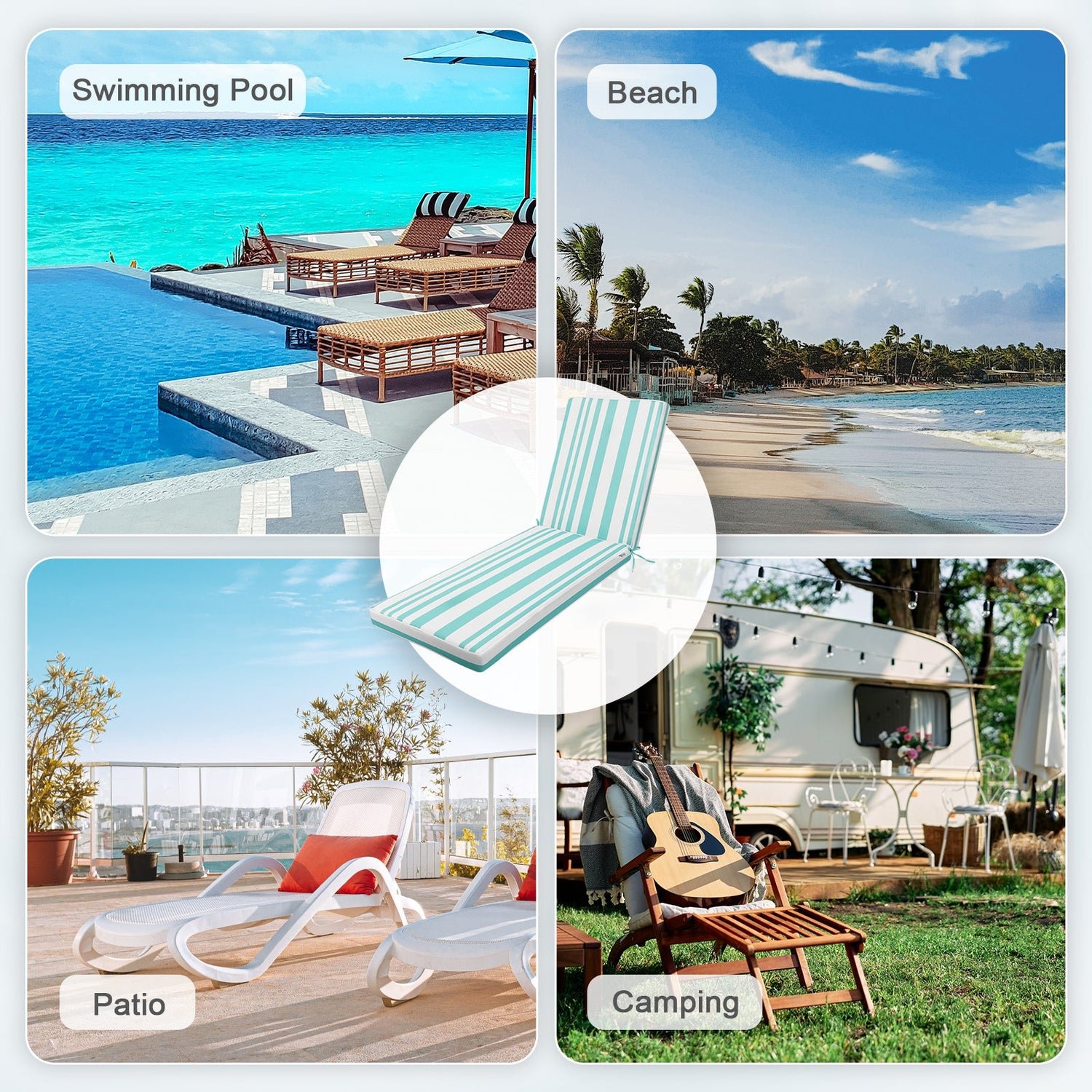 - Universal Size: The outdoor chaise lounge cushion measures: 72"L x 21"W x 3"Thick. Seat: 21"W x 44"D x 3"Thick, back: 21"W x 28"H x 3"Thick. A perfect fit for most lounge chair styles. Use the long strings to attach the cushion to your furniture.