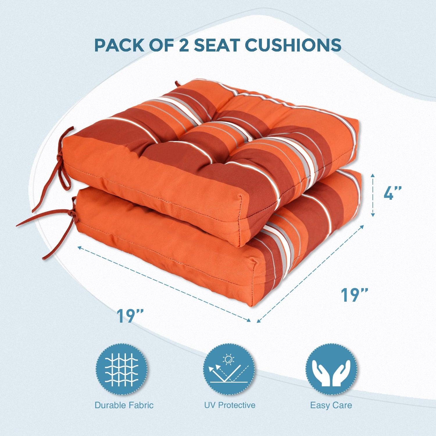 EAGLE PEAK Outdoor/Indoor Tufted Stripe Seat Patio Cushions (Square Back Edge), 19" x 19'' x 4'' , 2 Pack