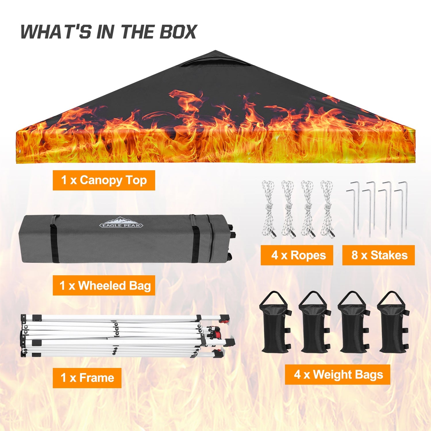 SHADE GRAPHiX Easy Setup 10x10 Pop Up Canopy Tent with Digital Printed Flame Top