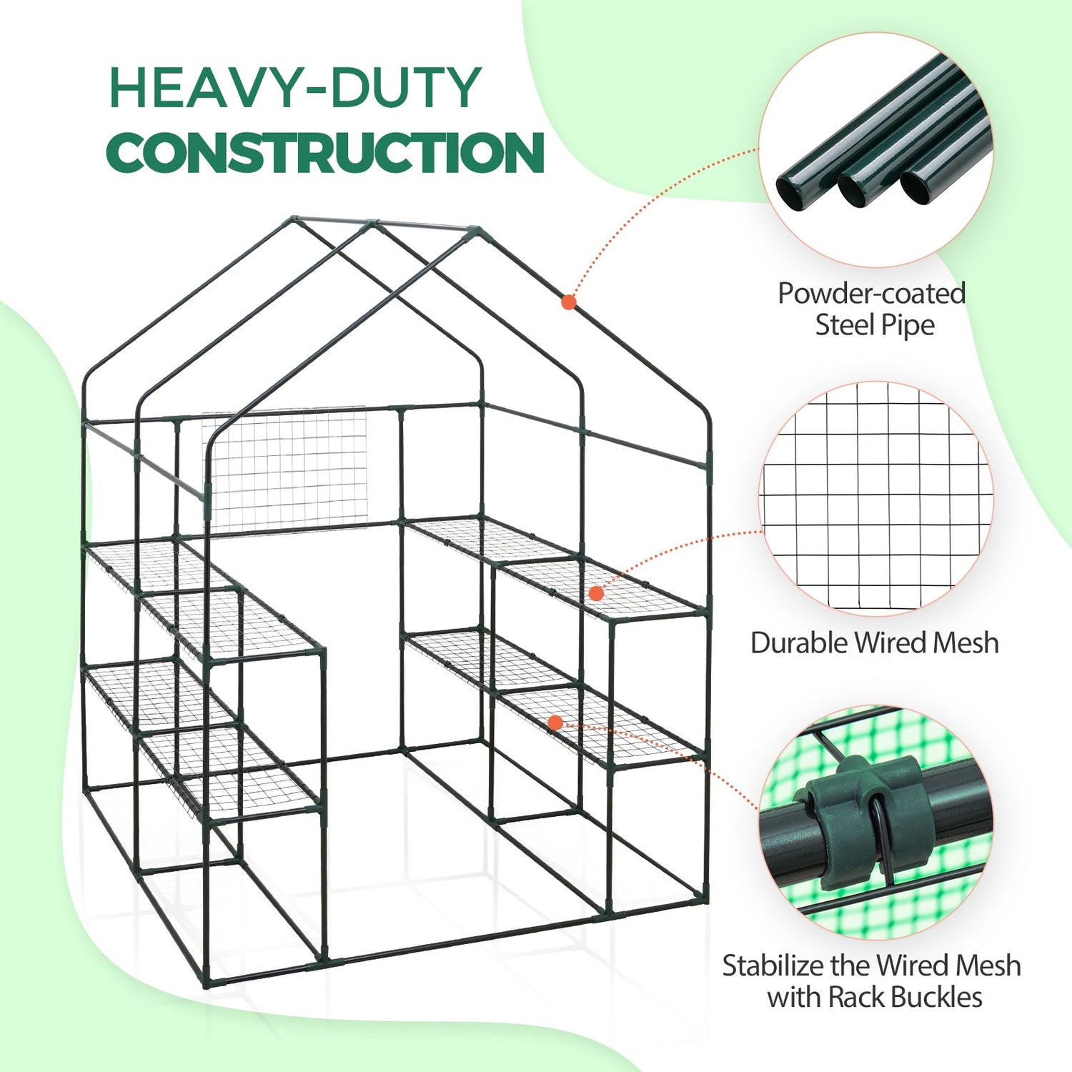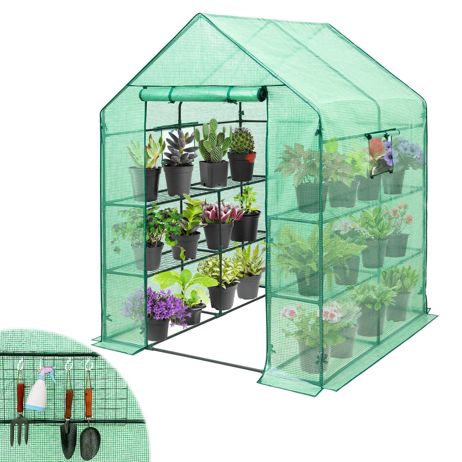 Walk In 3-Tier Greenhouse with Wire Shelves, 56"x56"x76"