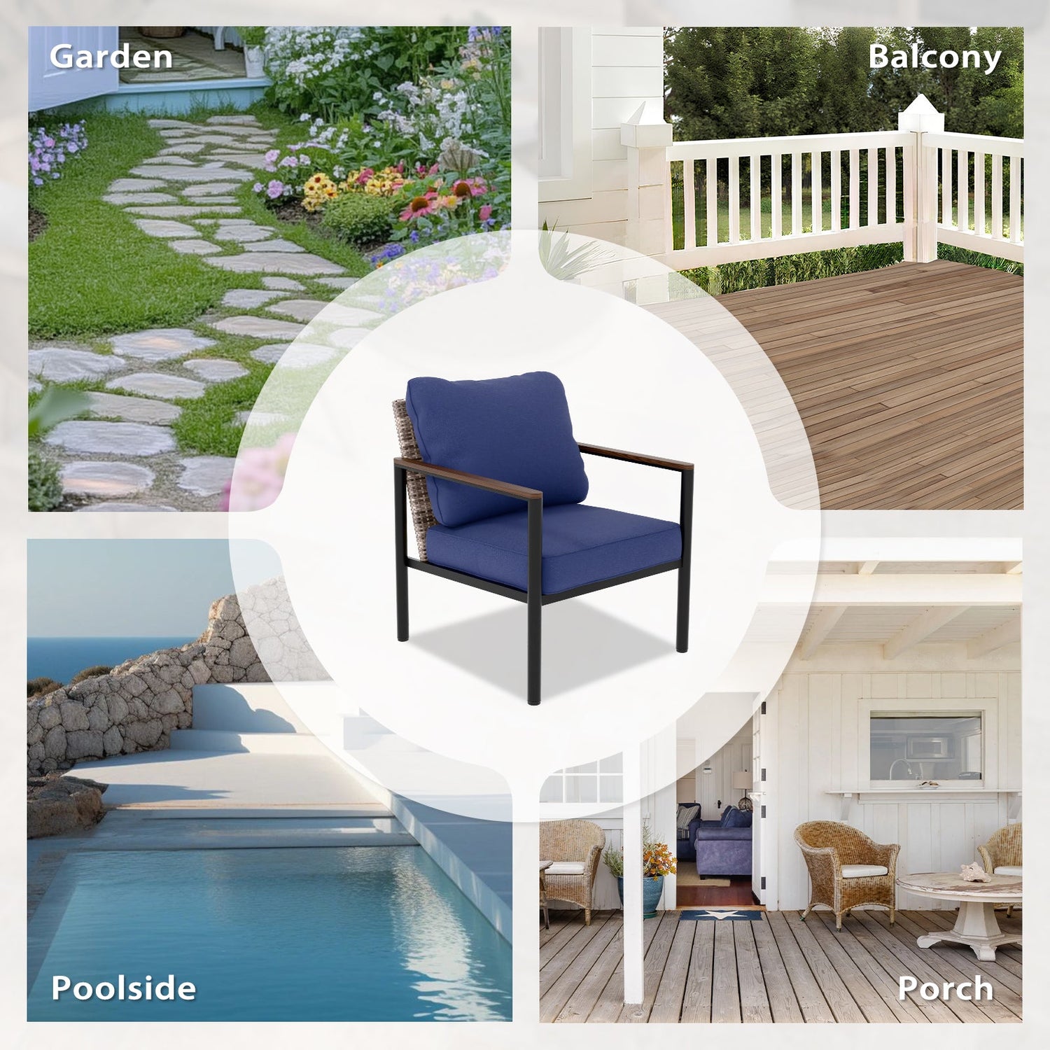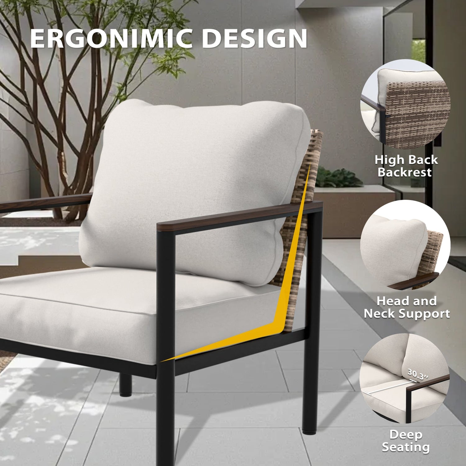 SPACIOUS & COMPACT DESIGN: With dimensions of 25.9" W x 30.3" D x 32.3" H, this chair provides ample lounging space without overwhelming your patio or living area, offering comfort and style in one compact size
