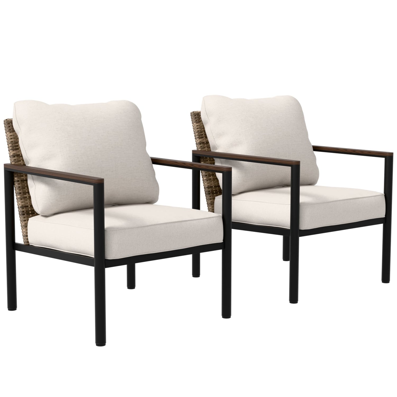 EAGLE PEAK Sunset Dune Collection Modern Outdoor Patio Furniture Chair Deep Cushions, Wicker Metal Weather-Resistant Brown Beige, 2 Chairs