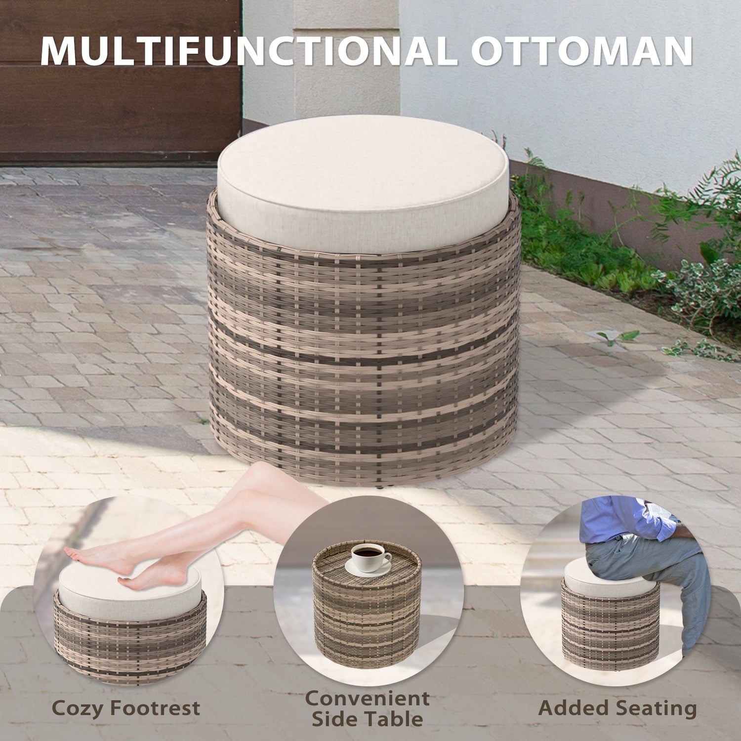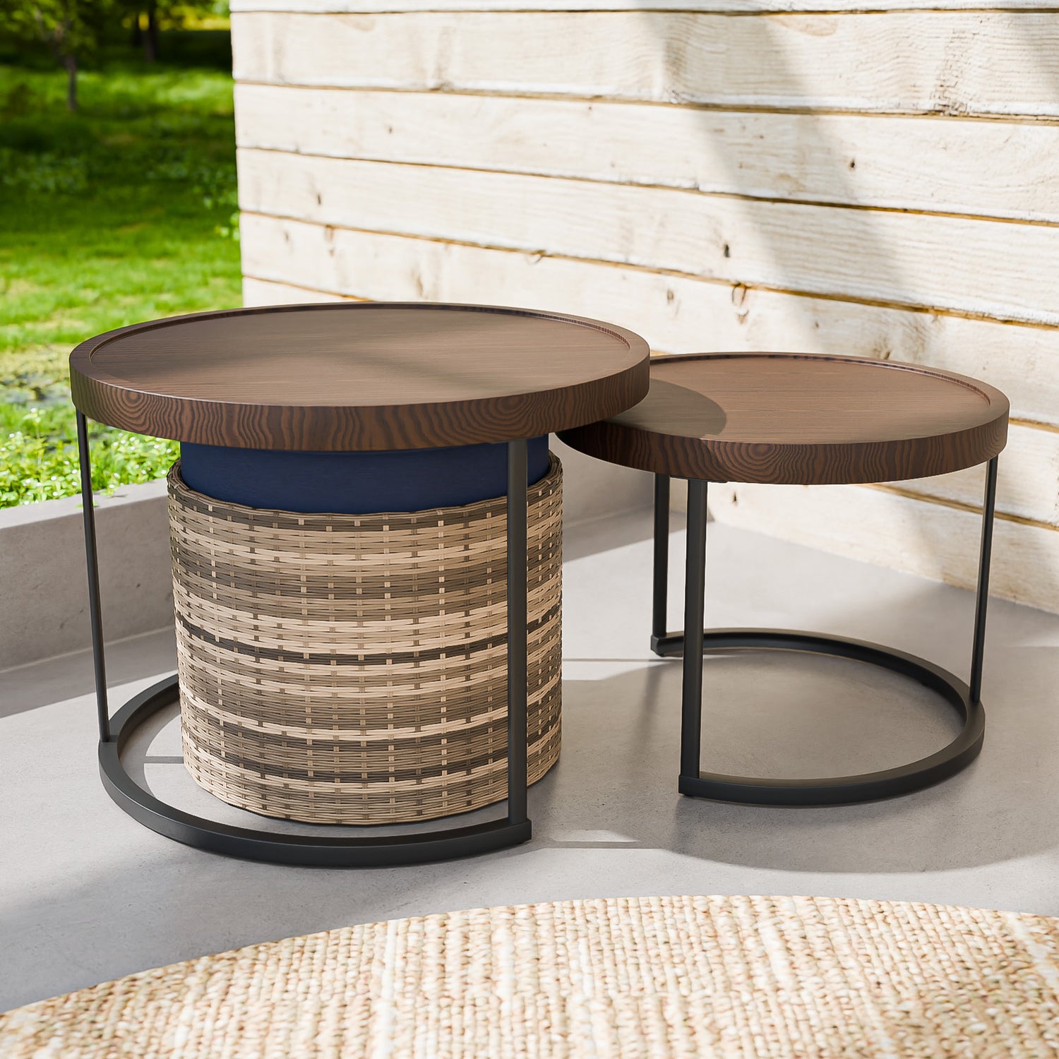 Sunset Dune Outdoor Patio Furniture, Set of 2 Nesting Coffee Tables 1 Ottoman