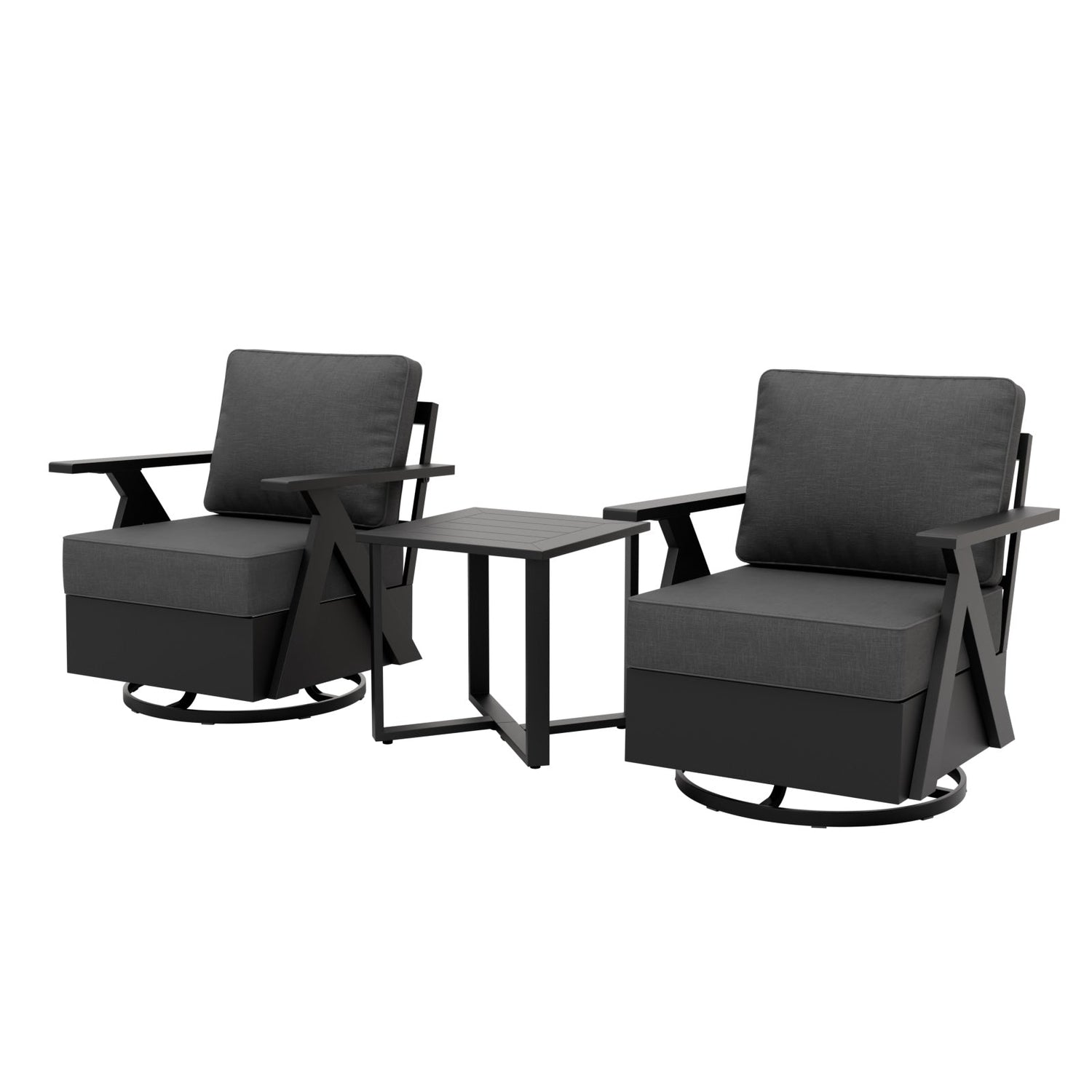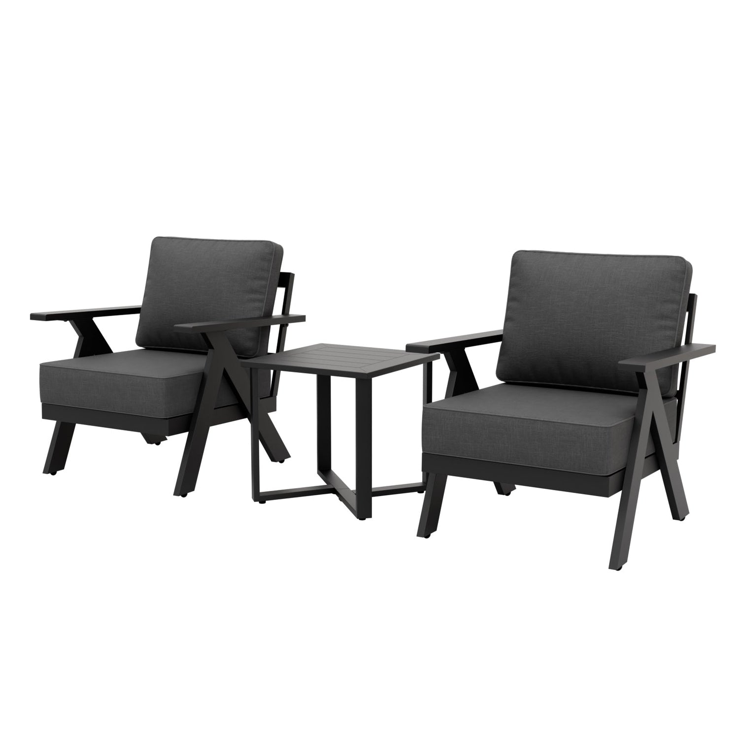 EAGLE PEAK Urban Slate 3 Piece Outdoor Bistro Set Modern Patio Chairs and Table, Outdoor Furniture Set for Balcony Porch Deck or Backyard, Black/Beige