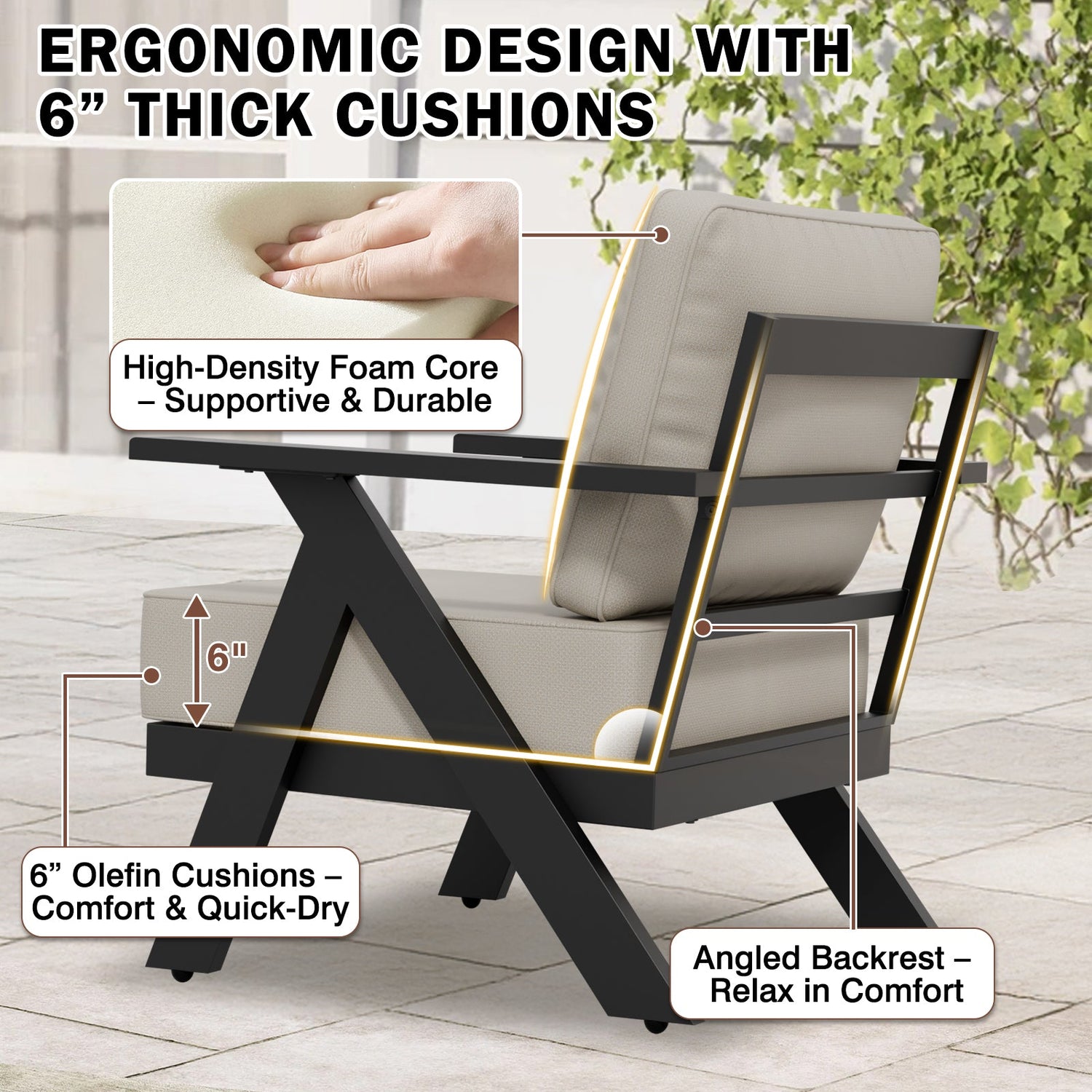 OUTDOOR DURABILITY: Built with a rust-resistant metal frame and finished in a weatherproof powder coating, this metal outdoor furniture set offers lasting durability. Perfect for backyard furniture, deck seating, or as a patio conversation set for year round use
