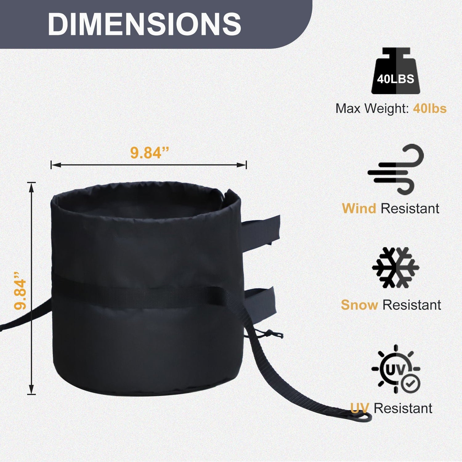 Wide-Mouth Quick-Fill Canopy and Tent Weight Bags, 160lbs Pack of 4, Black
