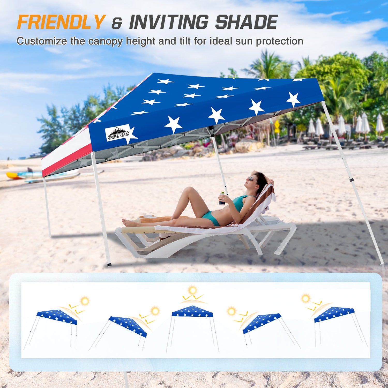EASILY ADJUSTABLE: The leg height has three settings to quickly adjust the canopy height and angle to maximize shade throughout the day. 64 square feet of shade, large enough for 5 people. (Slant leg design is 10'x10' at base and 8'x8' at the top).