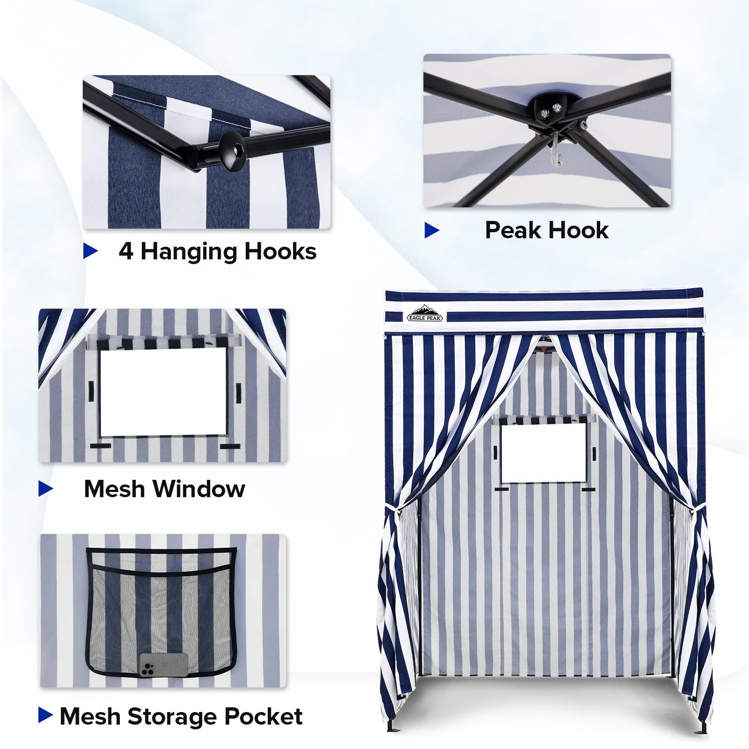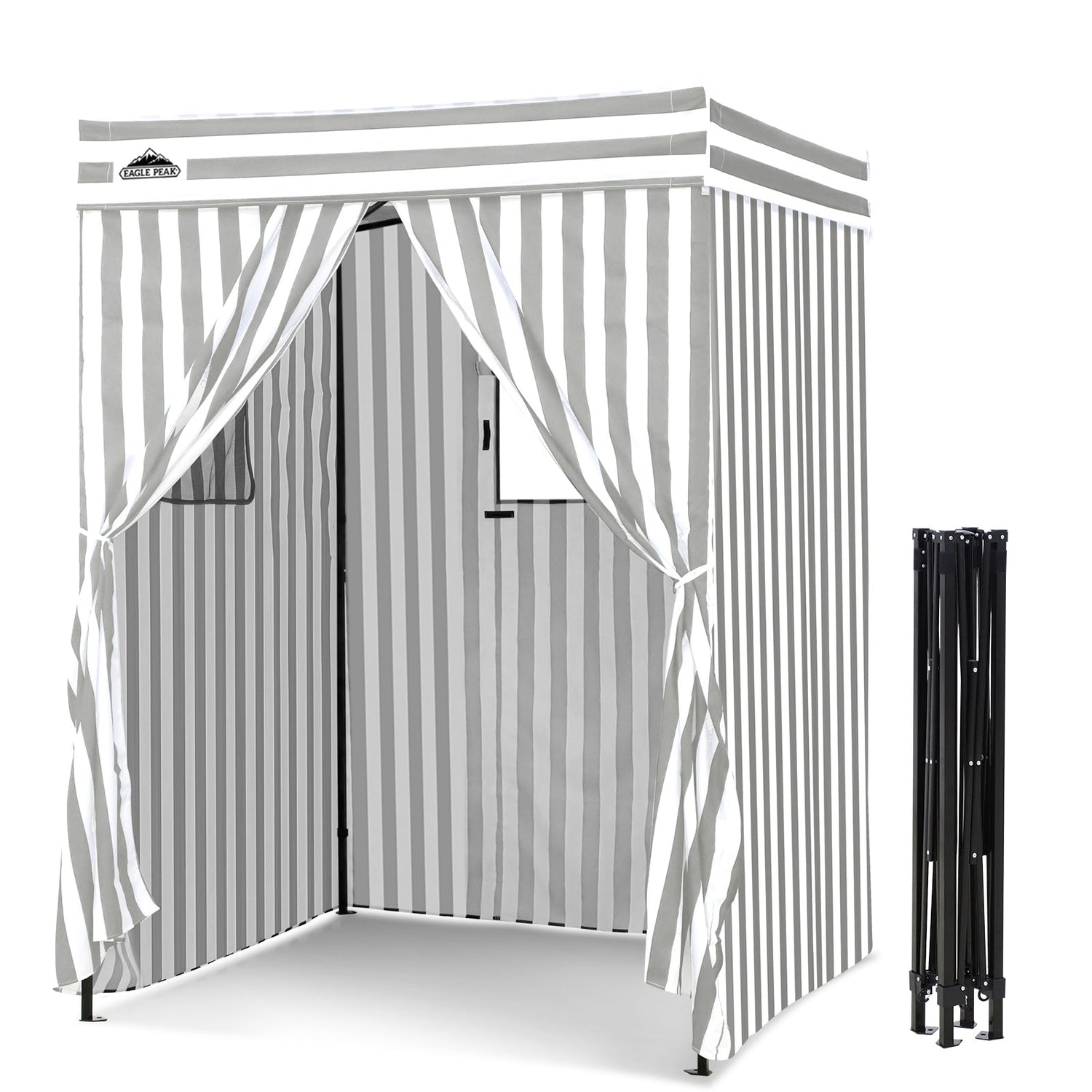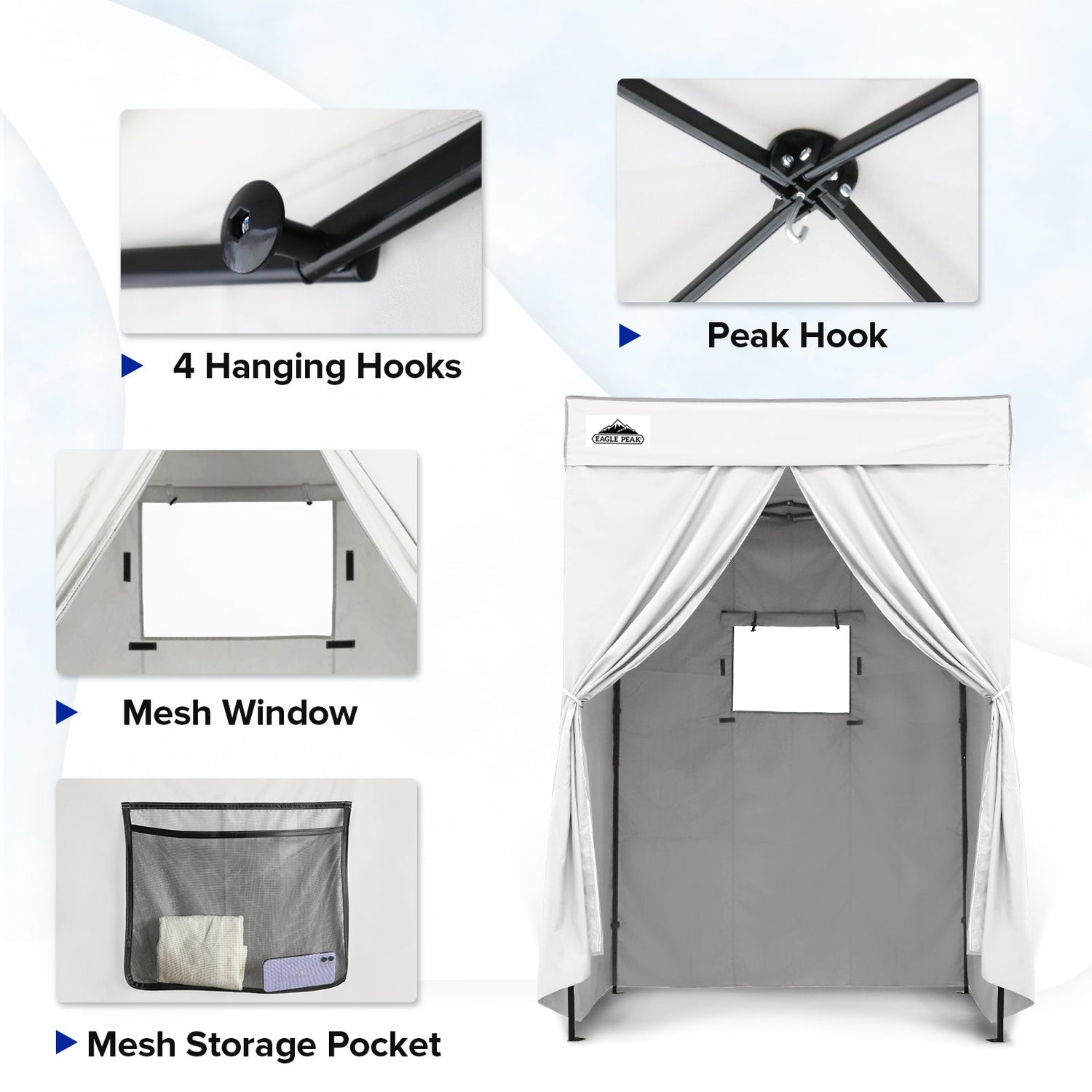 LIGHTWEIGHT & ULTRA COMPACT: EAGLE PEAK Changing dressing room has an ultra-compact, 2-part adjustable steel leg extension system. The Cabana is instantly folding down to 6.3x6.3x45.3 in.