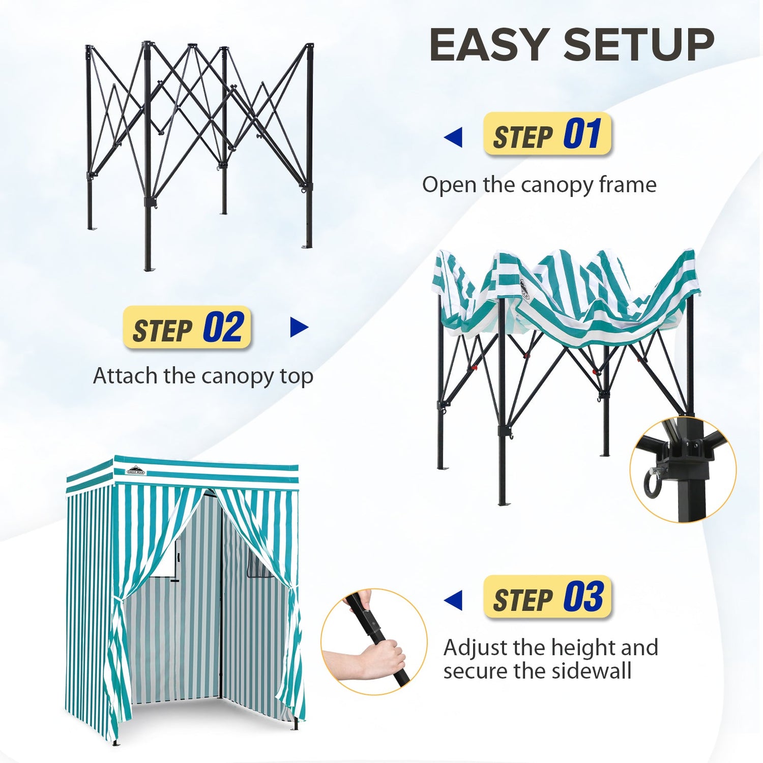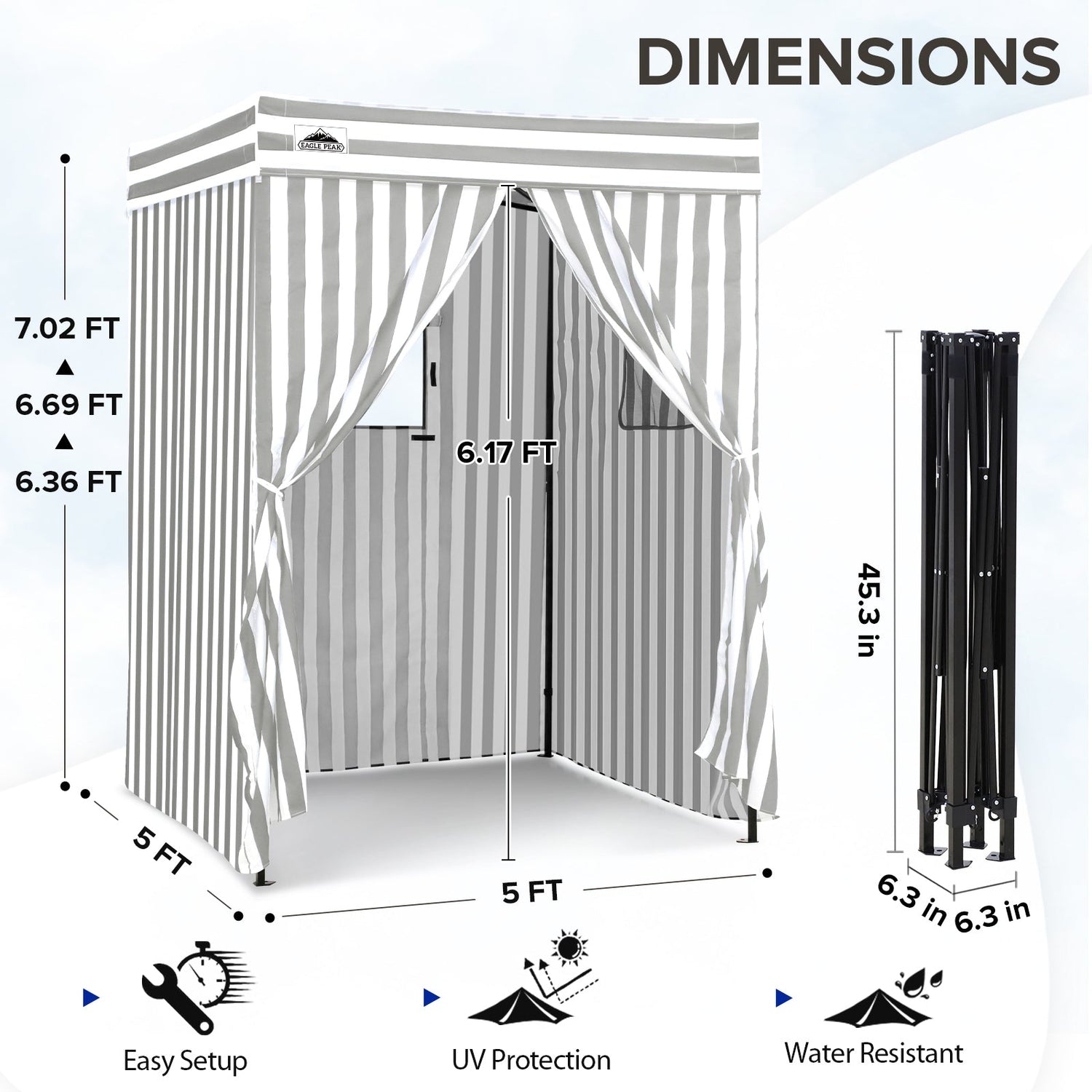 INSTANT POP UP PRIVACY CANOPY/SHELTER/CHANGING ROOM: 5x5 canopy changing tent for two or more people. Perfect as a changing room for all indoor and outdoor activities including for fashion shows, photoshoots, dance class, camping, backyards, pool parties or use as a showering tent, portable toilet shelter.