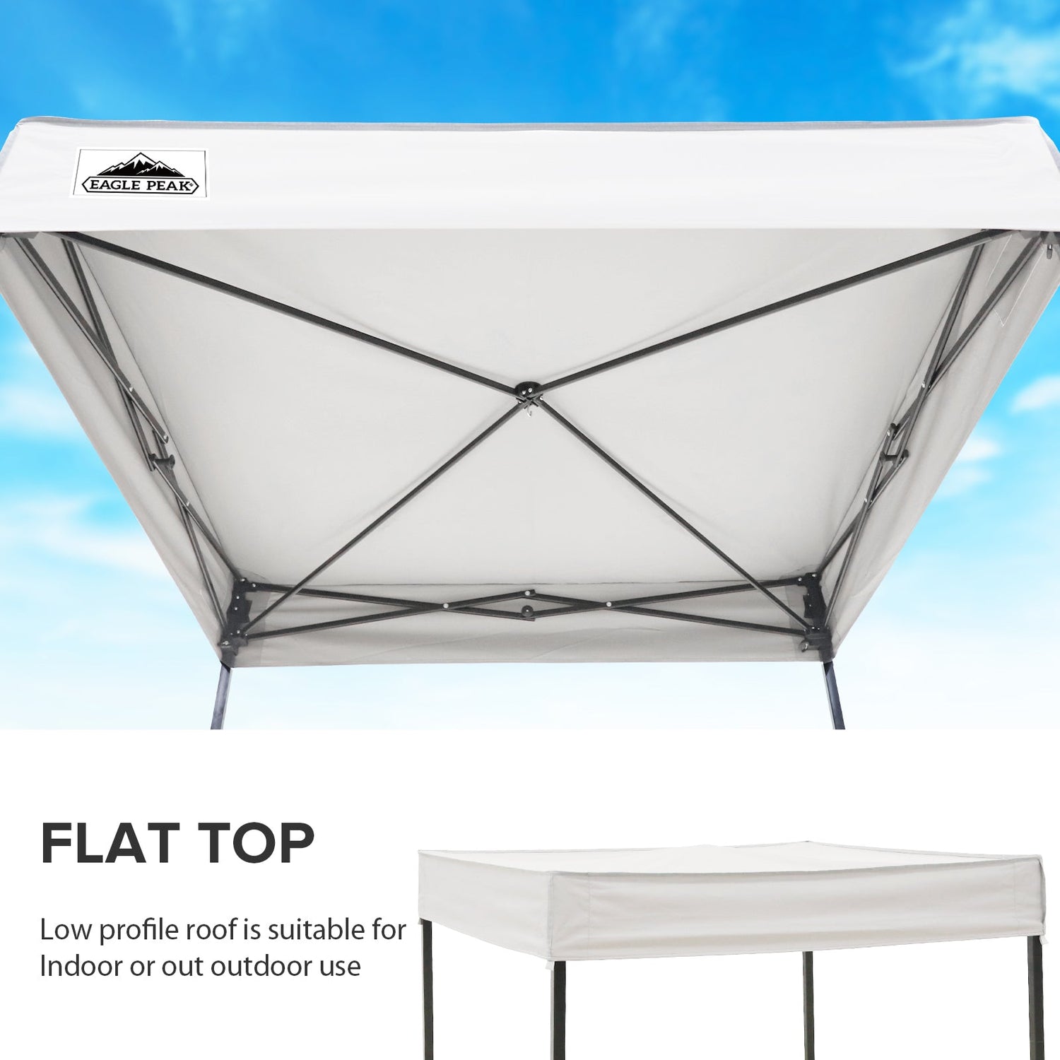 WHAT’S INCLUDED: 5x5 Pop-up Canopy Frame, 140g polyester top fabric, 140g polyester canopy sidewalls with easy-entrance zipper for complete enclosure, 2 mesh storage pockets sewn into the sidewall, 1 ceiling hook can hold up to 50 lbs, 1 carry bag.