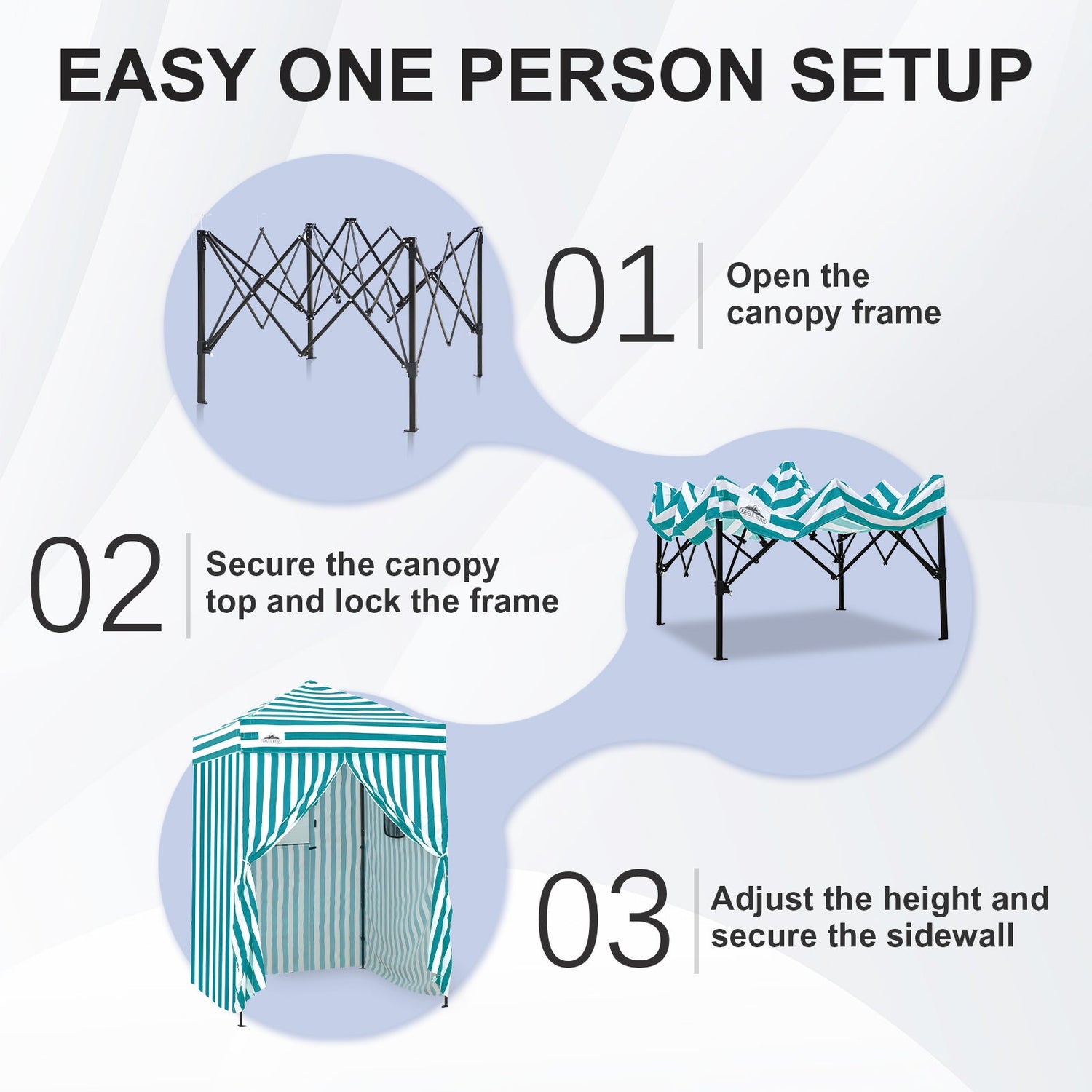 INSTANT PRIVACY CHANGING ROOM: 5x5 changing tent for one or two people. Perfect as a changing room or sun cabana for outdoor activities: fashion show, photoshoot, camping, backyards, pool party or a showering tent, portable toilet shelter.