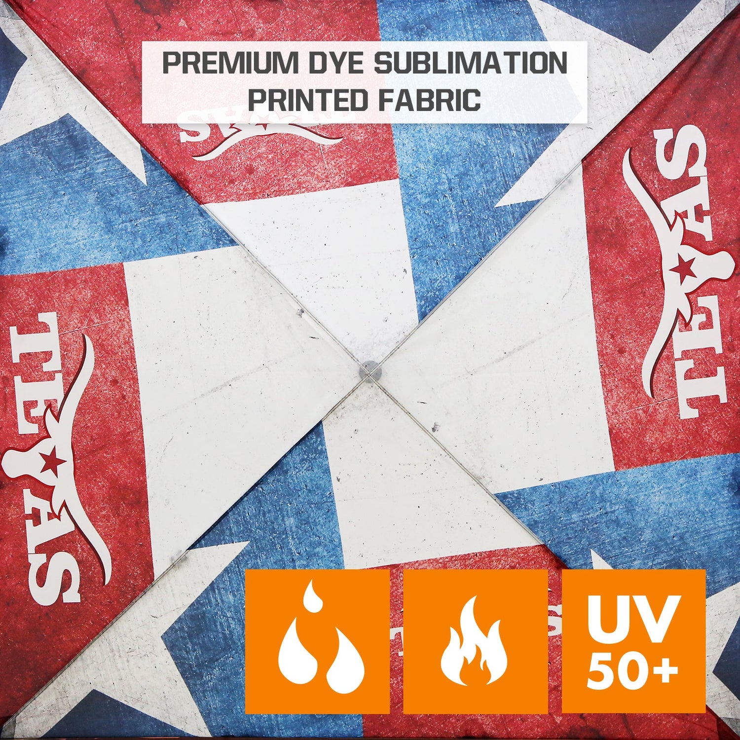 SHADE GRAPHiX Slant Leg 10x10 Pop Up Canopy Tent, 10x10 Base 8x8 Top (Texas Pride)