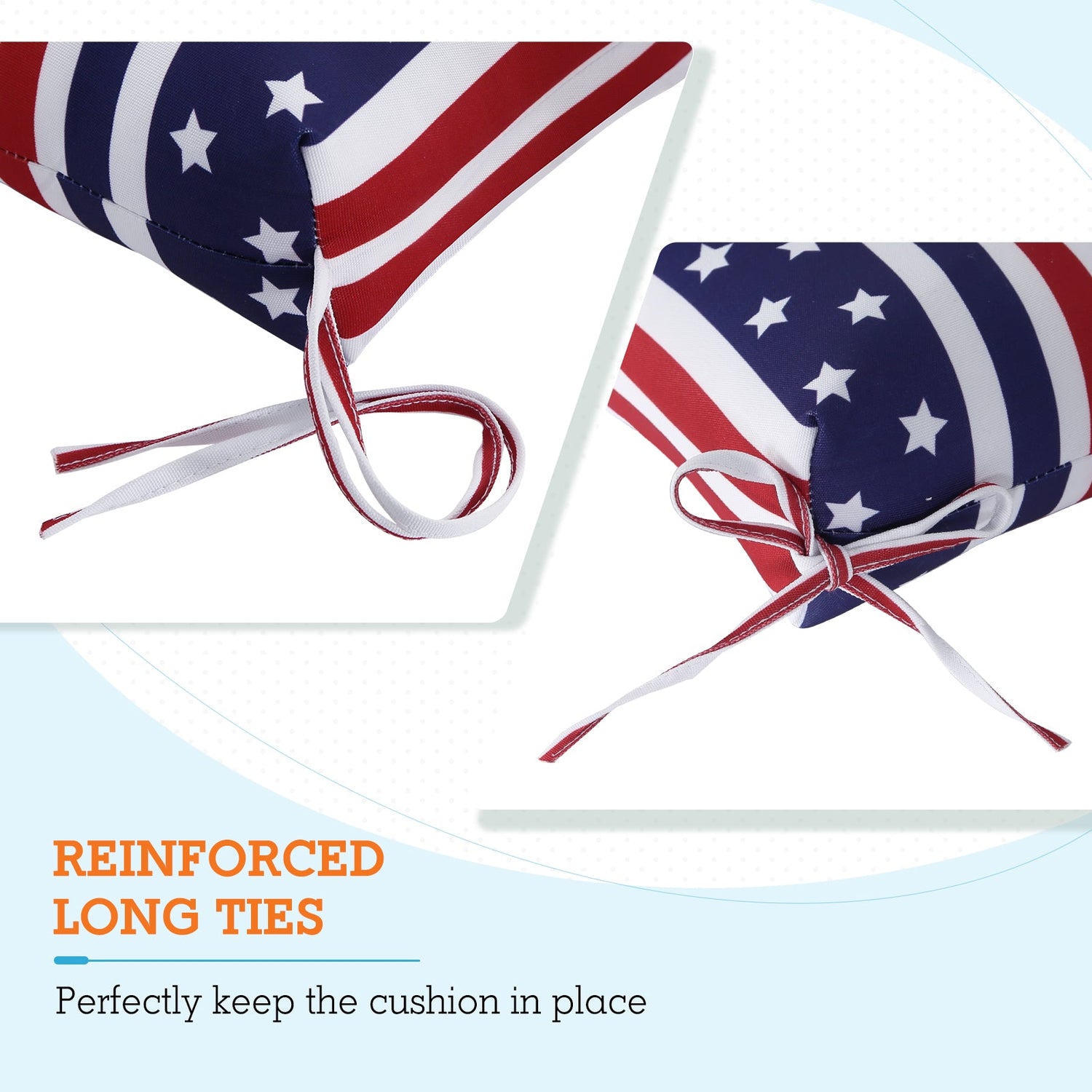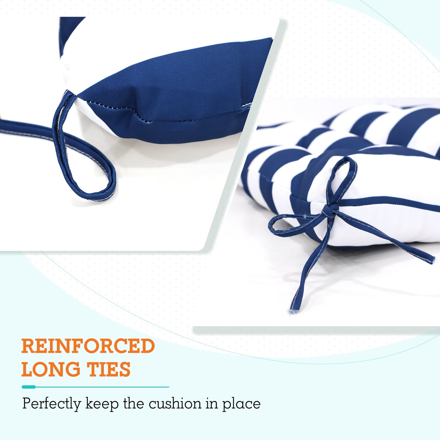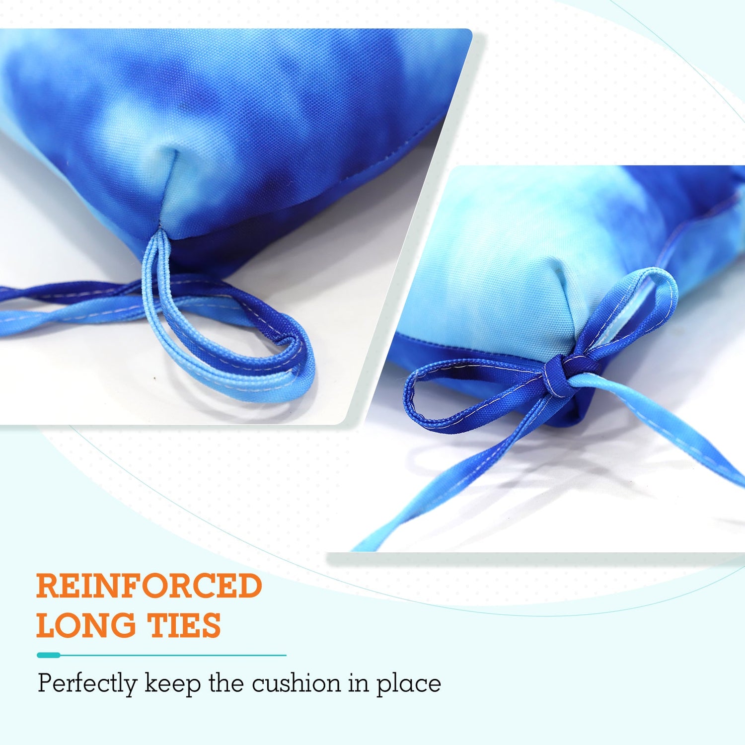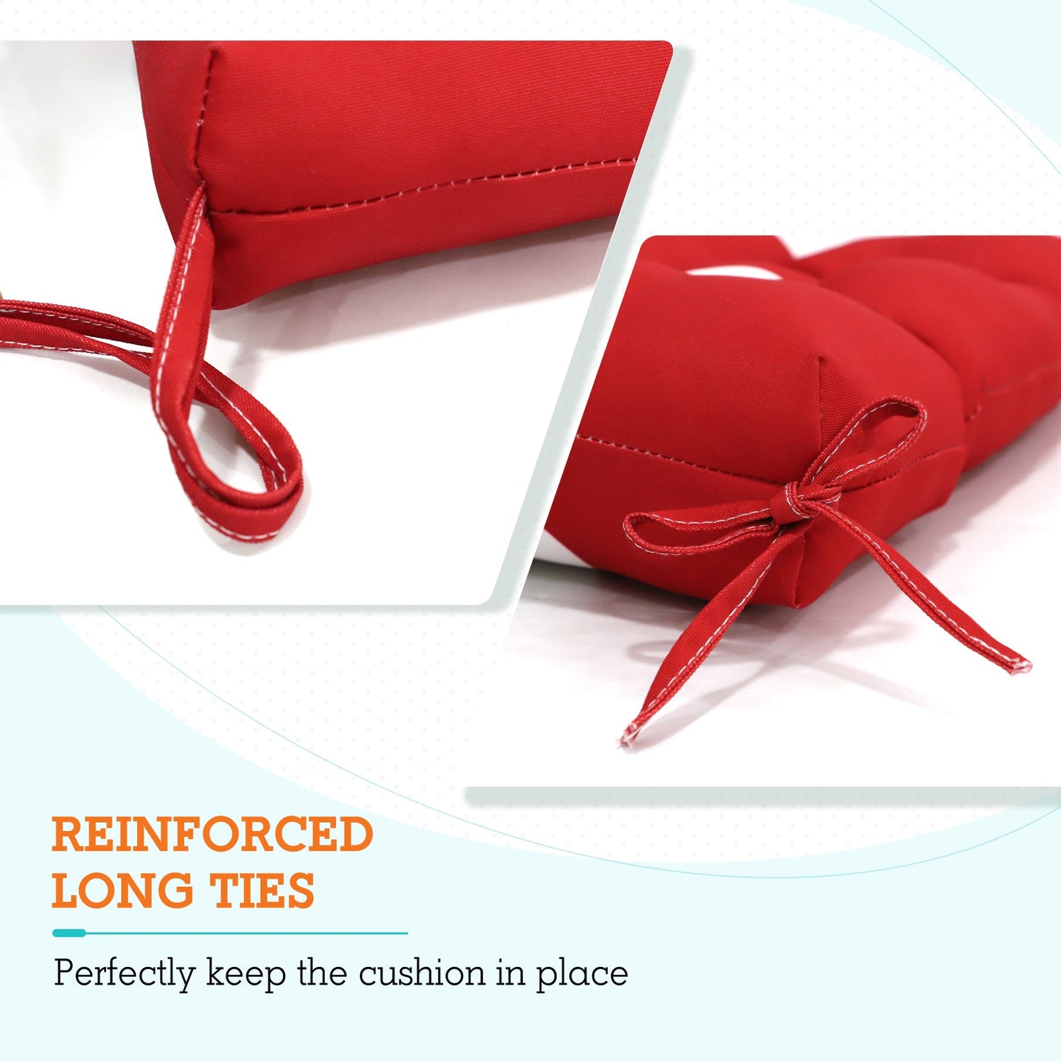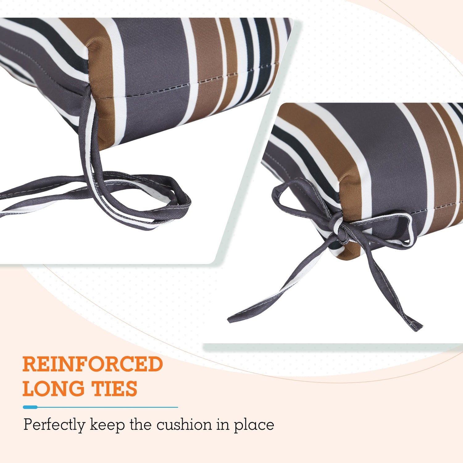 REINFORCED TIES: Features four long ties that help keep the cushion safely attached to furniture and keep the cushion in place. It is recommended to store or cover it when not in use to maintain the product.