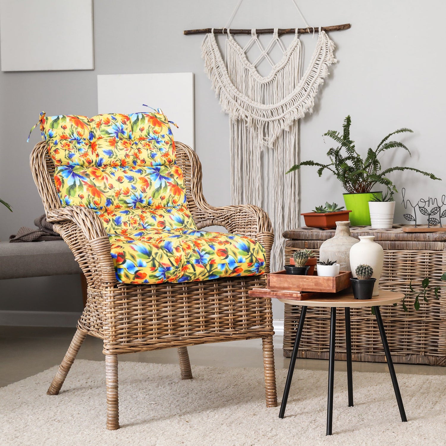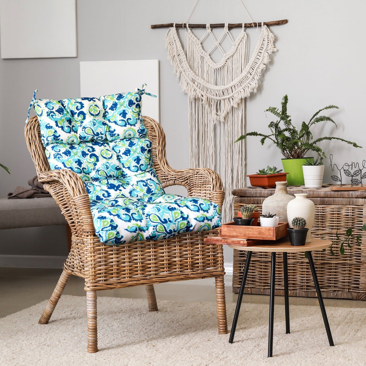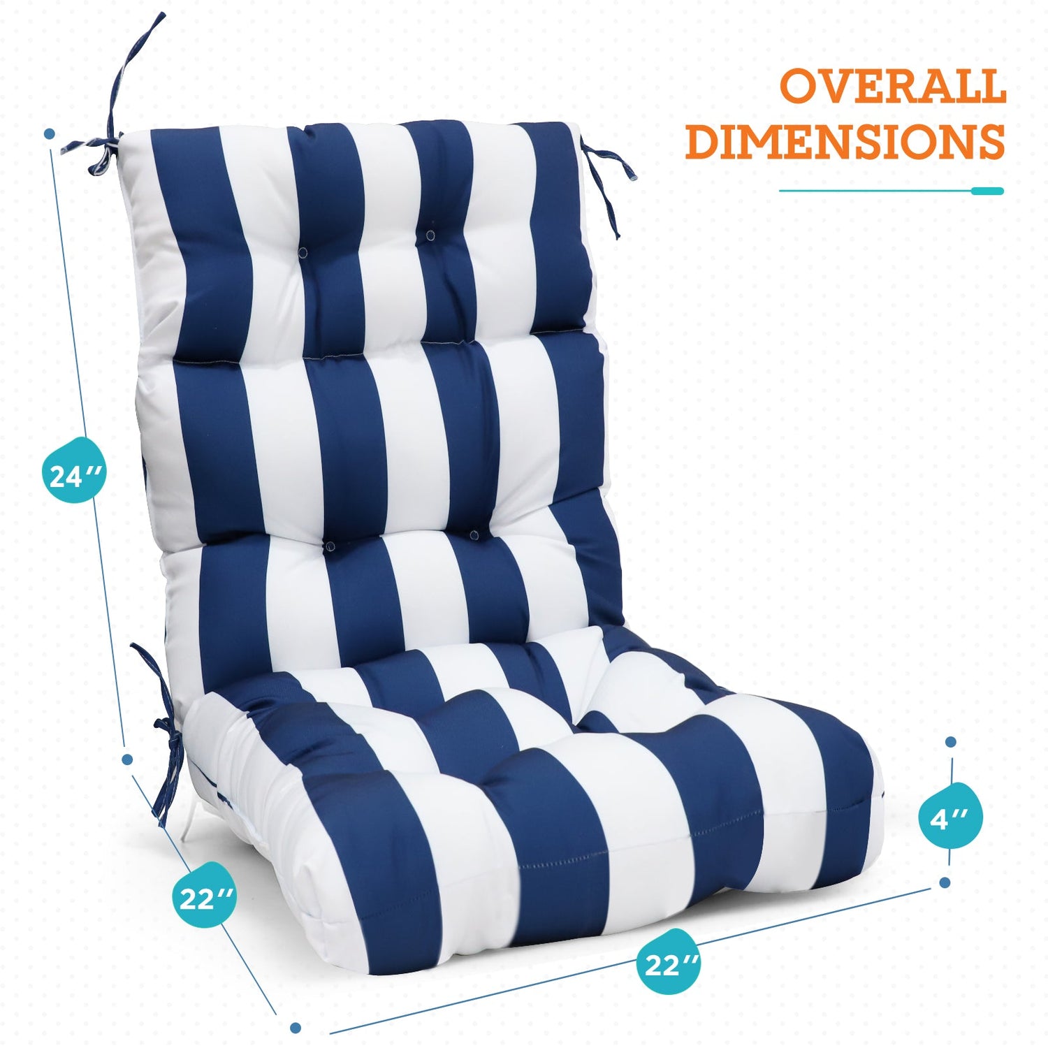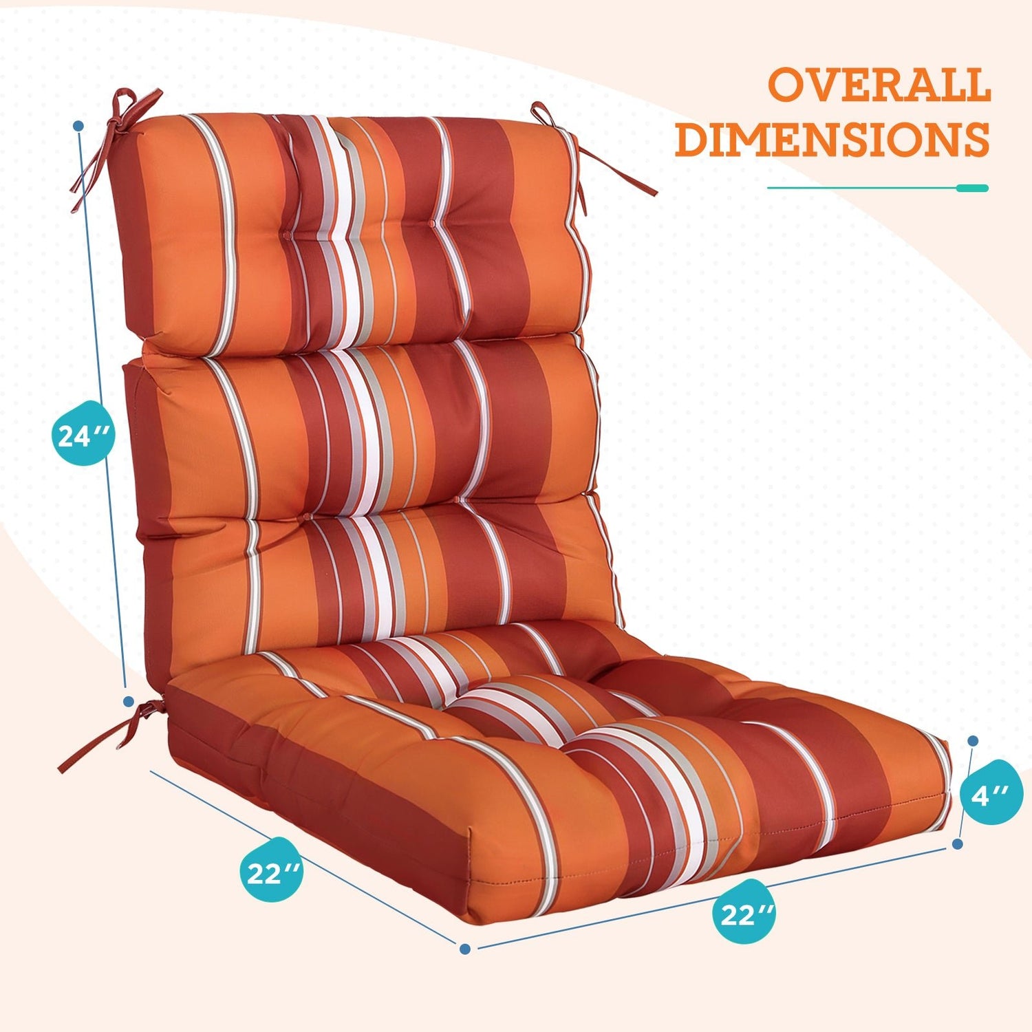 REINFORCED TIES: Features four long ties that help keep the cushion safely attached to furniture and keep the cushion in place. It is recommended to store or cover it when not in use to maintain the product.