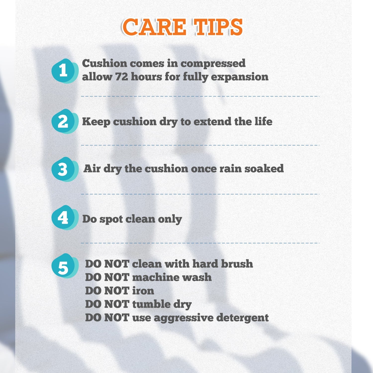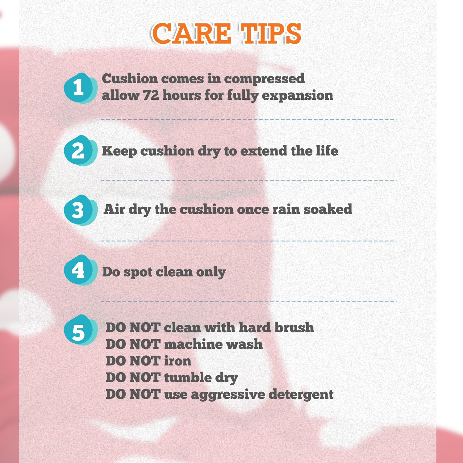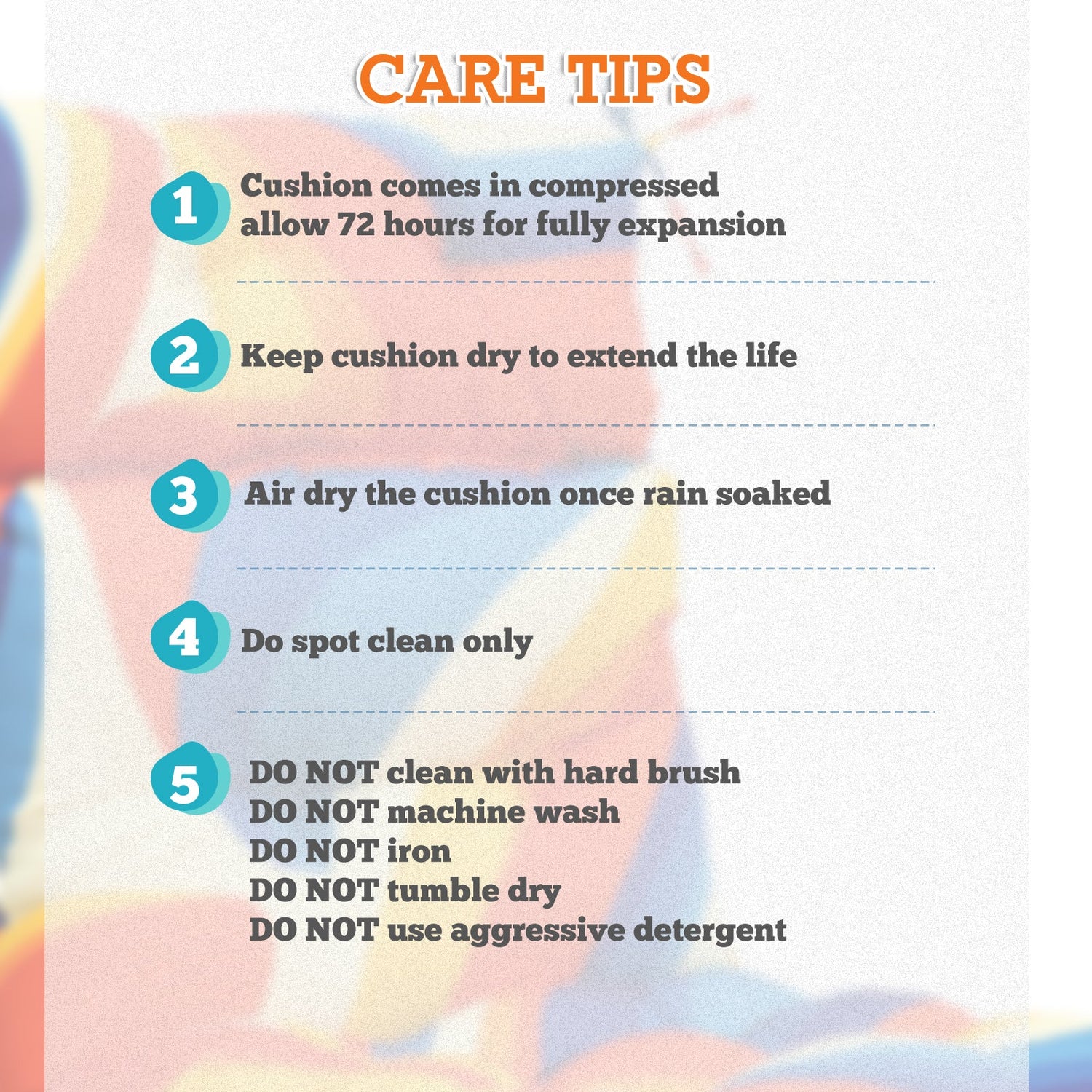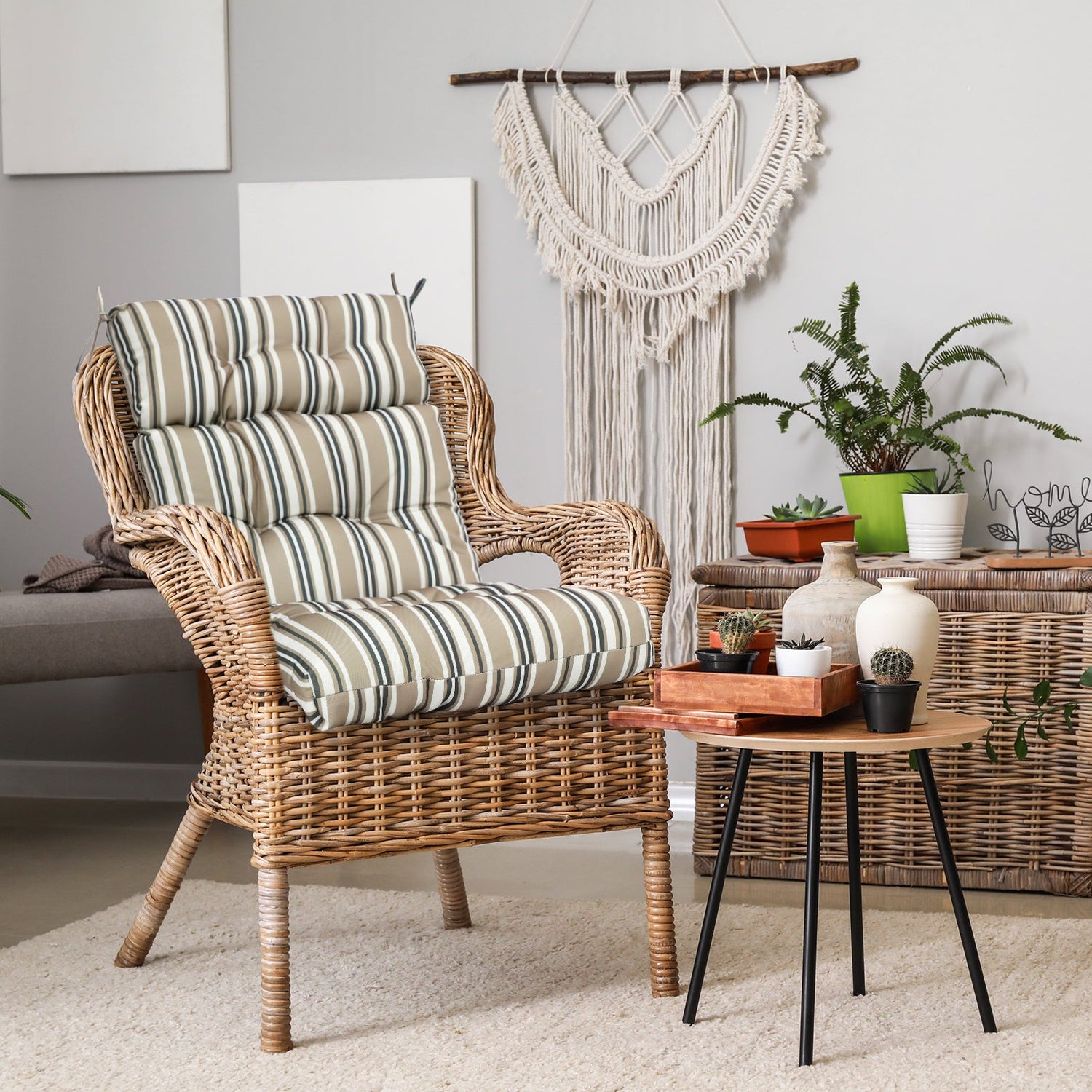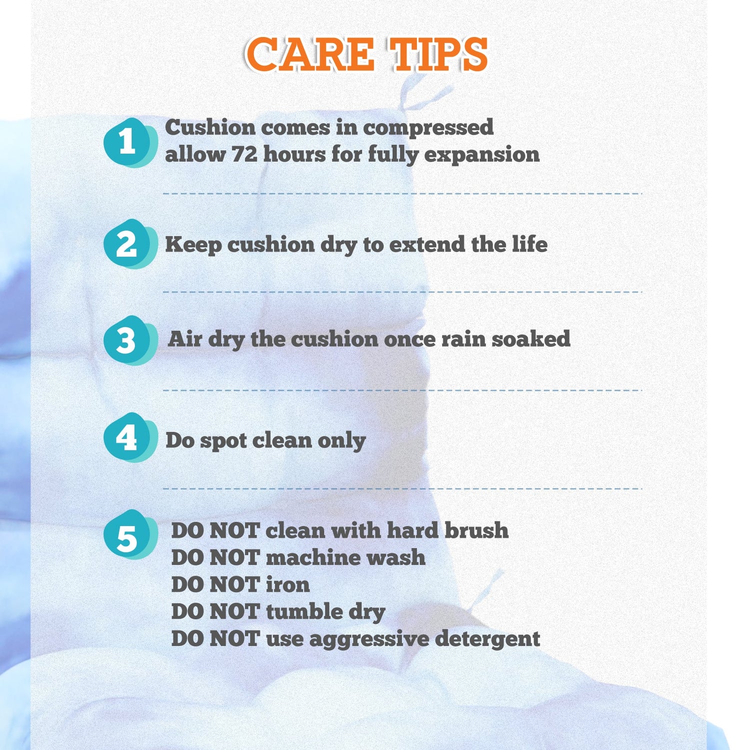 REINFORCED TIES: Features four long ties that help keep the cushion safely attached to furniture and keep the cushion in place. It is recommended to store or cover it when not in use to maintain the product.