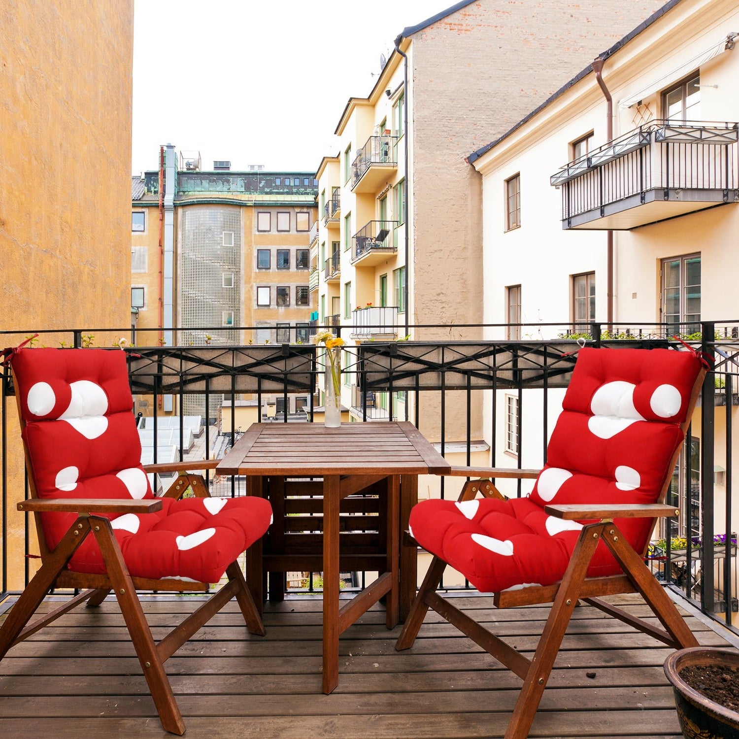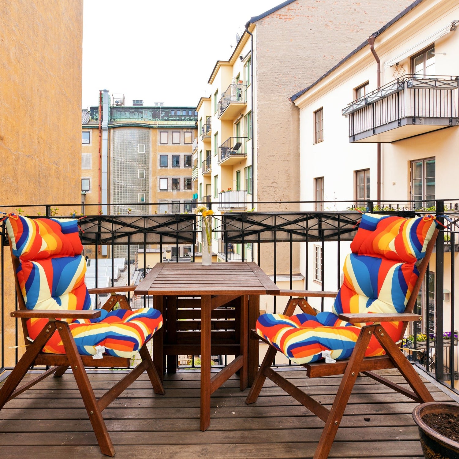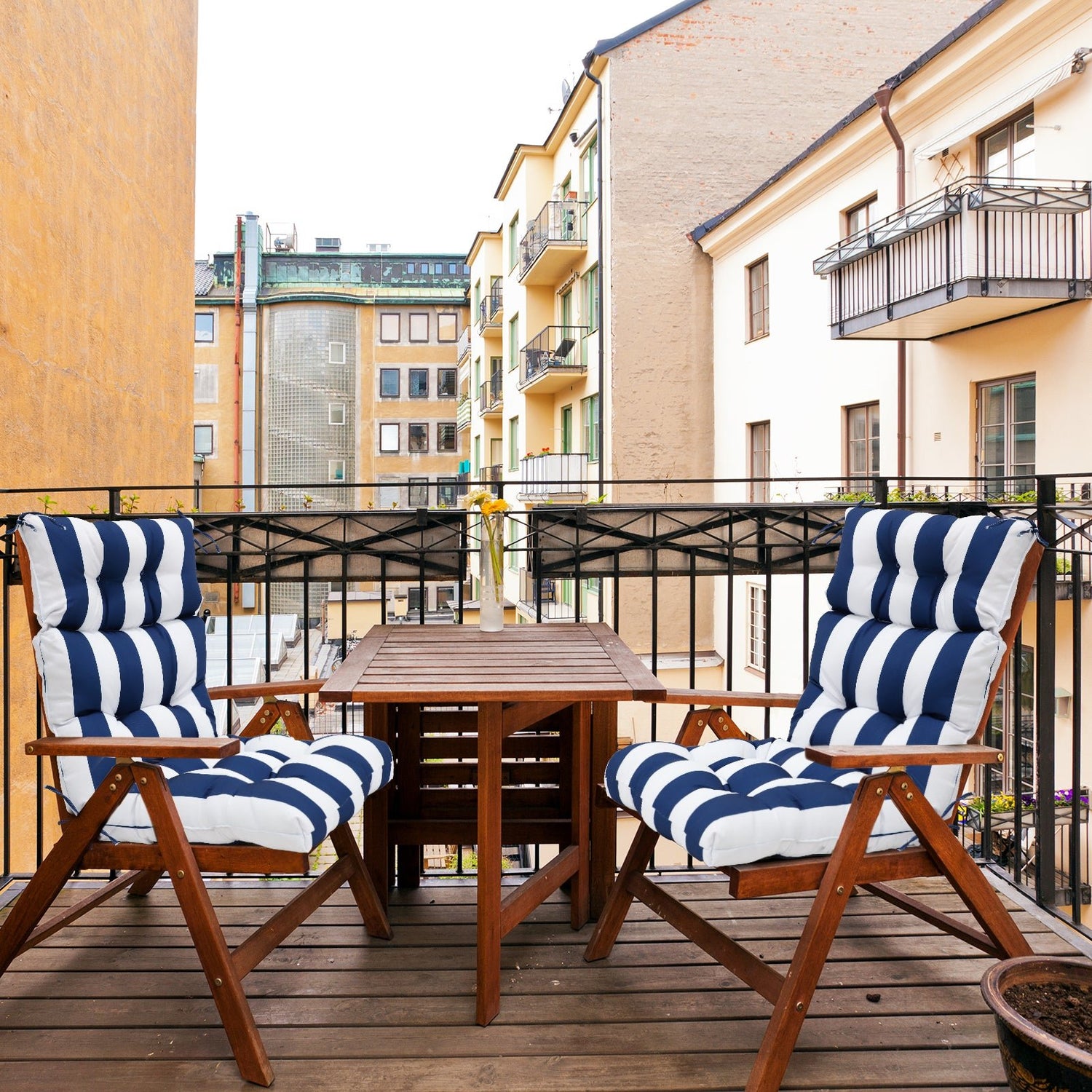 Tufted Outdoor/Indoor High Back Patio Chair Cushion, Set of 2, 46'' x 22''
