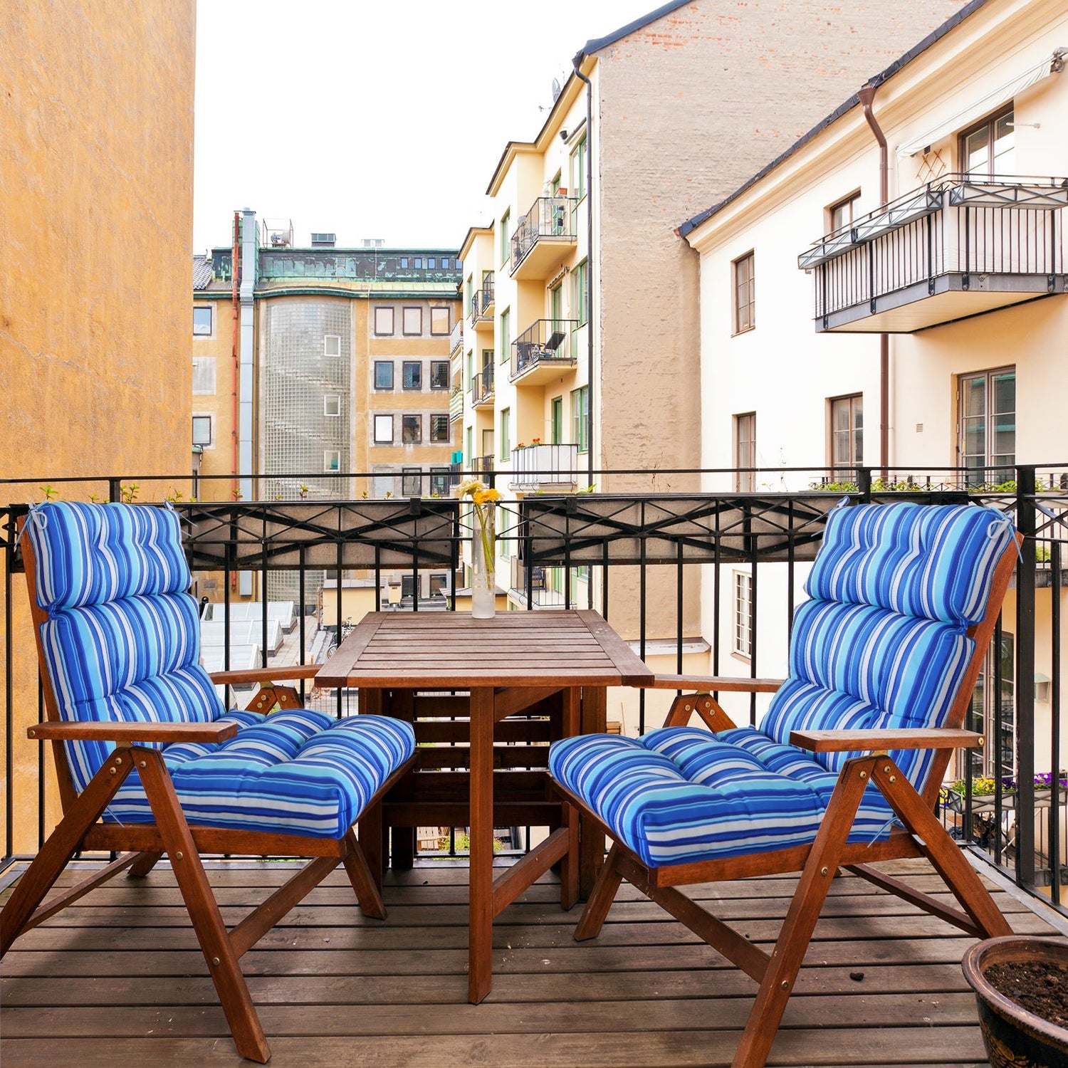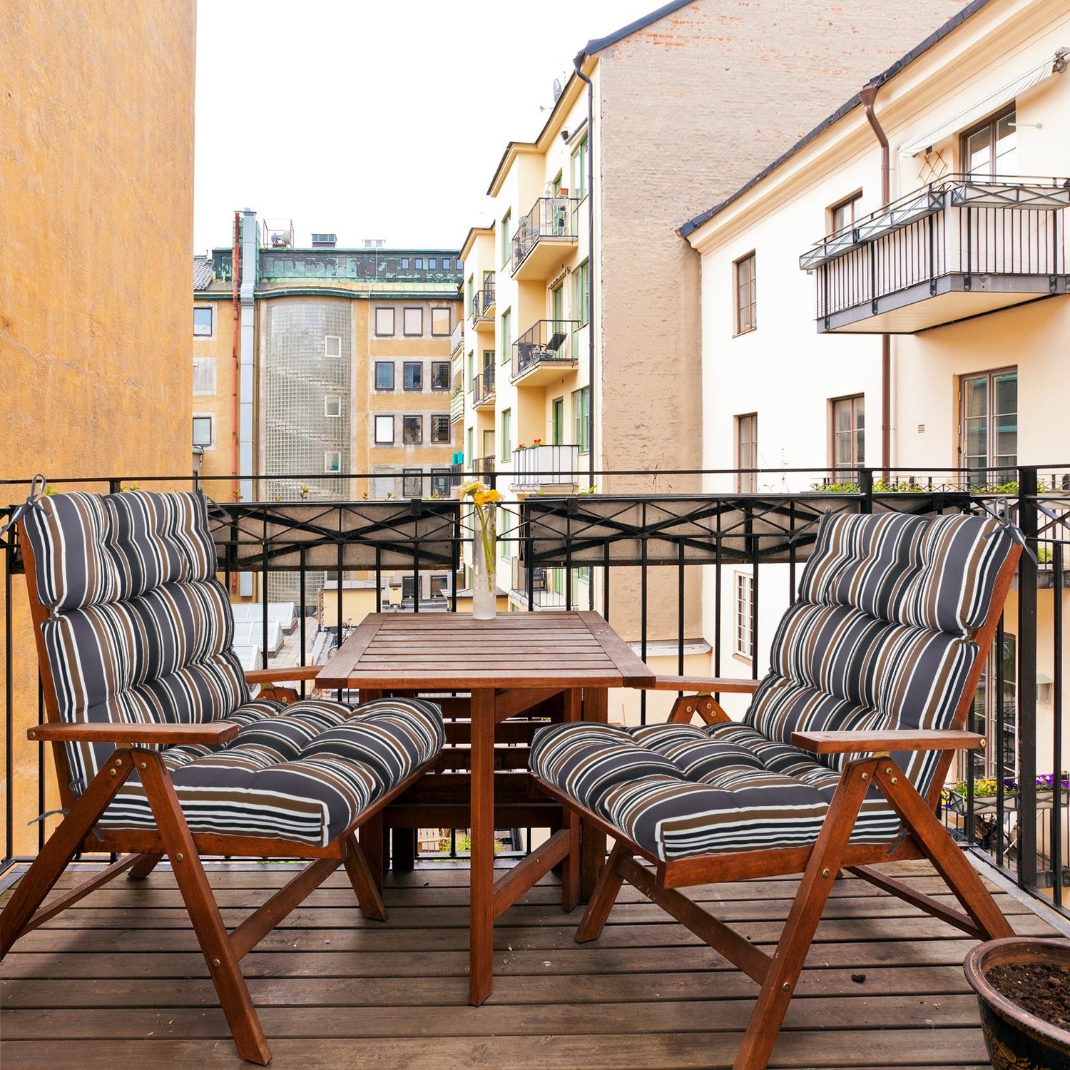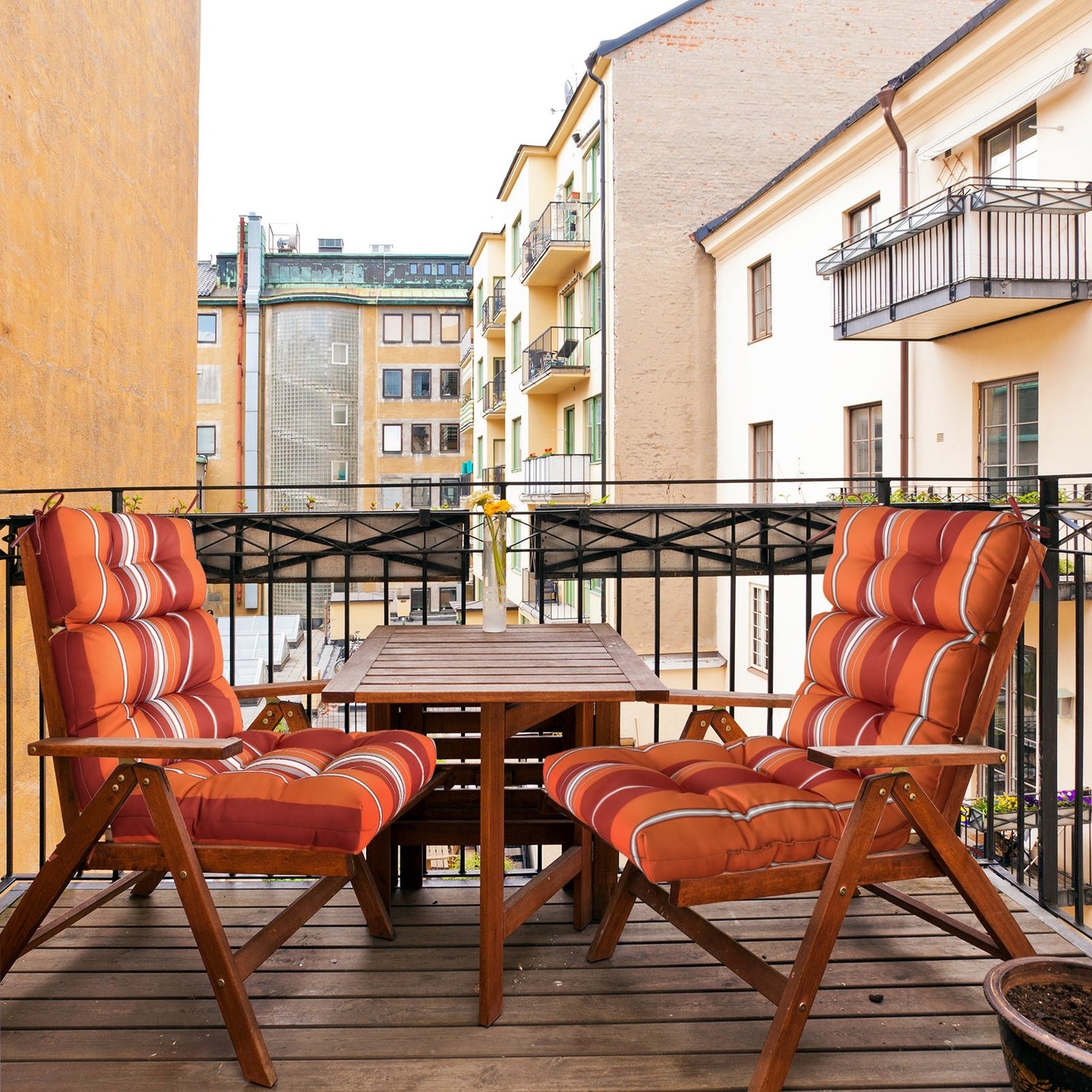 Tufted Outdoor/Indoor High Back Patio Chair Cushion, Set of 2, 46'' x 22''