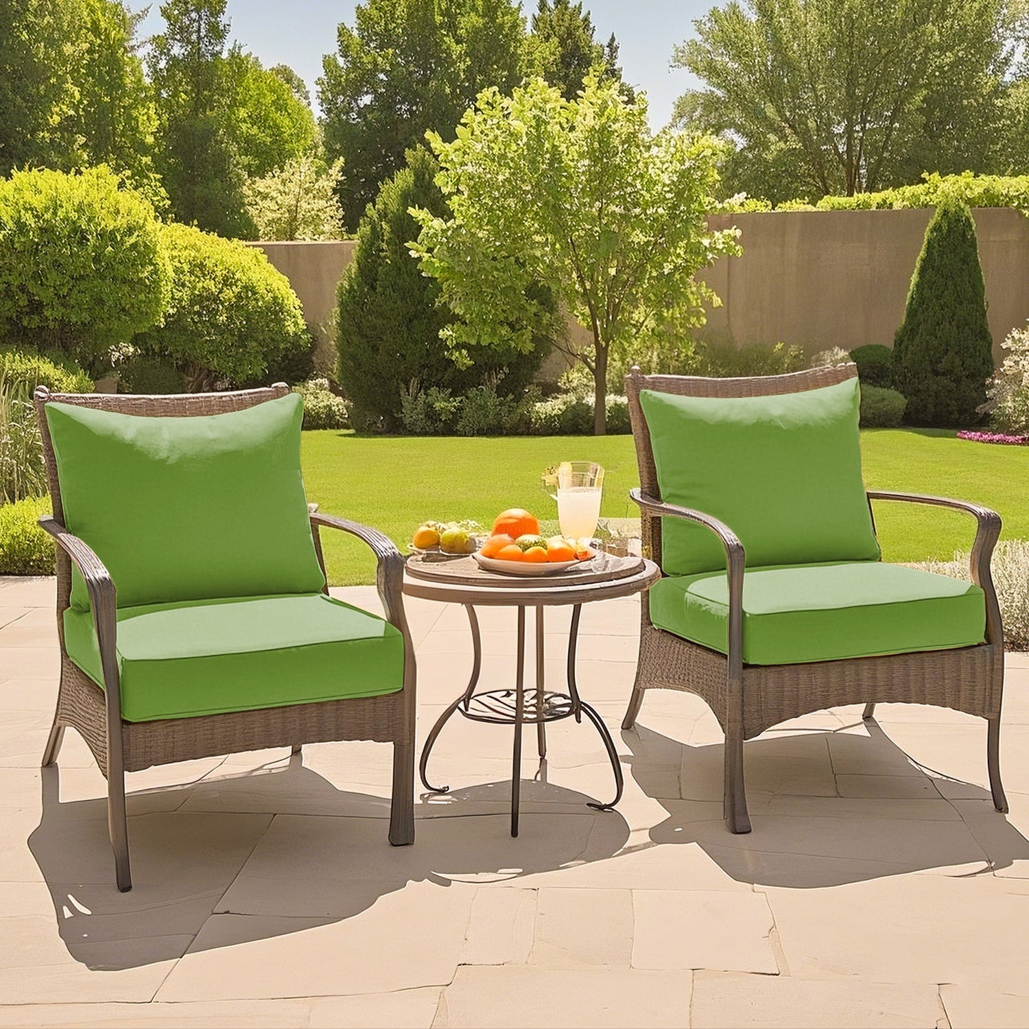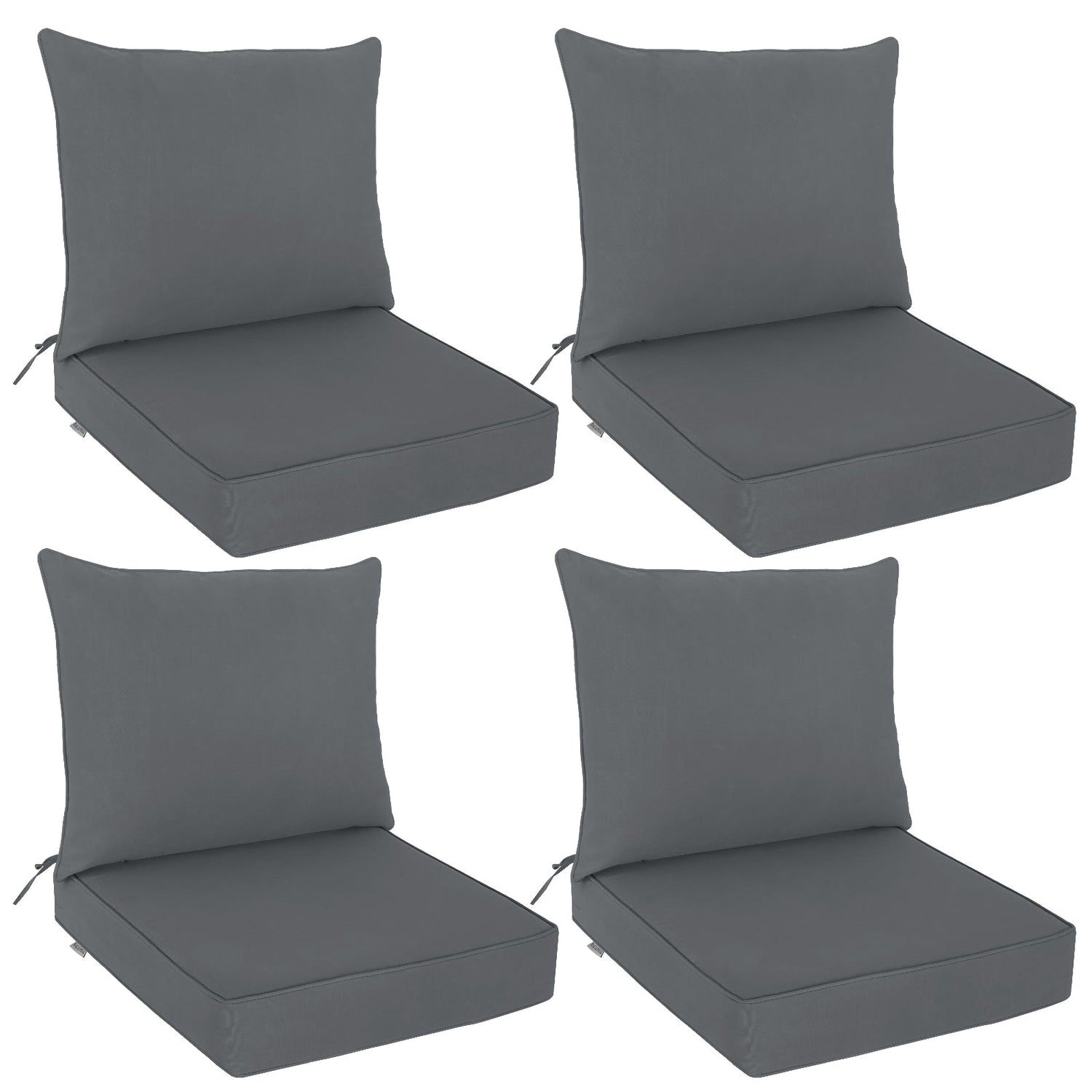 2-PIECE SET CUSHION: This EAGLE PEAK deep seat cushion set (pack of 4) comes with four 25" W x 25" D seat cushions, and four 28" W x 22" H back cushions.
