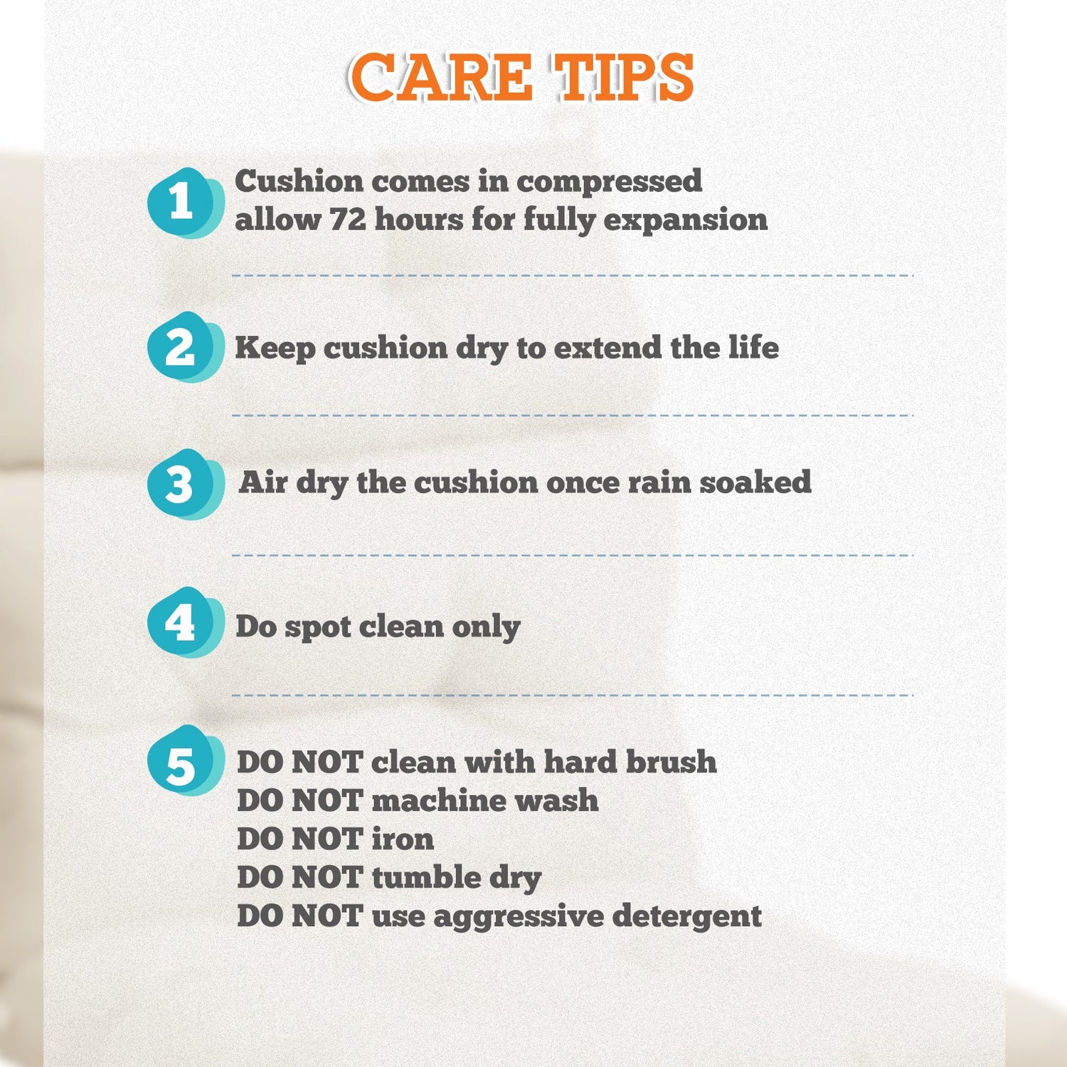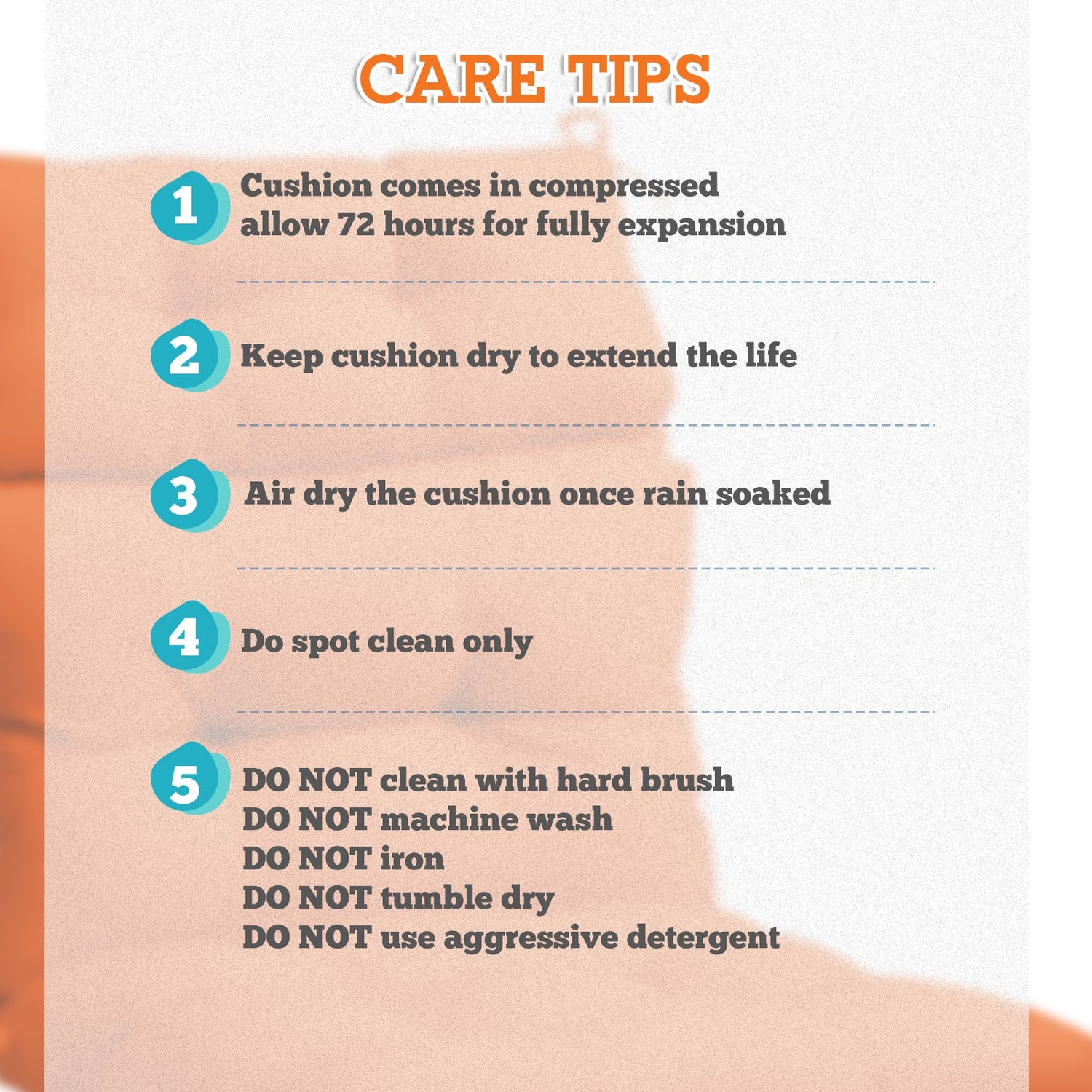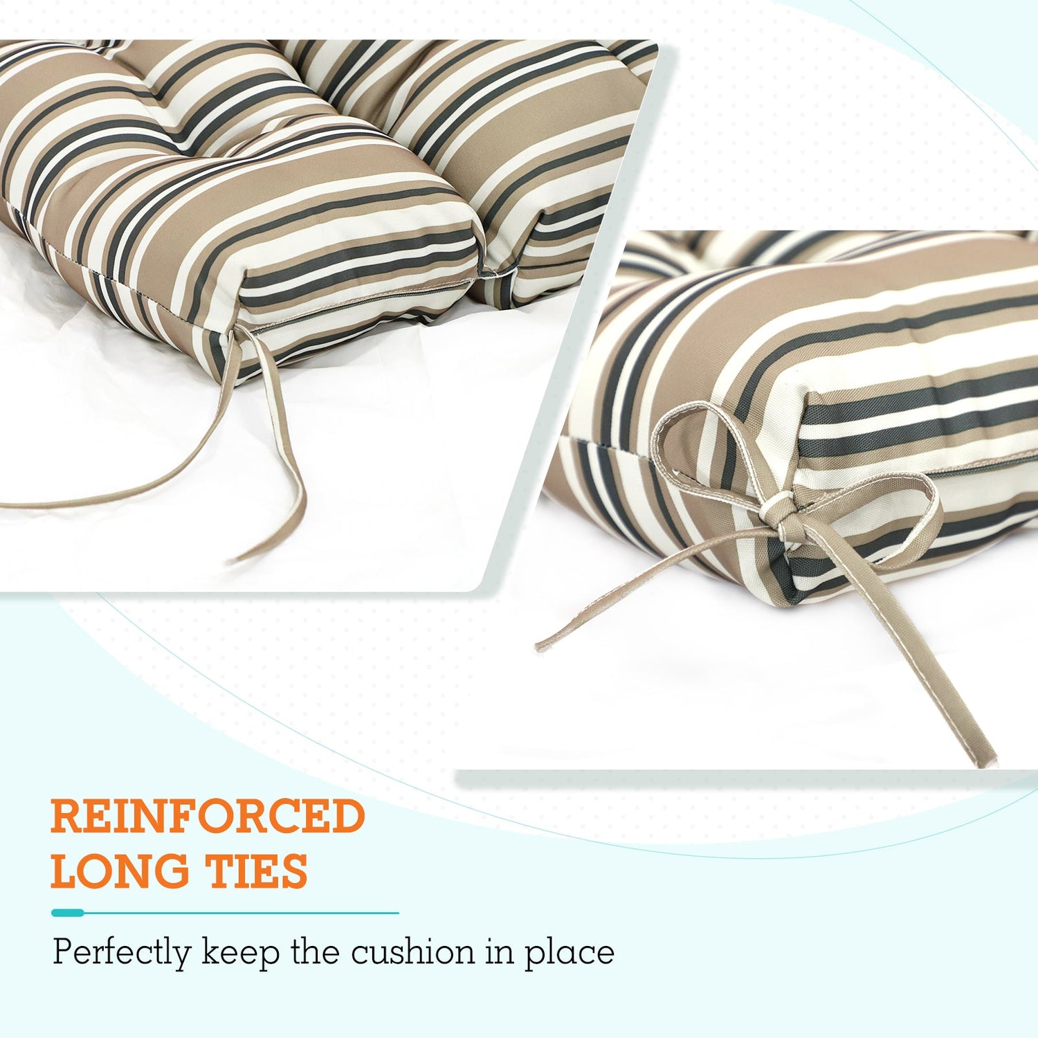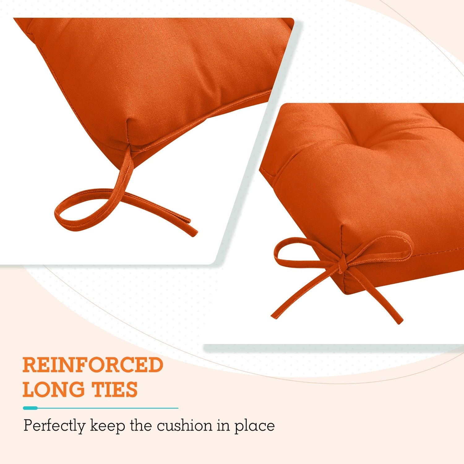 REINFORCED TIES: Features four long ties that help keep the cushion safely attached to furniture and keep the cushion in place. It is recommended to store or cover it when not in use to maintain the product.