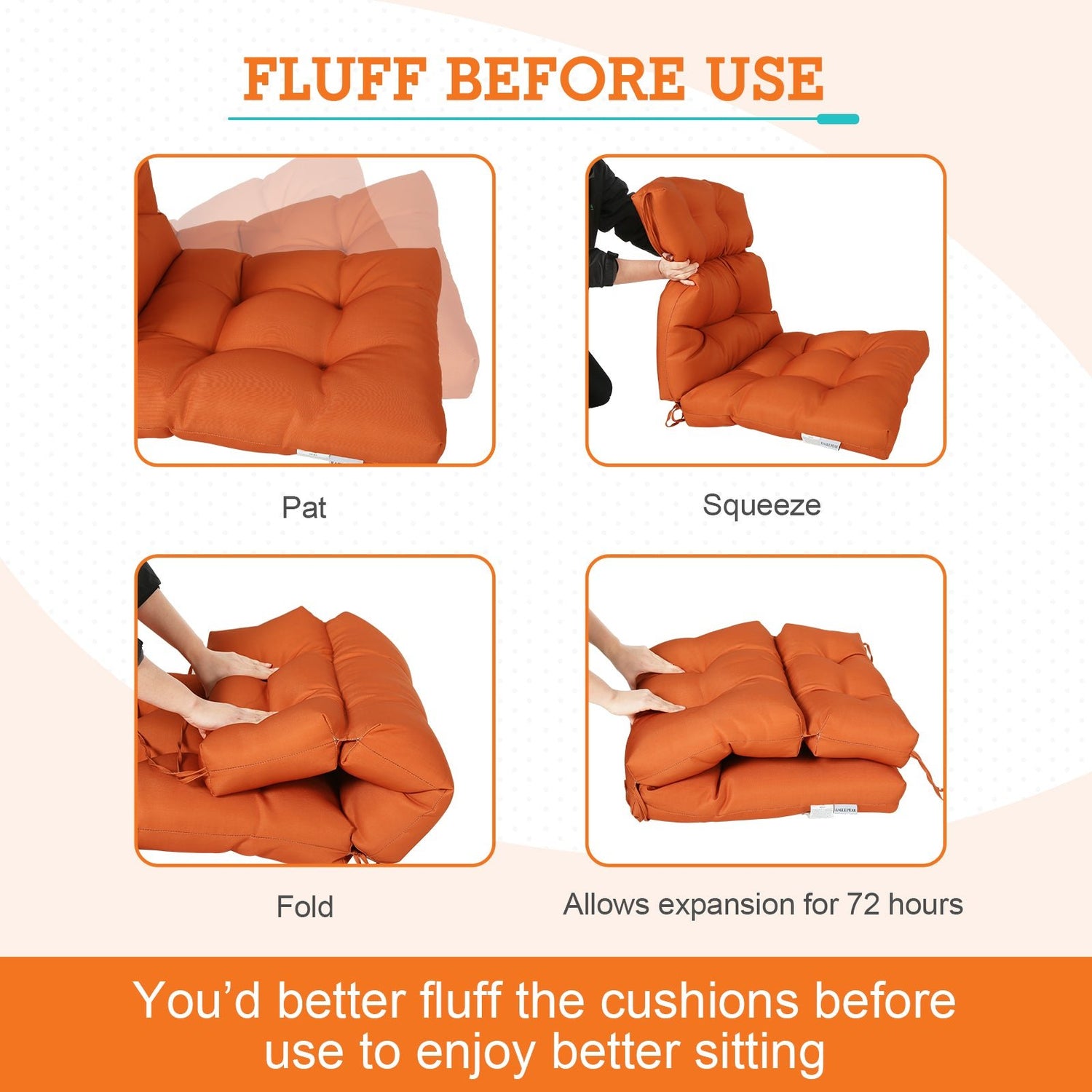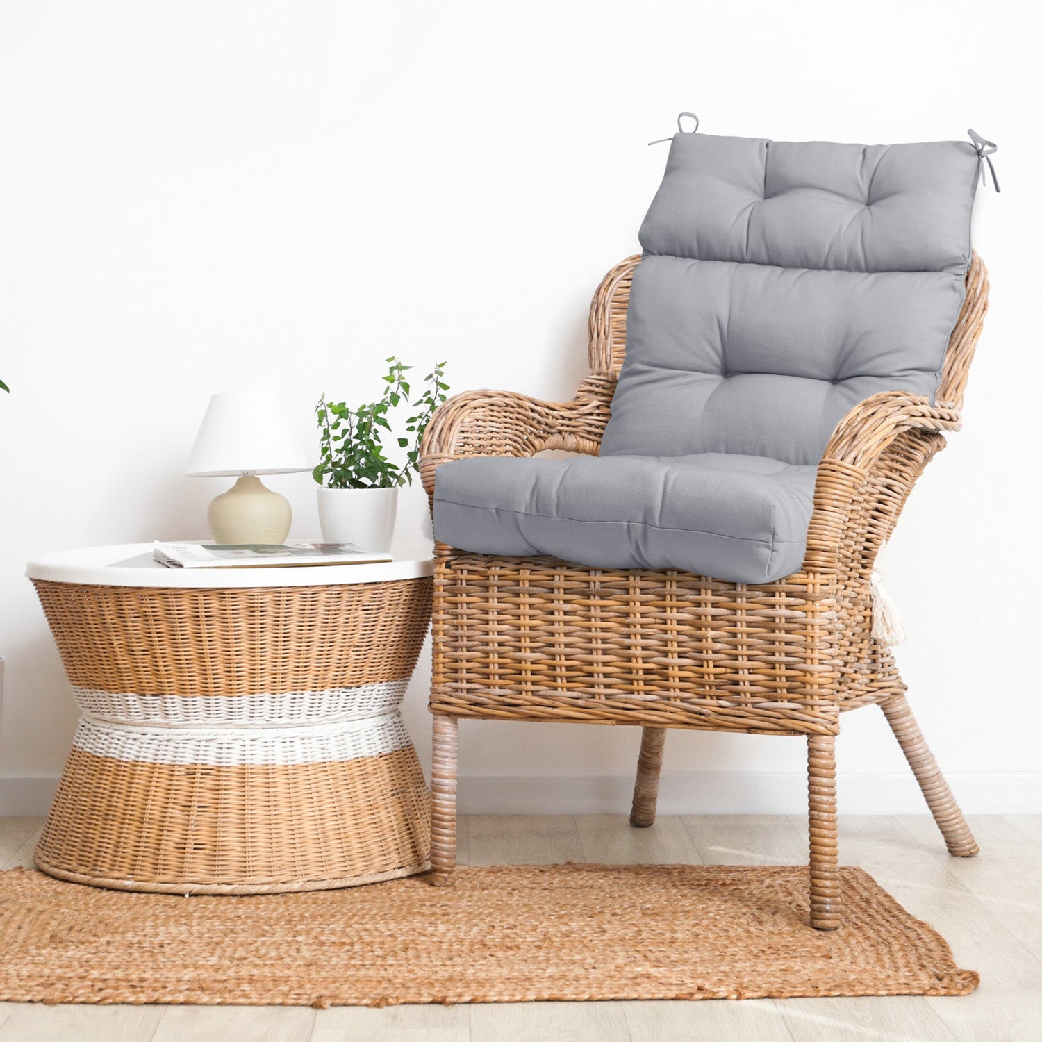 QUALITY FABRIC: The EAGLE PEAK outdoor tufted high back patio chair cushion (set of 4) is made of superior water-repellent polyester fabric, perfect for your wicker seat, dining chairs, bench, porch swing or porch rockers. This is an ideal cushion for both indoor and outdoor use.