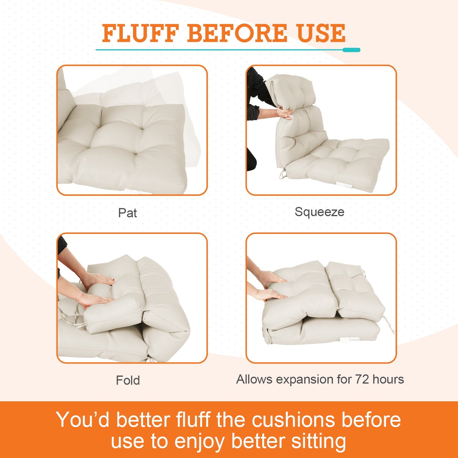 MEASUREMENTS: Please check the size if match your chair first. The seat part measures L 22" x W 22" x thick 4", back part measures L 24" x W 22" x thick 4". Allow up to 72 hours for fully expansion. The cushion is reversible and easy to clean. Lightly dab the fabric with mild soap and warm water, then air dry.