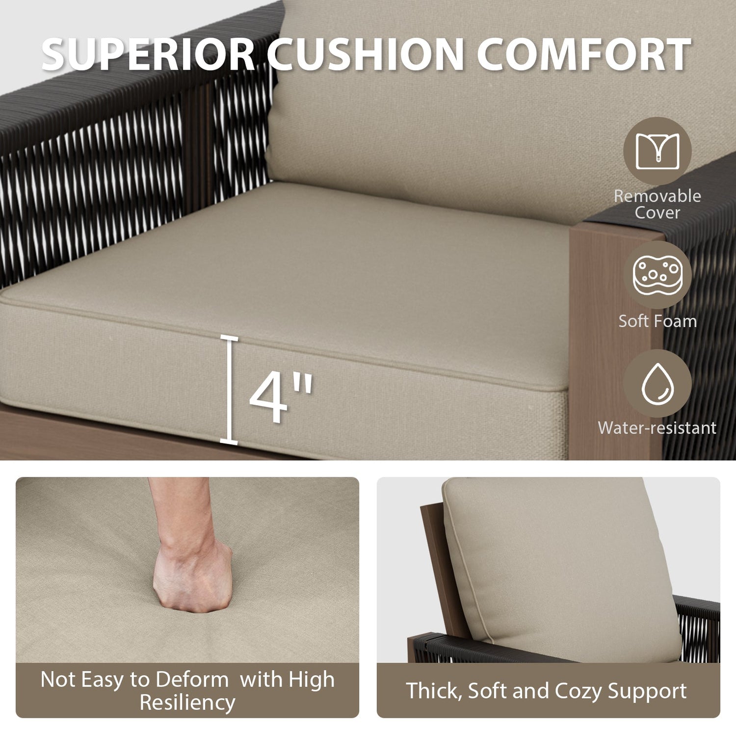 SUPERIOR CUSHION COMFORT: Generously padded with soft foam and wrapped in premium UV resistant Olefin fabric, the cushions provide a cozy, supportive feel for hours of relaxation. The covers are equipped with a convenient zipper closure for easy removal, making cleaning and maintenance a breeze.