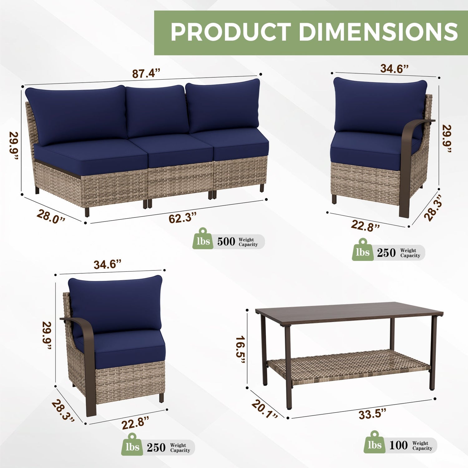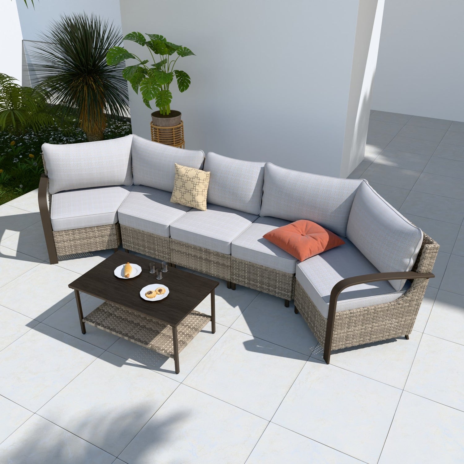 Coastal Vista Outdoor Patio Furniture Set w/ Sectional Sofas, and Coffee Table, Seats 5