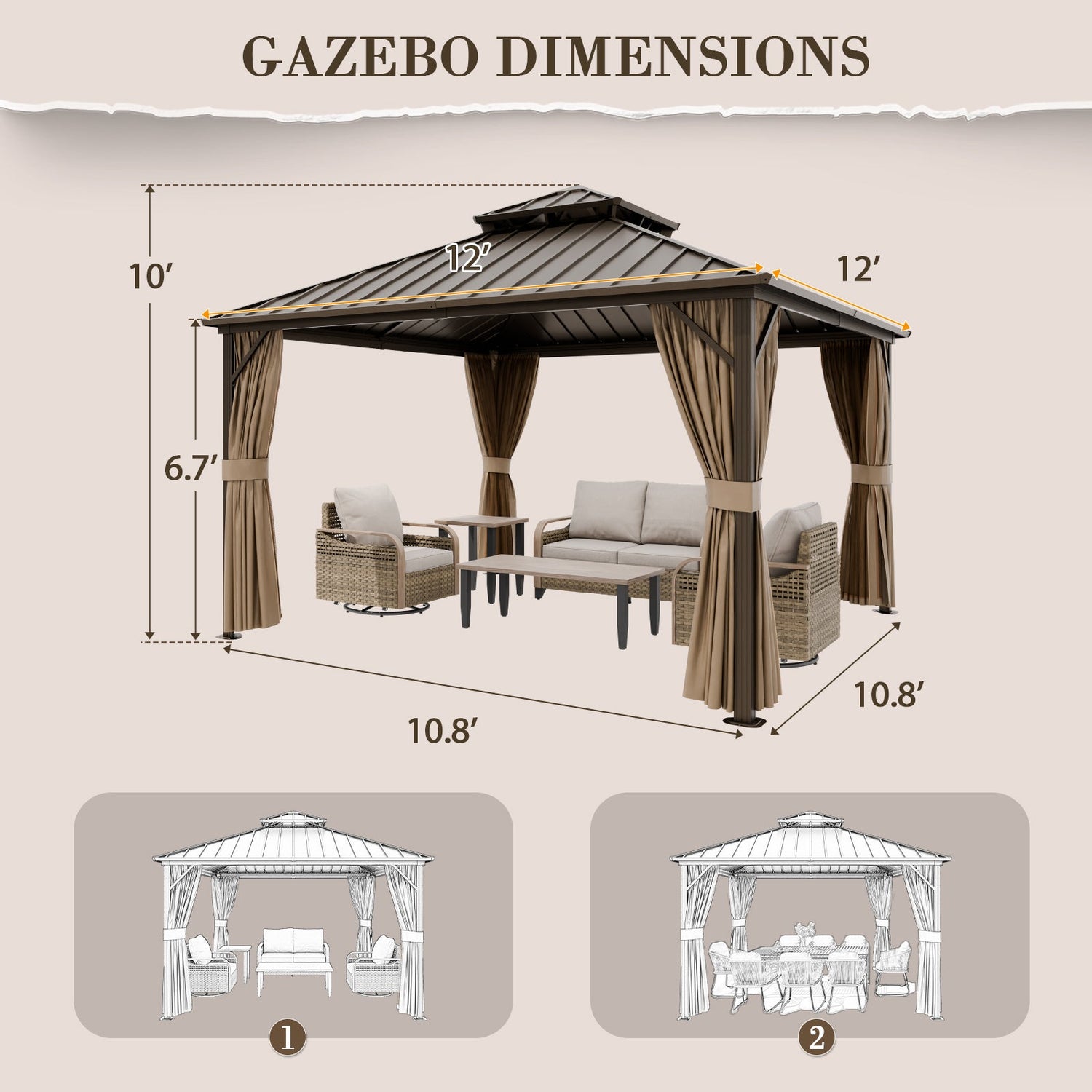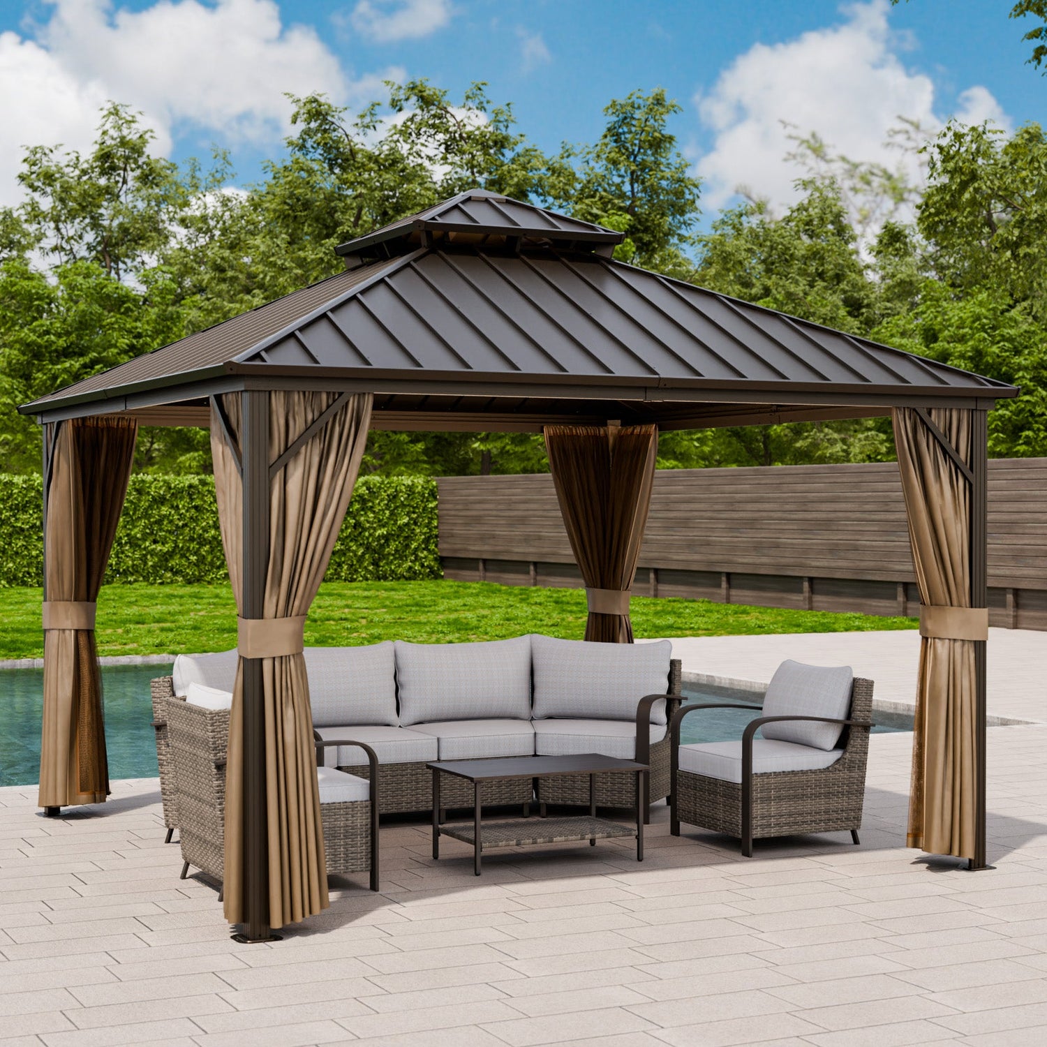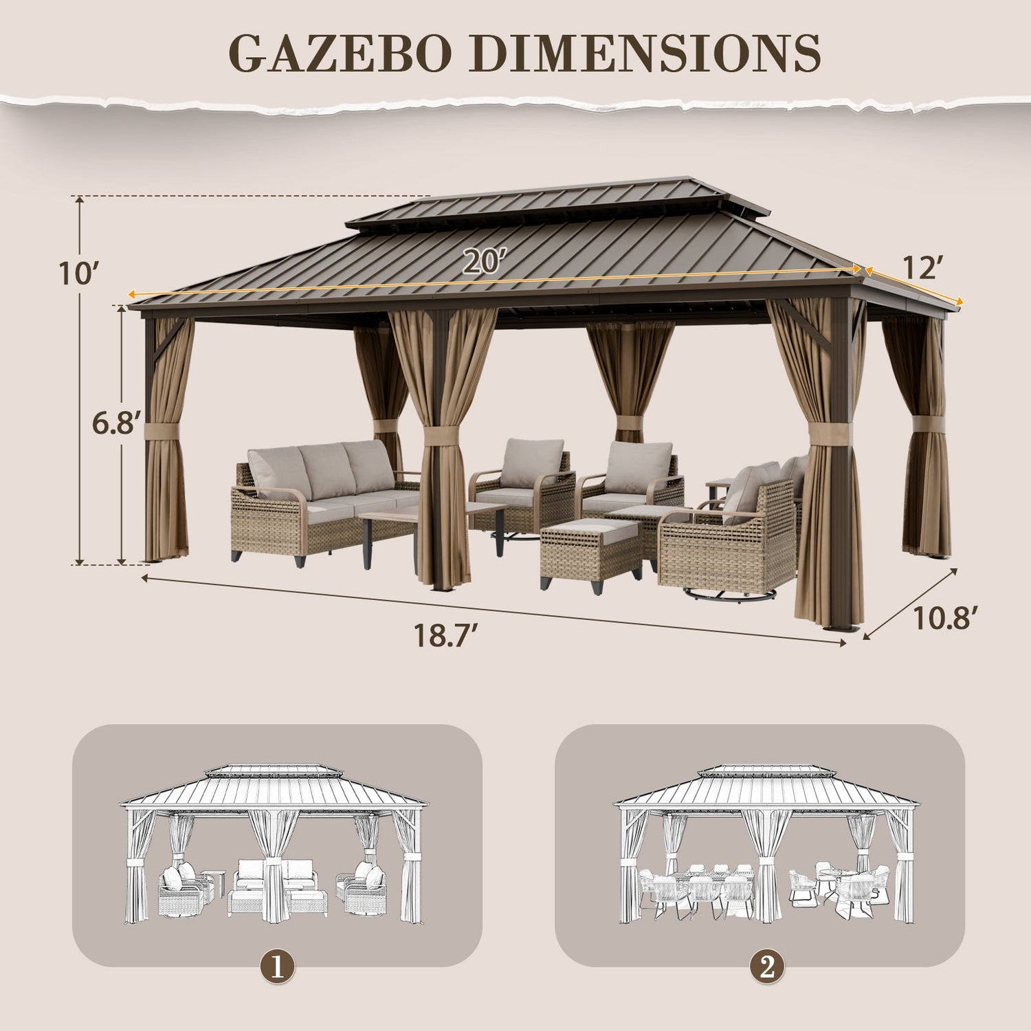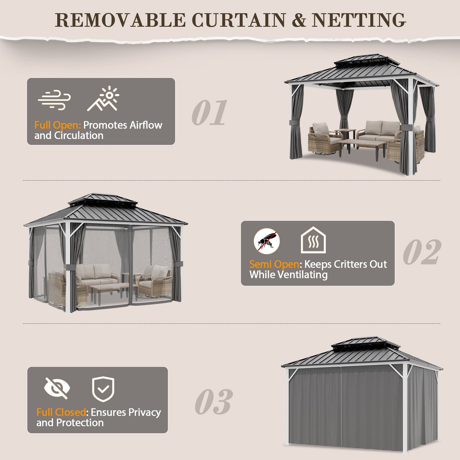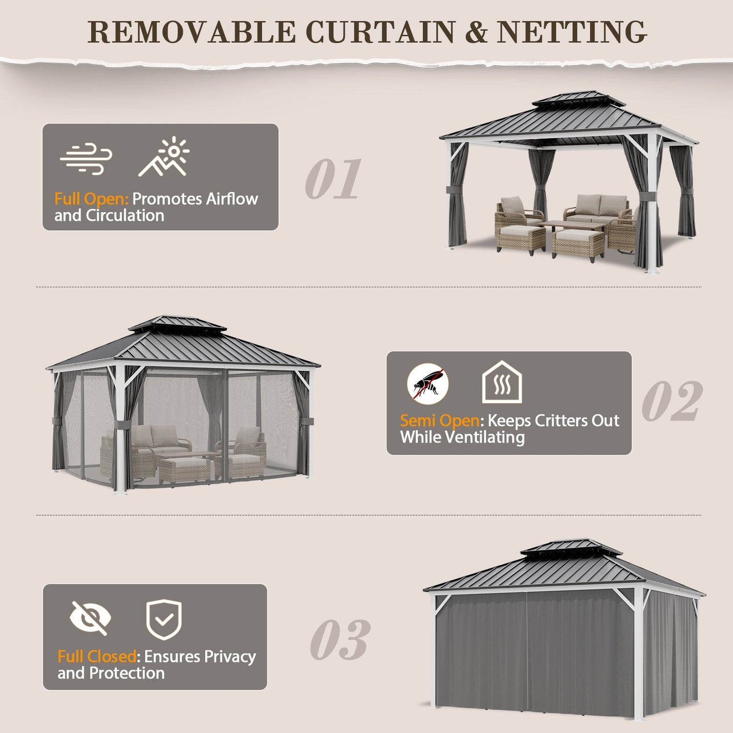 EAGLE PEAK 12x10/12x12/12x14/12x16/12x18/12x20 Hardtop Gazebo, Galvanized Steel Double Roof with Aluminum Frame, Outdoor Pavilion with Netting and Curtains for Patio, Deck, Lawn and Garden