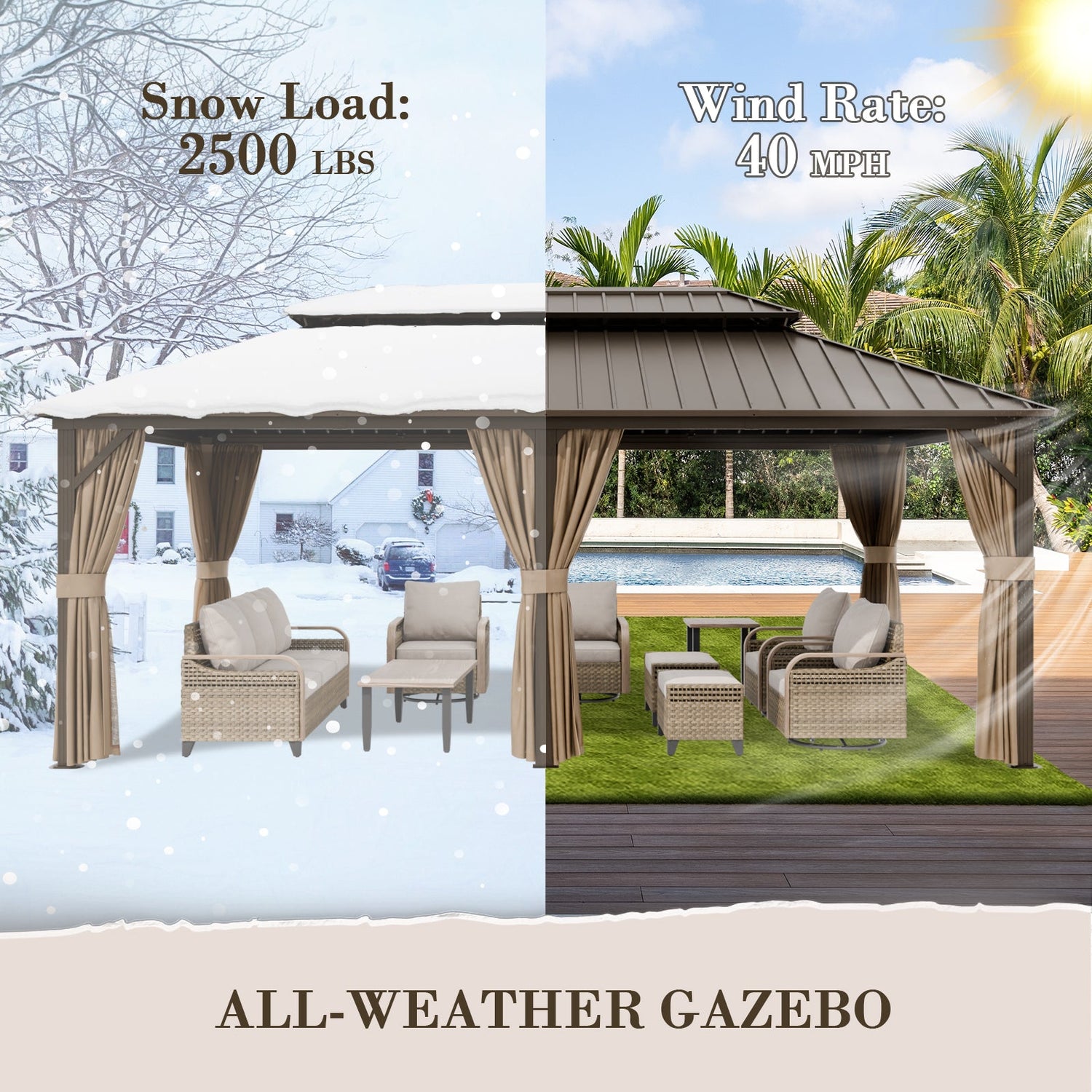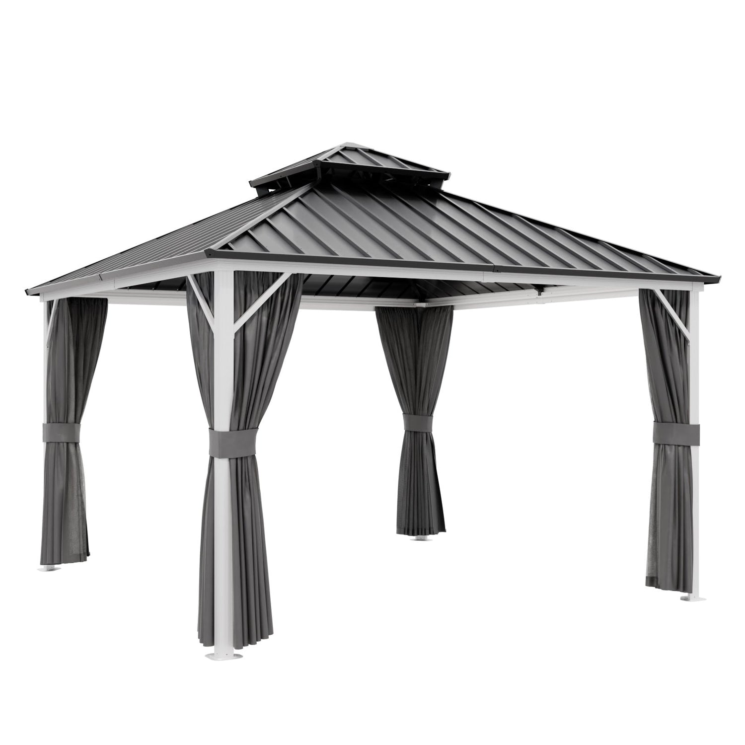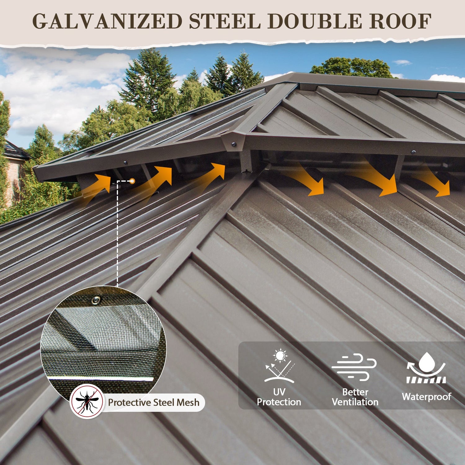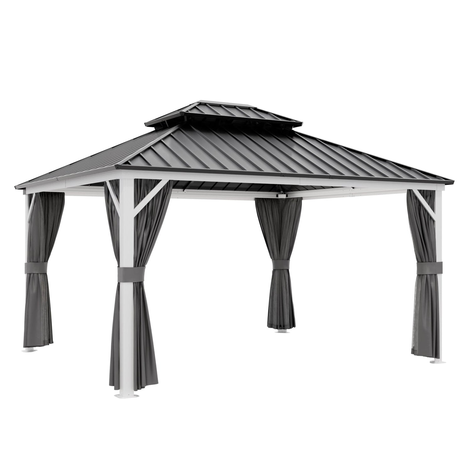 12x10/12x12/12x14/12x16/12x18/12x20 Hardtop Gazebo, Galvanized Steel Double Roof with Aluminum Frame