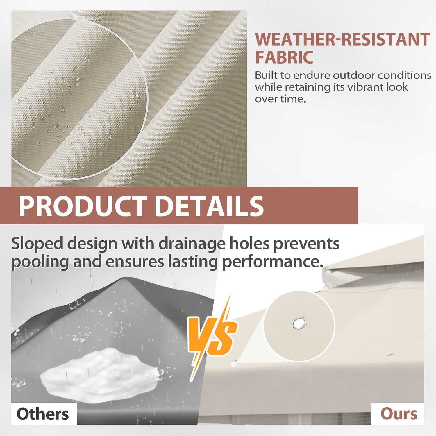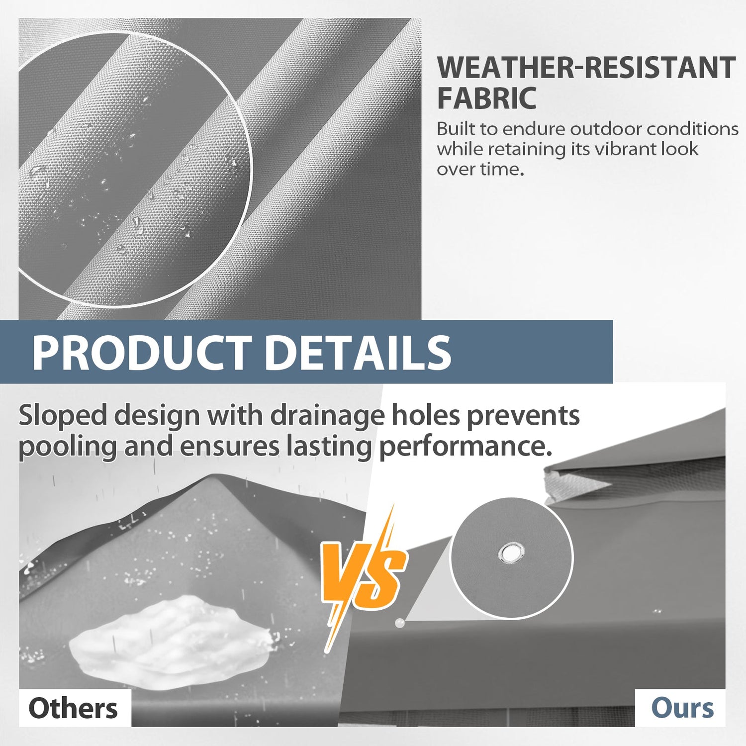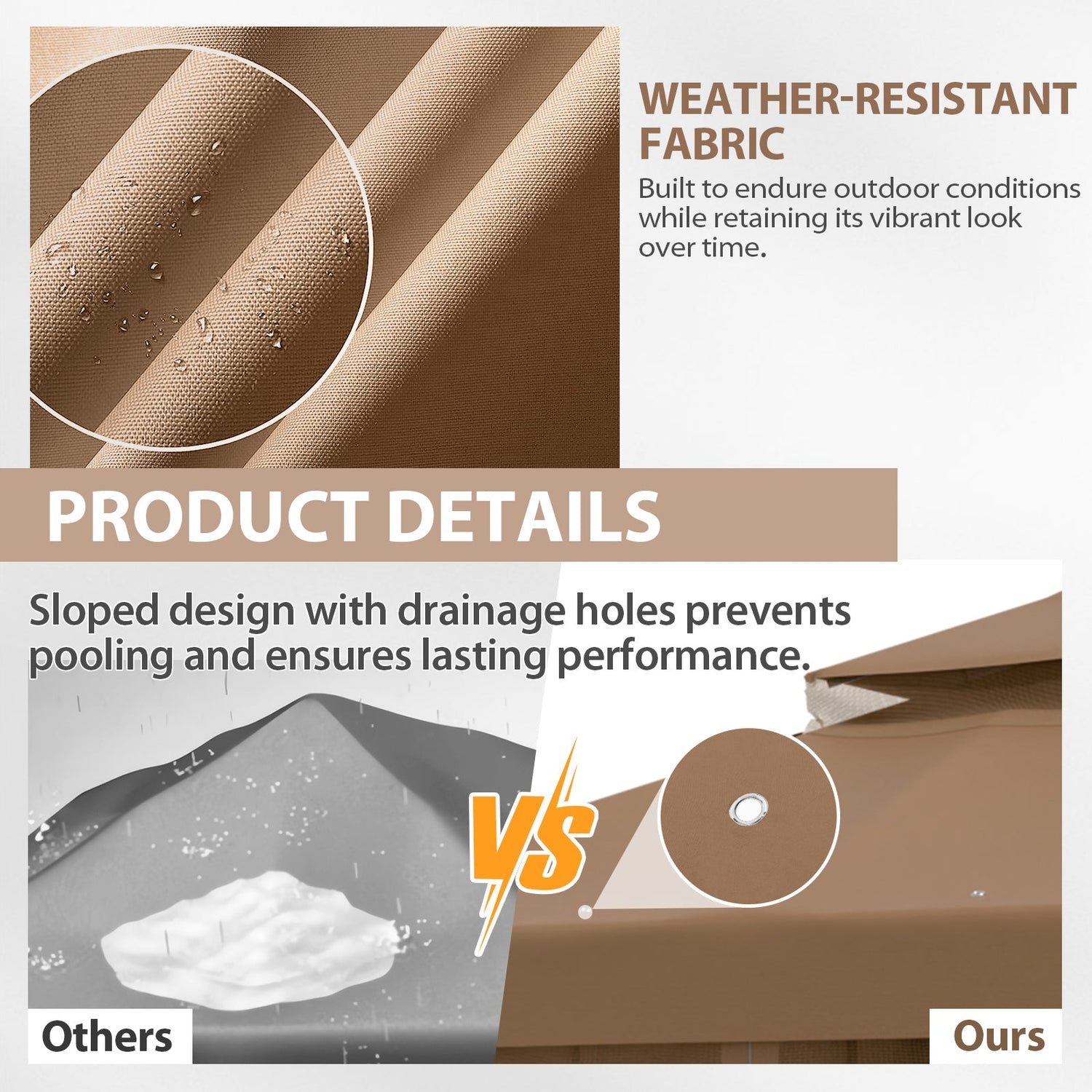 UPGRADED FABRIC: Our gazebo canopy is crafted from high-quality polyester fabric that is tear-resistant and provides UPF 50+ protection against harmful UV rays. The heavier polyester fabric is perfect for providing shade or rain protection.