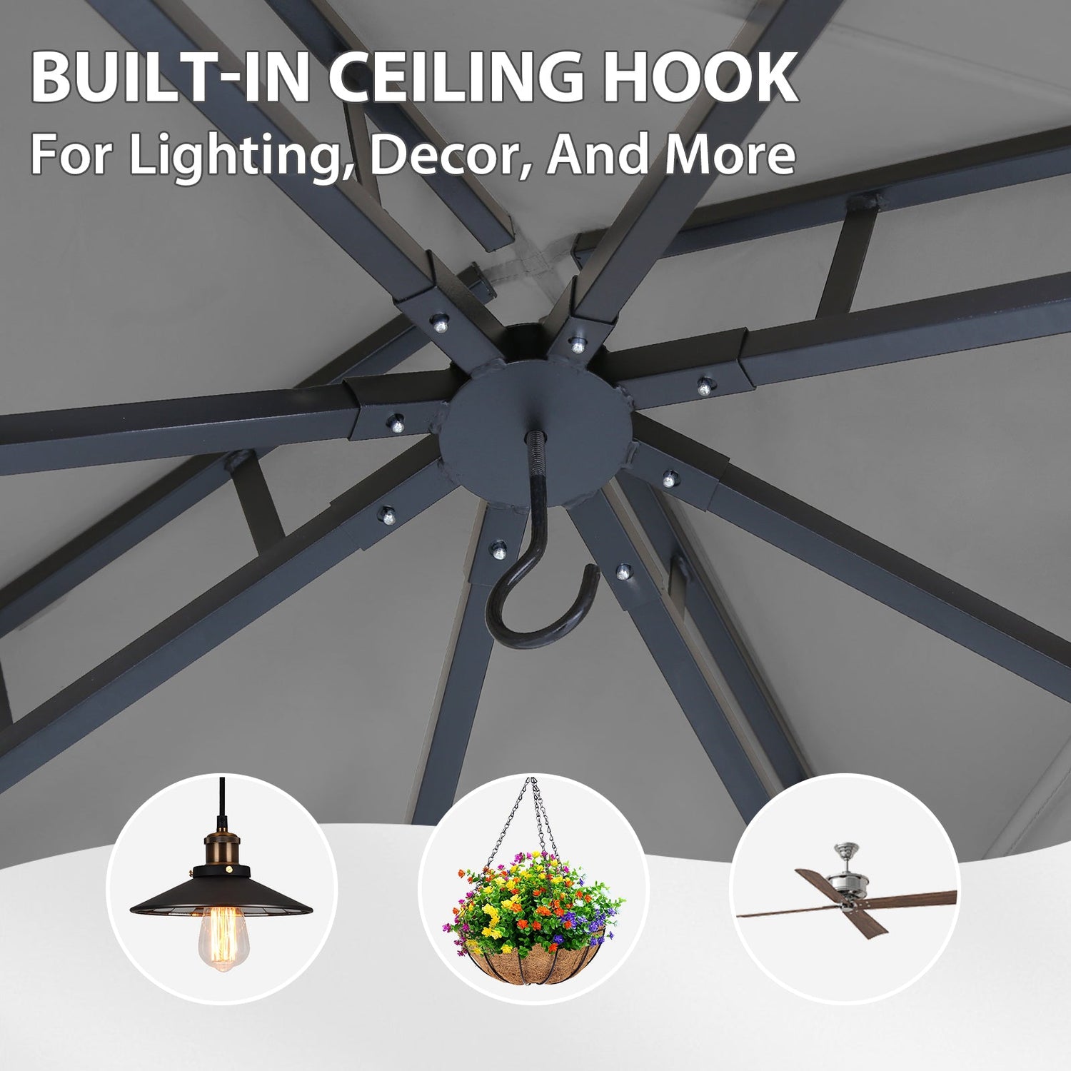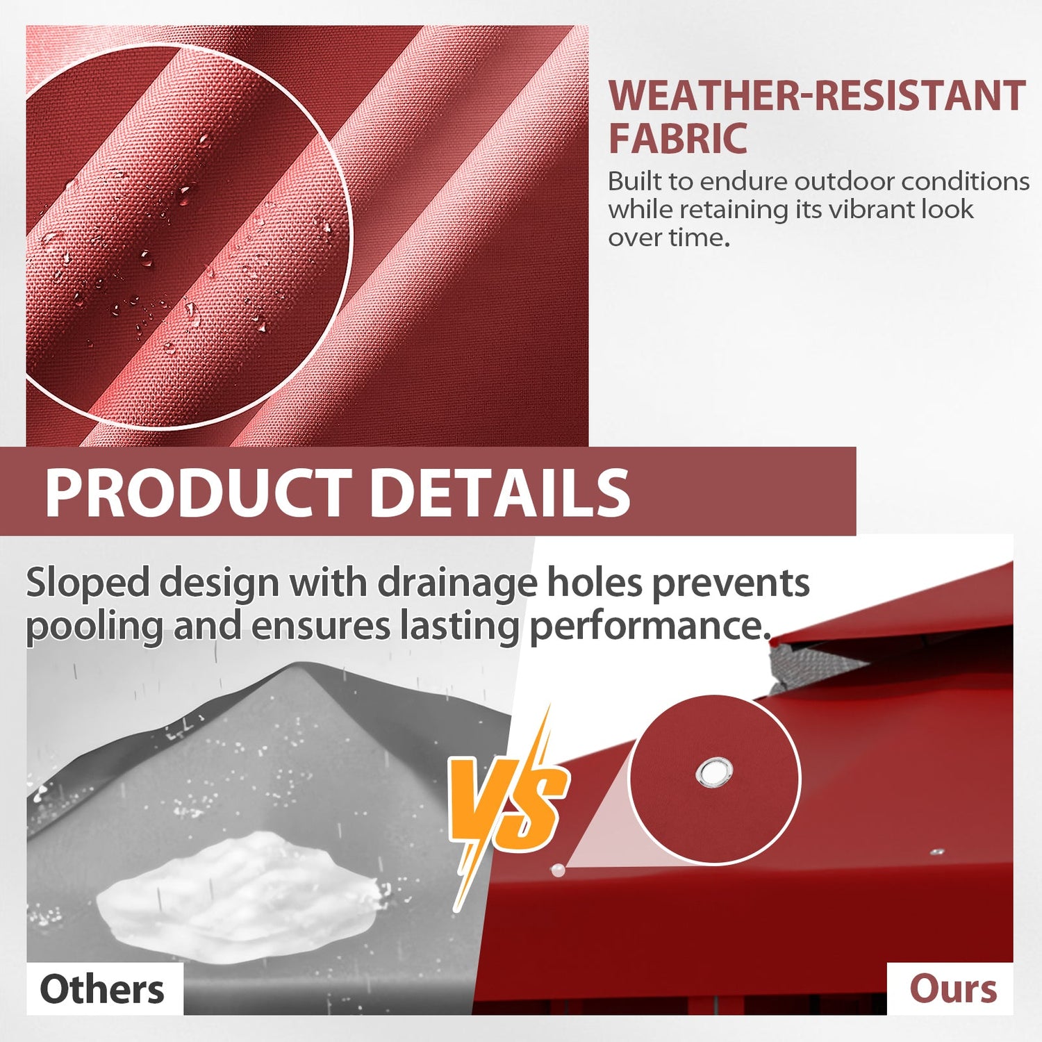 VENTED ROOF: The two-tier roof increases airflow to helps reduce heat while also reducing wind stress on the top, ensuring extra stability in windy conditions.