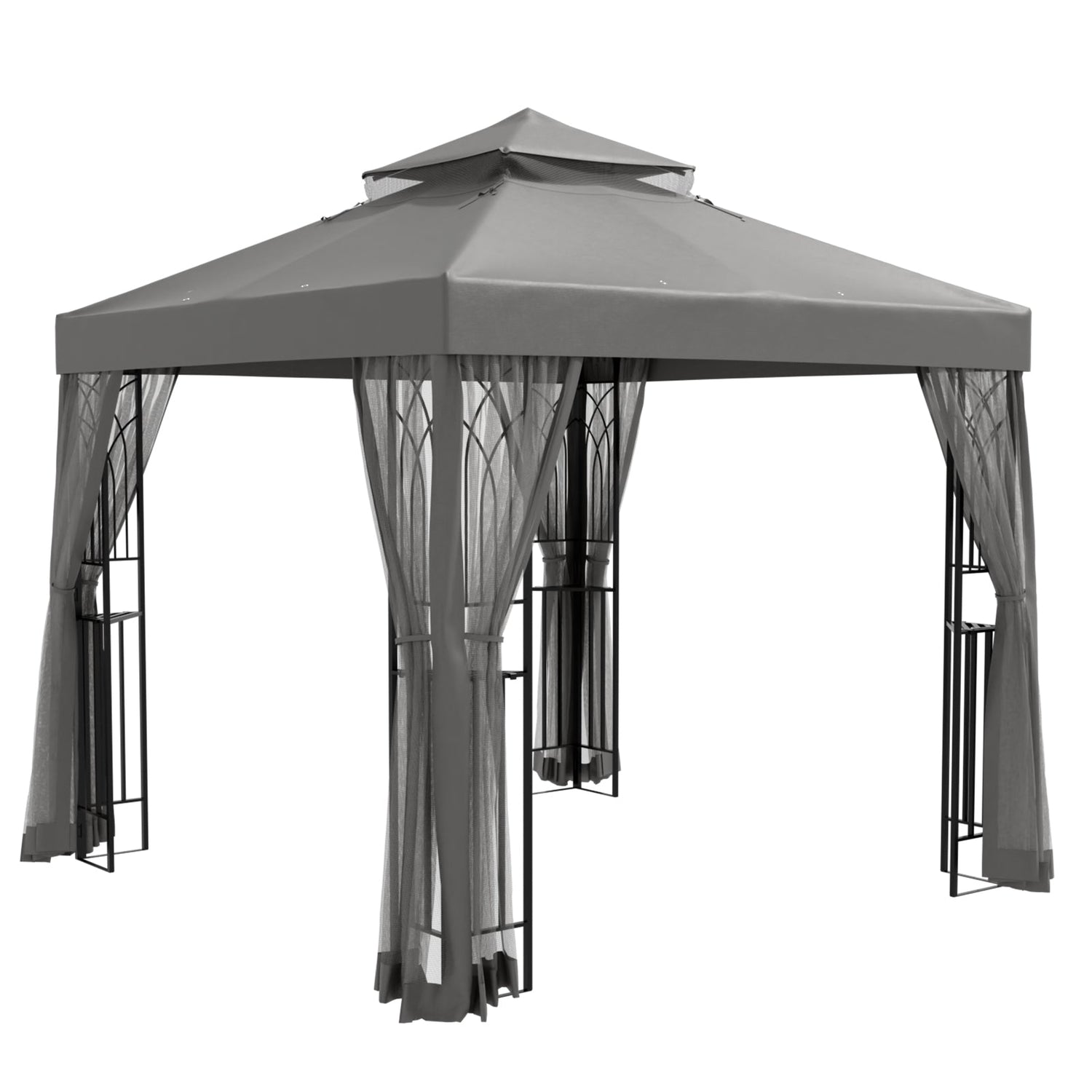 8x8 Patio Double Roof Gazebo with Mesh Netting, Corner Shelves