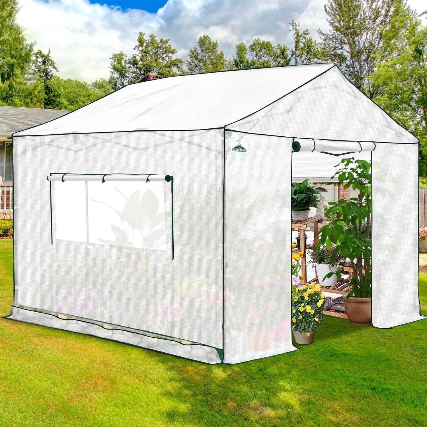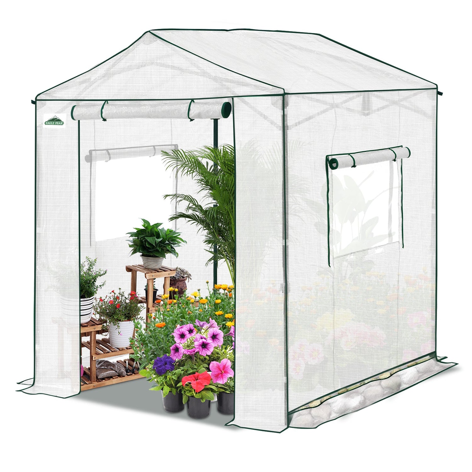 EXCLUSIVE GABLE ROOF DESIGN: Unlike typical walk-in greenhouses, the unique gable roof provides extra headroom, improved airflow, and a more open, comfortable working space. The walk in greenhouse easily fits Eagle Peak shelving, making it perfect for seed starting, and allowing you to organize plants and supplies with this spacious layout.