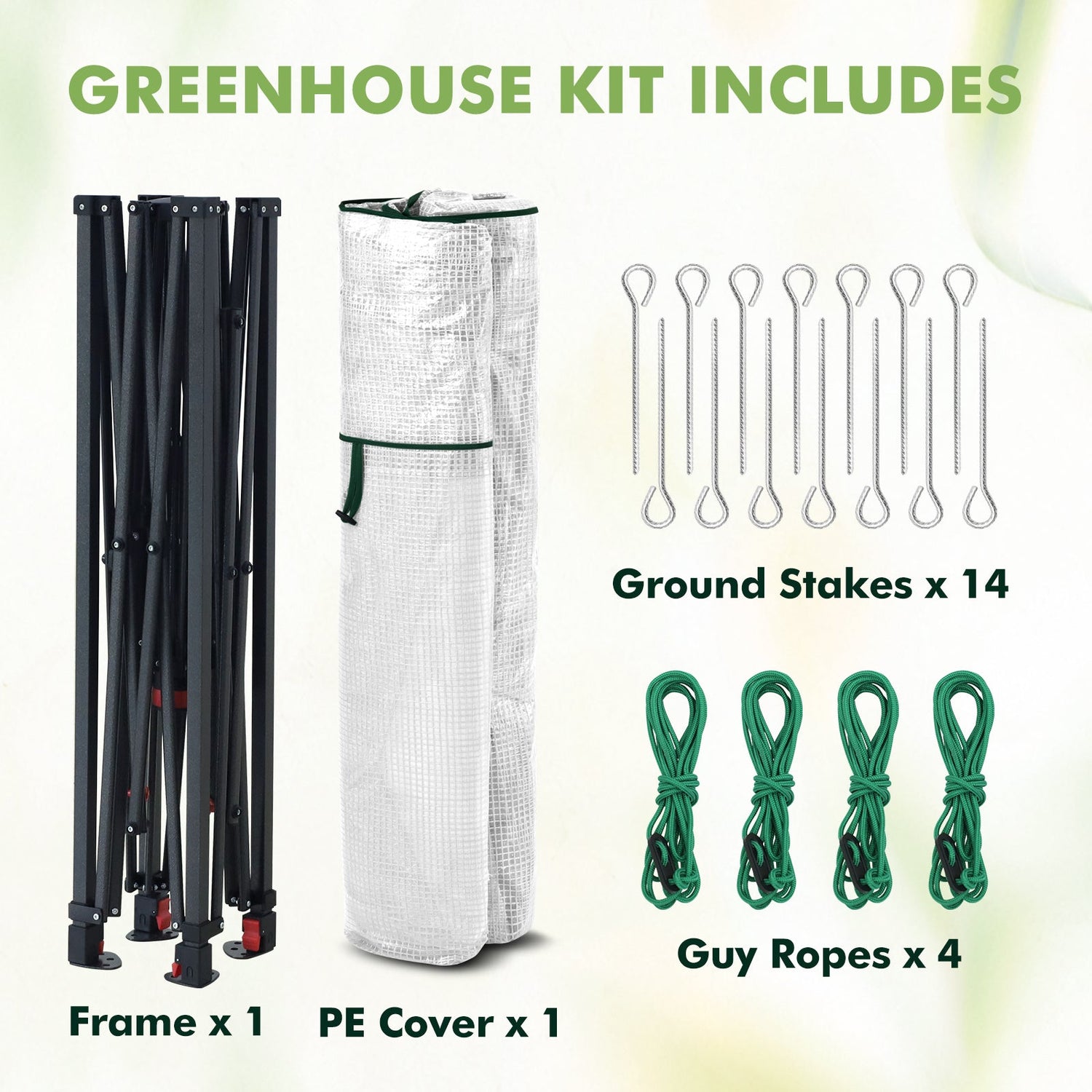 HEAVY DUTY FRAME FOR LASTING STABILITY: Built to handle tough outdoor conditions, the reinforced steel frame is powder-coated and rust-resistant for long term durability. Extra steel tubing adds superior strength compared to standard models. The greenhouse kit stays securely in place thanks to anchoring with guy ropes, ground stakes, and weight bags, providing stability even in challenging weather.
