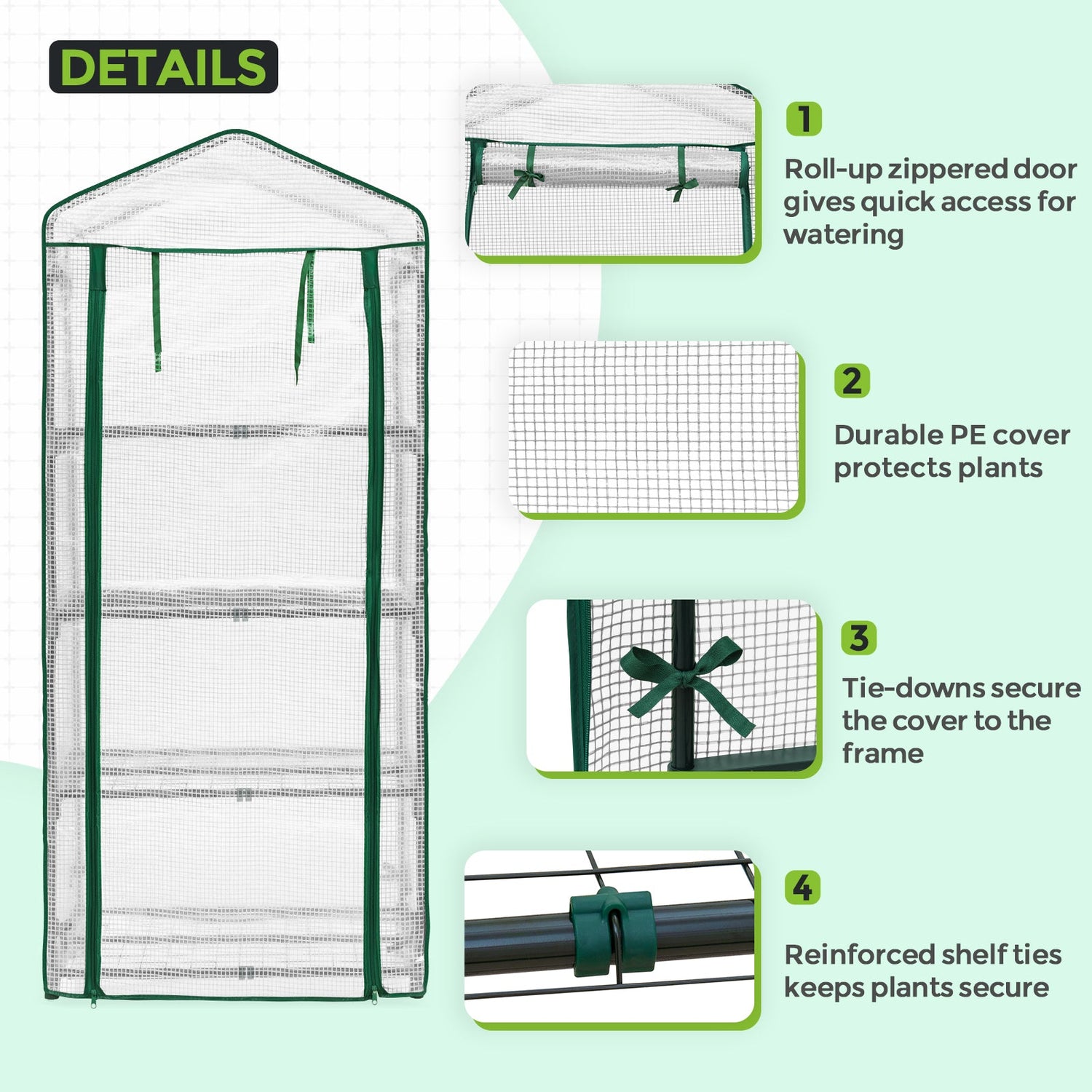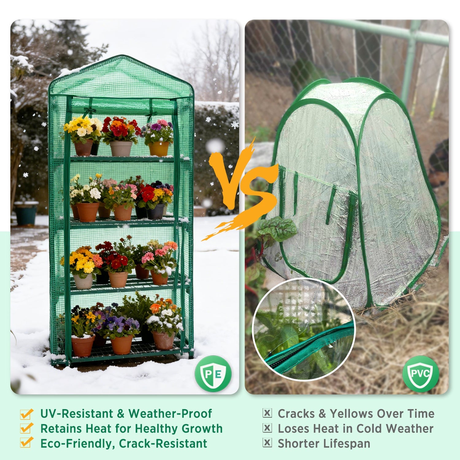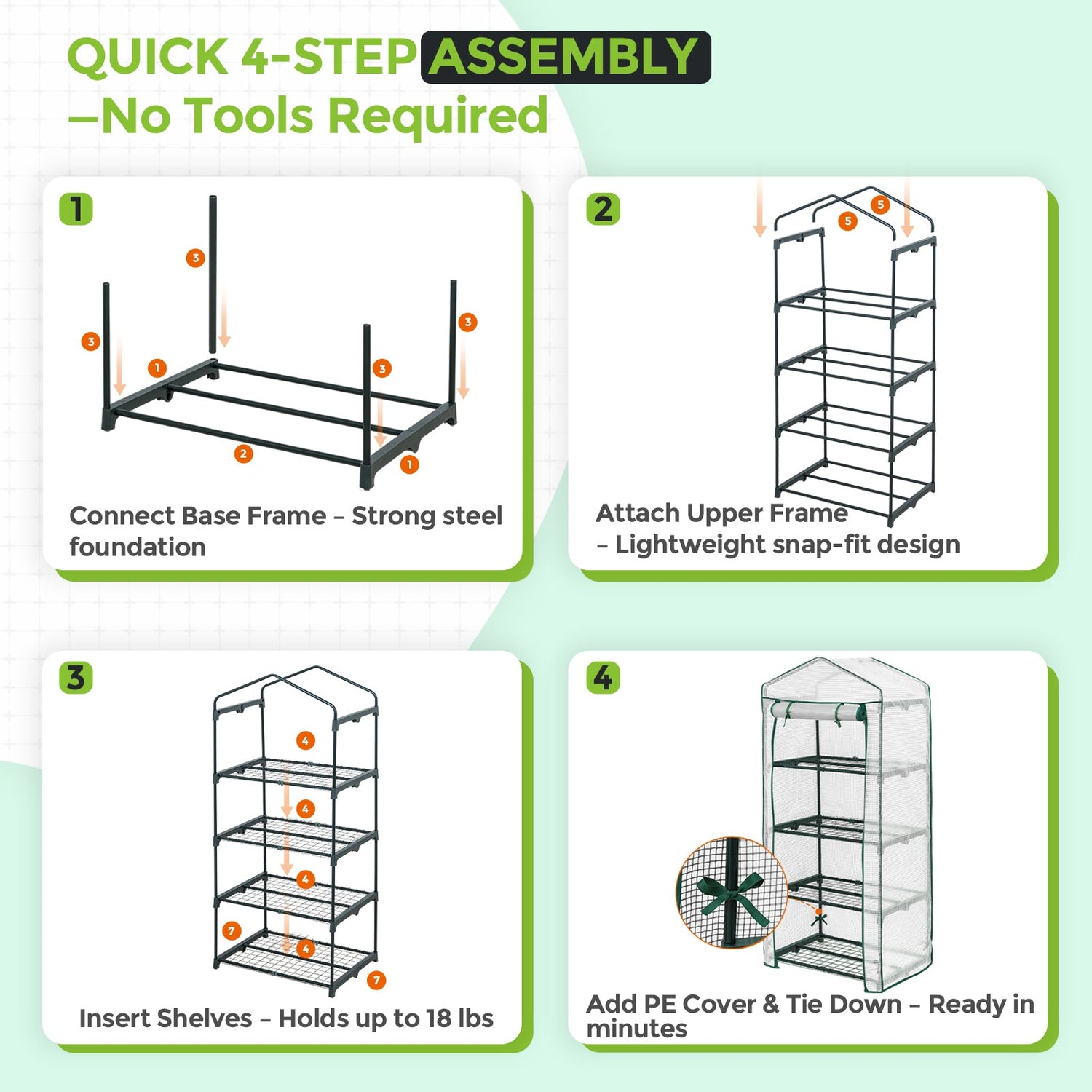 AMPLE SPACE: This small and sturdy greenhouse features 4 wire mesh shelves to hold your house plants, seed trays, seedlings and more. Each shelf holds up to 18lbs.