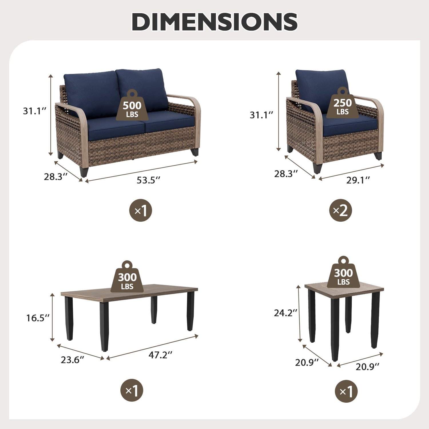 STYLISH COMBINATIONS: This wicker outdoor furniture set gives you multiple combinations, including patio chairs, a 2-seat loveseat sofa, coffee table and side table. Perfect for any space such as your garden, balcony, deck, patio, porch, poolside, backyard, corridor, or sunroom; this set transforms your outdoor area into a stylish retreat.