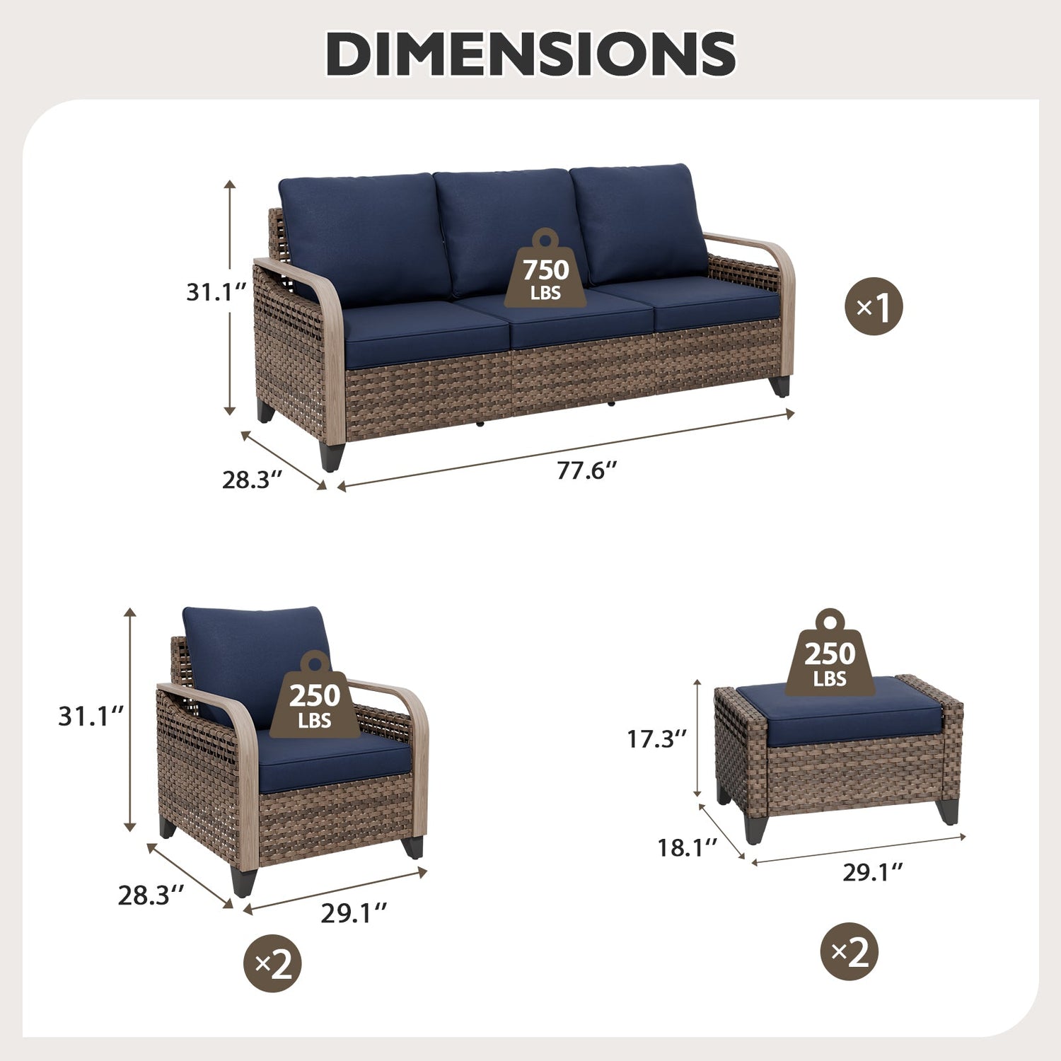 STYLISH COMBINATIONS: This wicker outdoor furniture set gives you multiple combinations, including patio chairs, a 3-seat loveseat sofa, and ottomans. Perfect for any space such as your garden, balcony, deck, patio, porch, poolside, backyard, corridor, or sunroom; this set transforms your outdoor area into a stylish retreat.