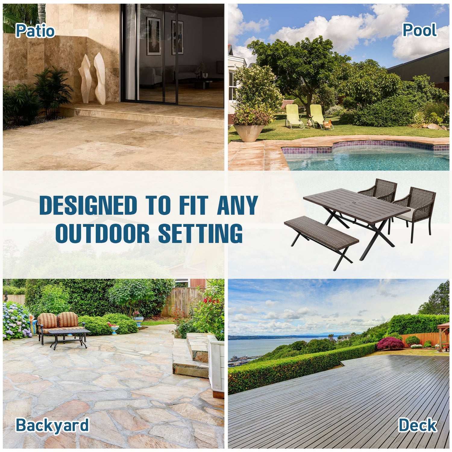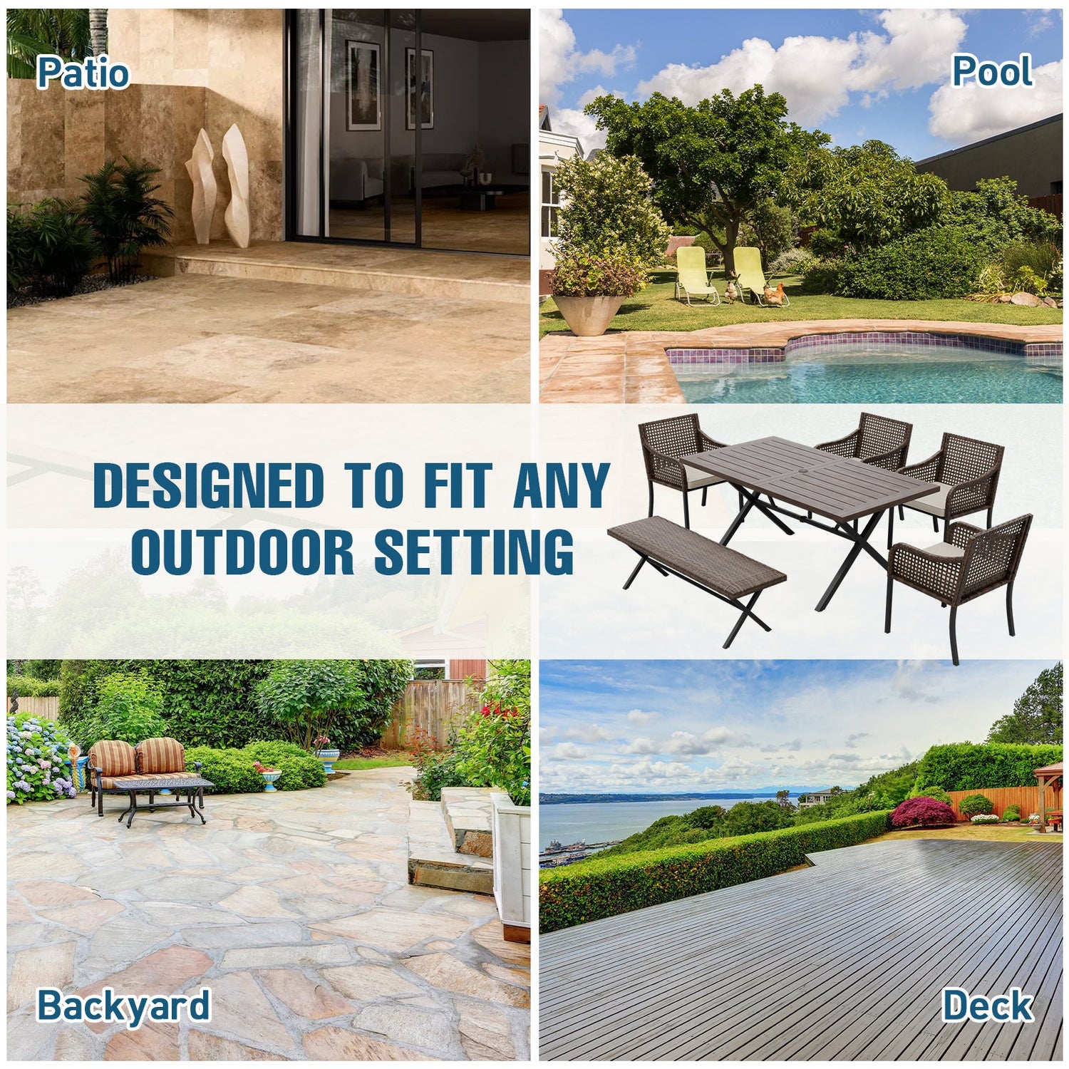 Sienna Bay Outdoor Dining Set for 4/6, Brown/Beige - Table+2 Chairs+Bench is backordered and will ship as soon as it is back in stock.
