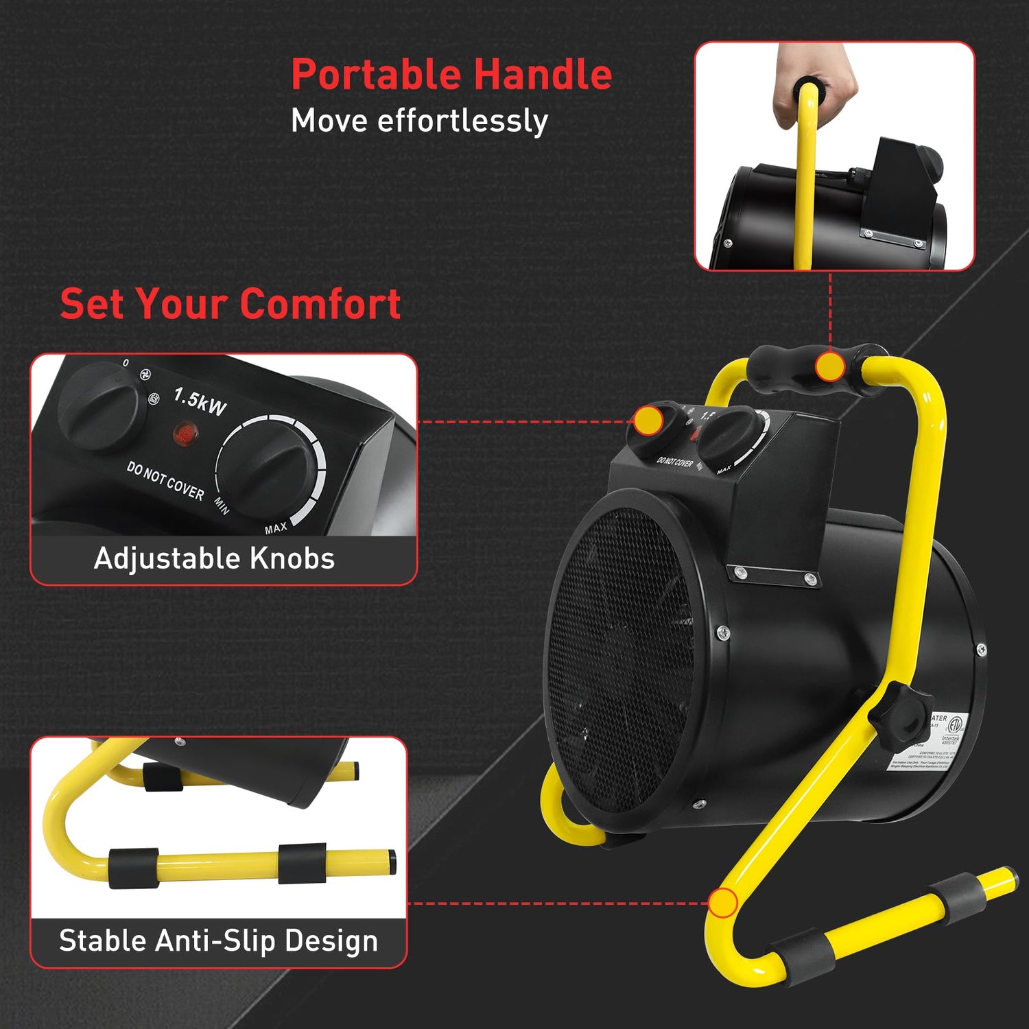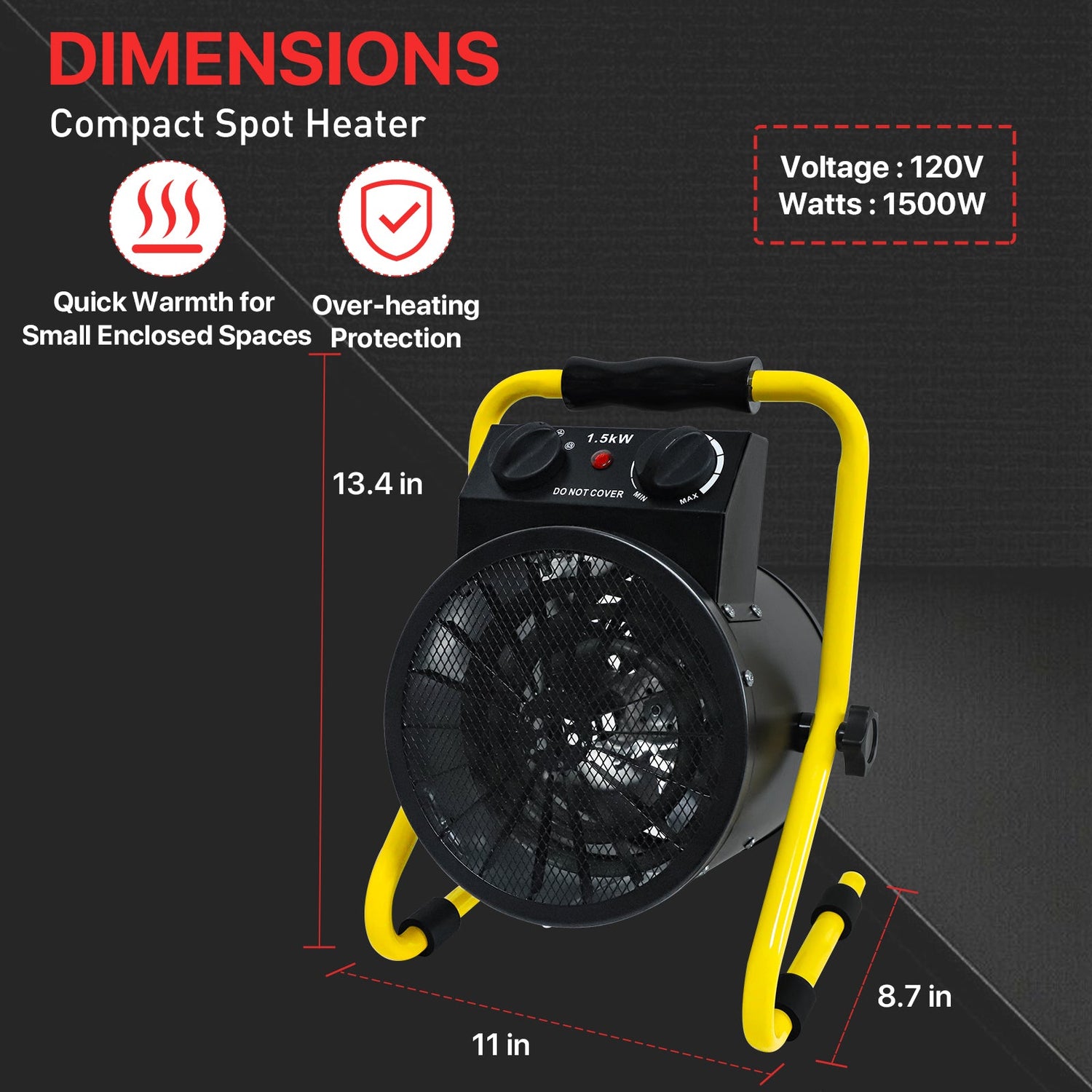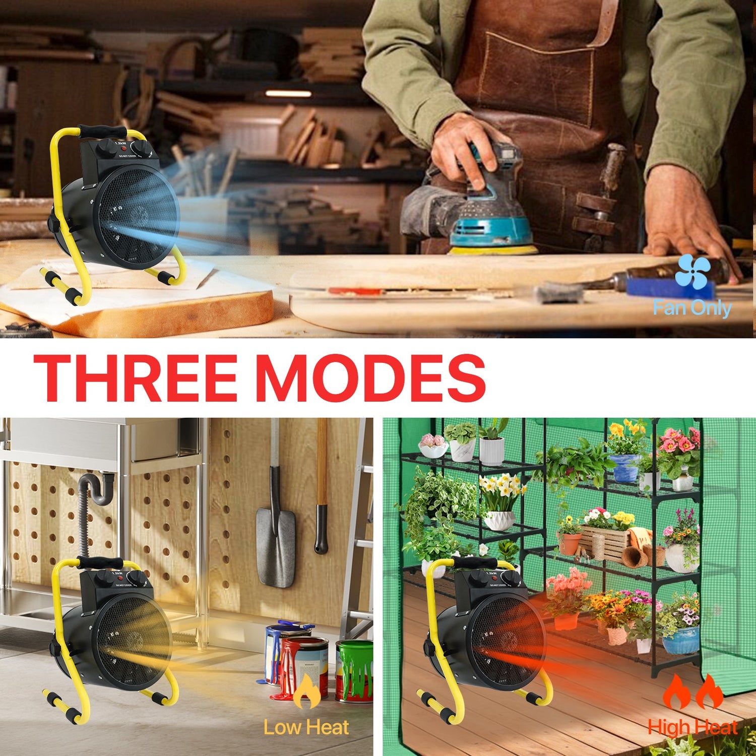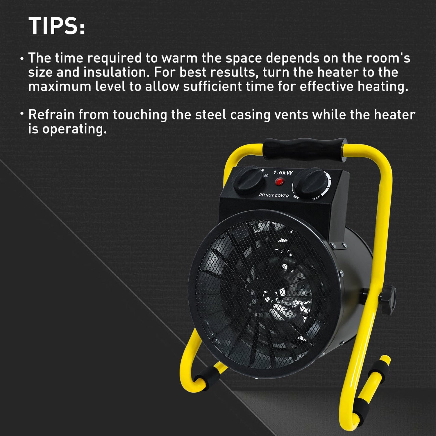 MANUAL HEAT CONTROL: This electric heater offers a fan-only mode and manual heat output adjustment up to 1500W using onboard control knobs. Designed to provide supplemental radiant warmth for plants in greenhouses and grow tents, with performance influenced by the size and enclosure of the space