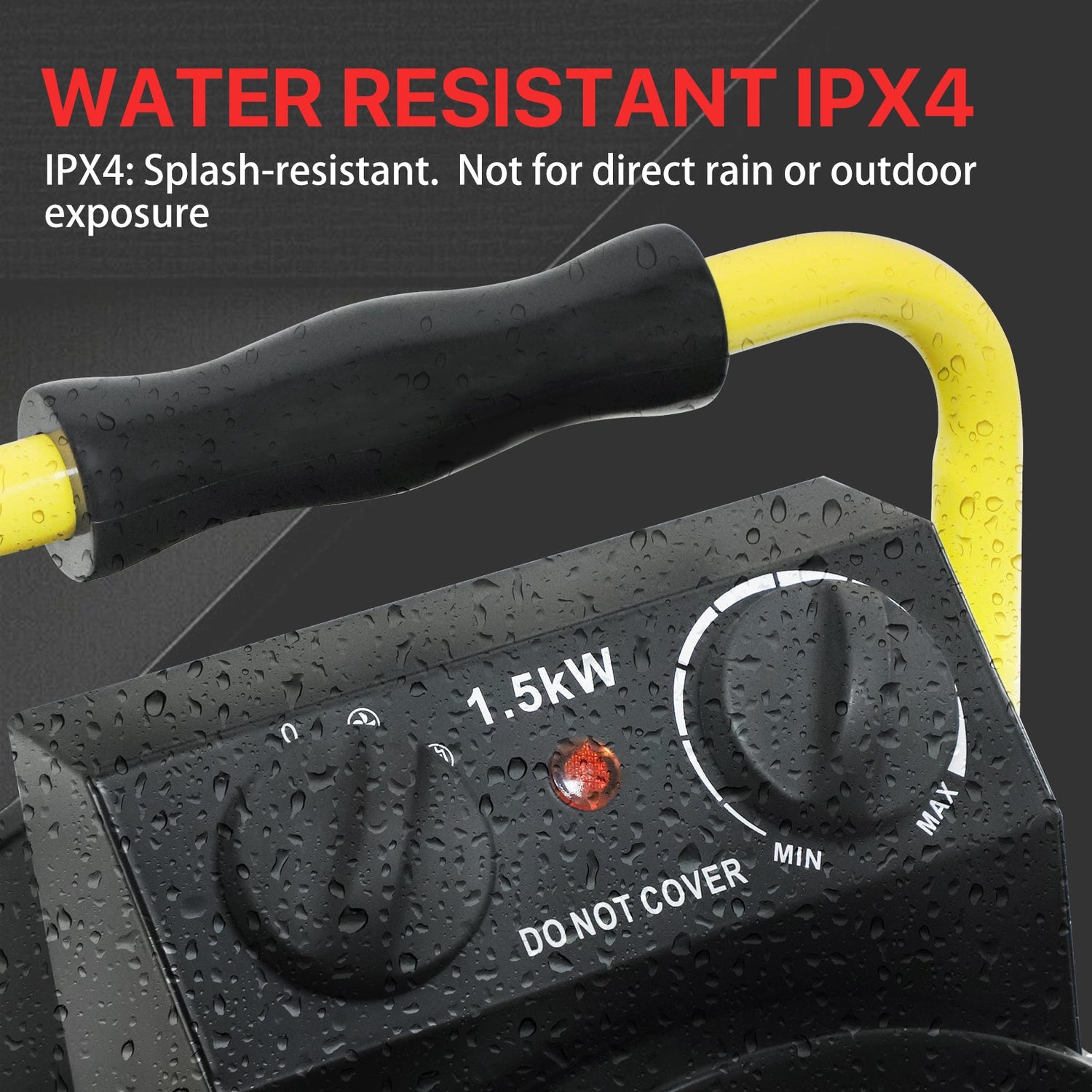 IPX4 SPLASH-RESISTANT DESIGN: This heater for greenhouse is IPX4 water-resistant and suitable for humid or damp environments, including covered greenhouses, grow tents, or small enclosed workshops. Resistant to splashes from watering systems. Not intended for direct rain, snow, or uncovered outdoor use. Always use with a GFCI outlet